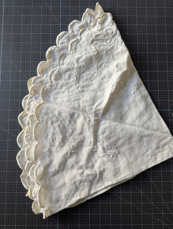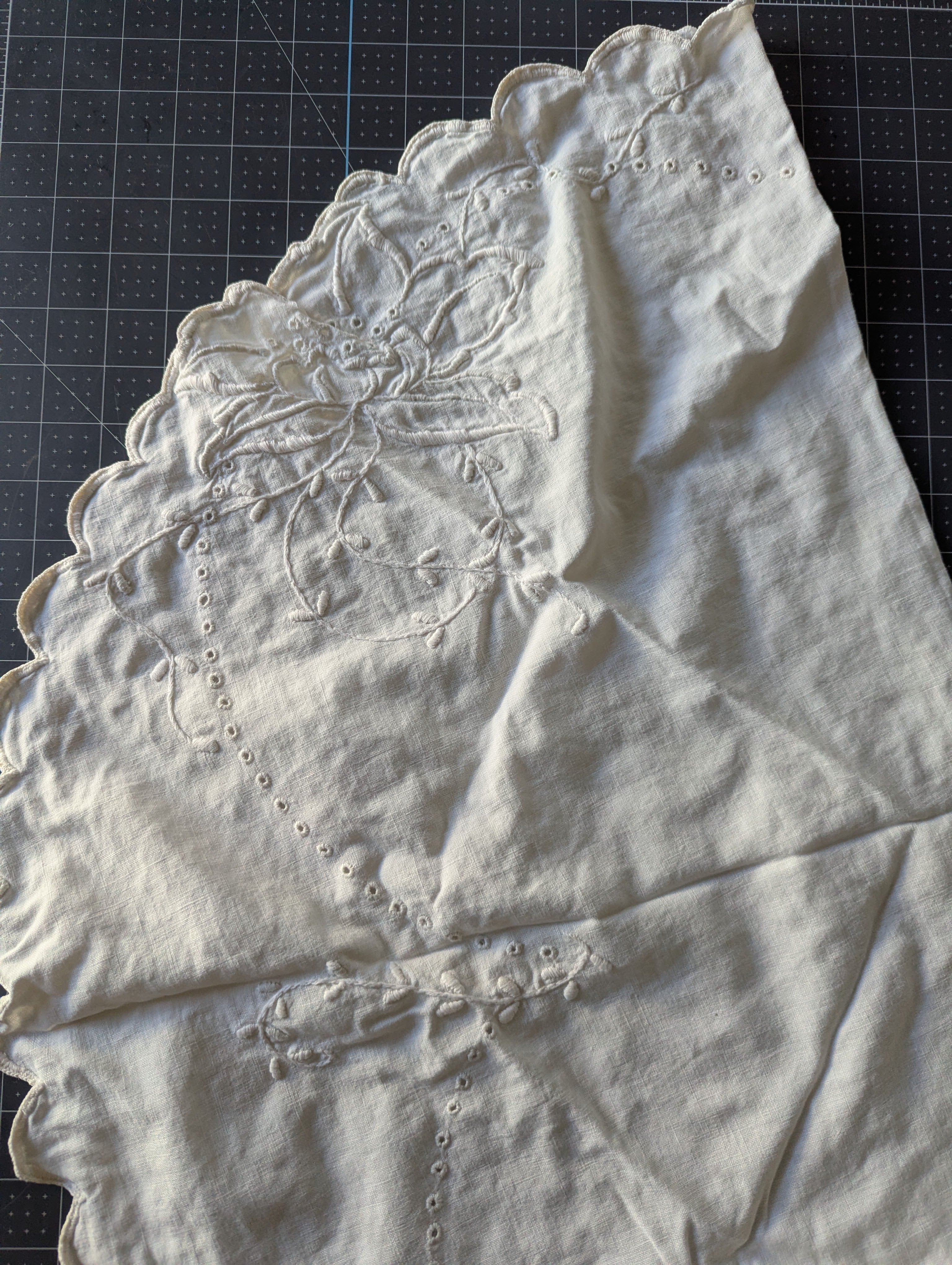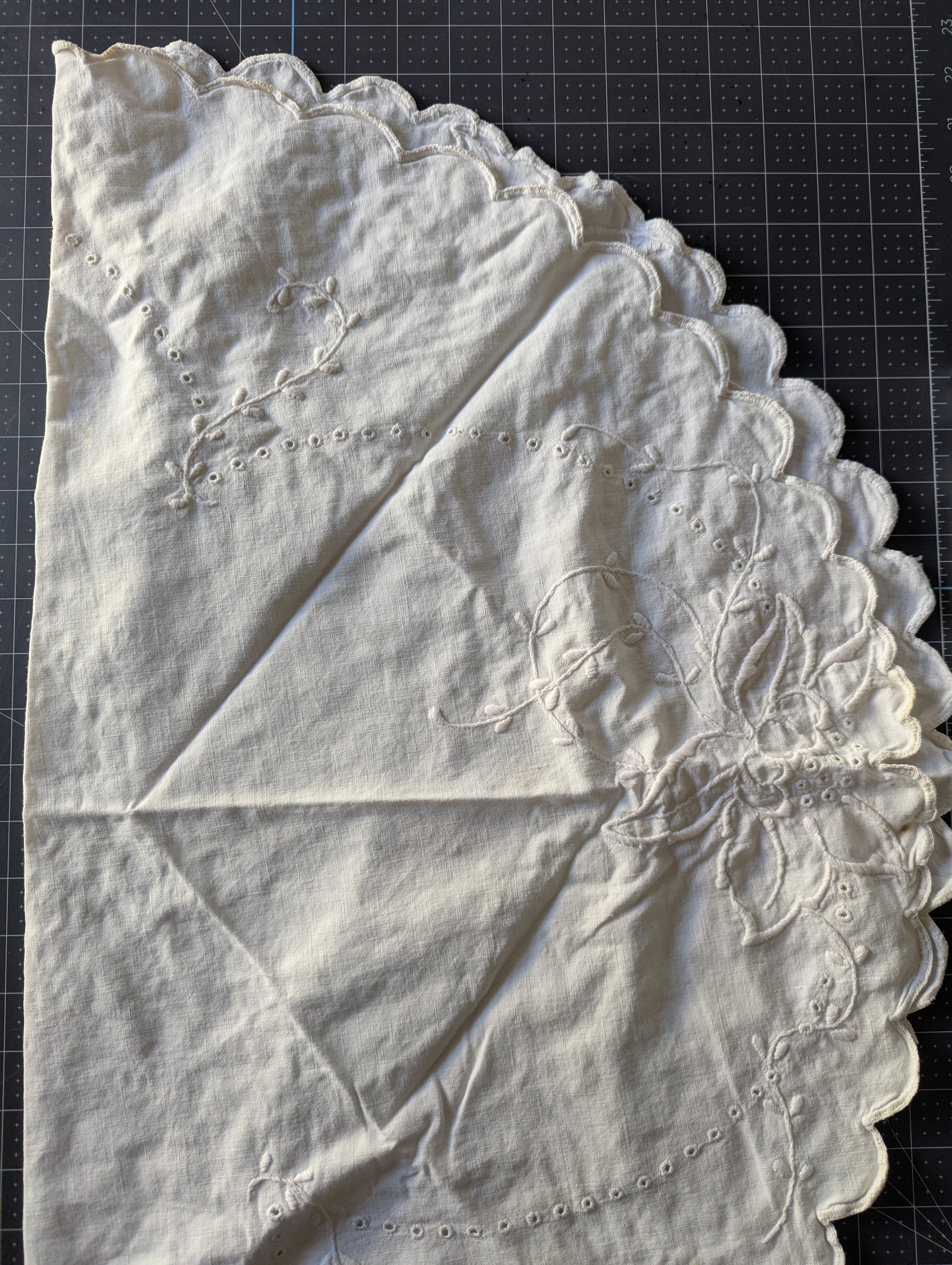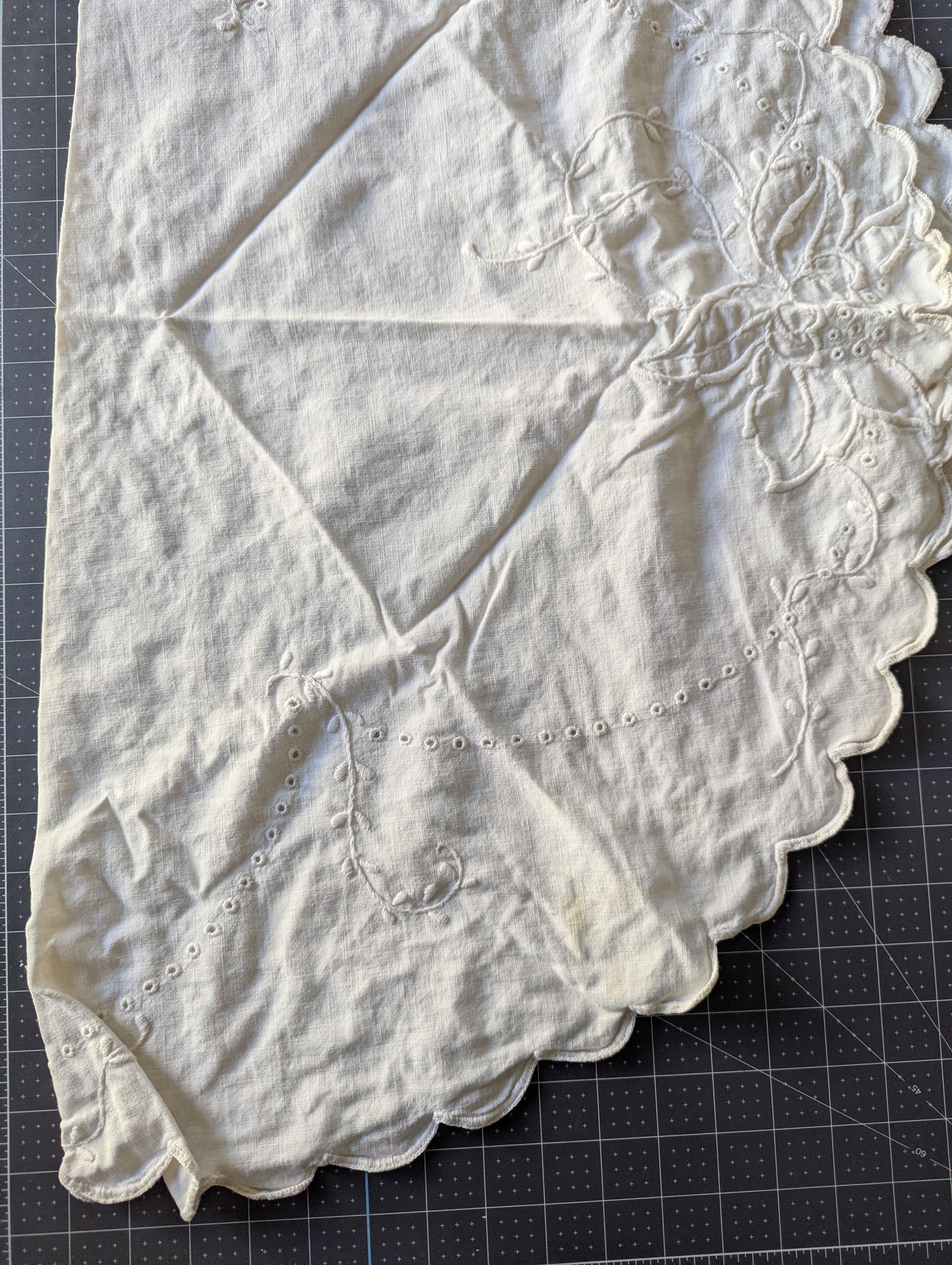 Large Vintage Round Linen with Scalloped Edges - ReFabric