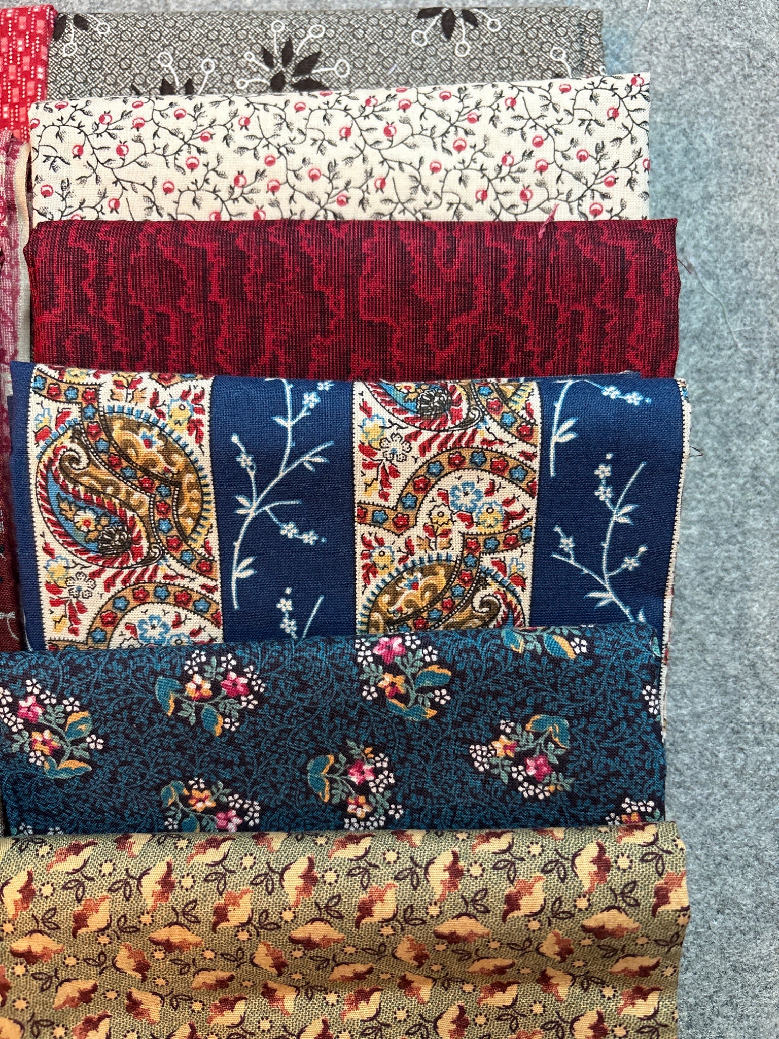 Lot of 12 fat quarters cotton fabric 1800’s reproduction
