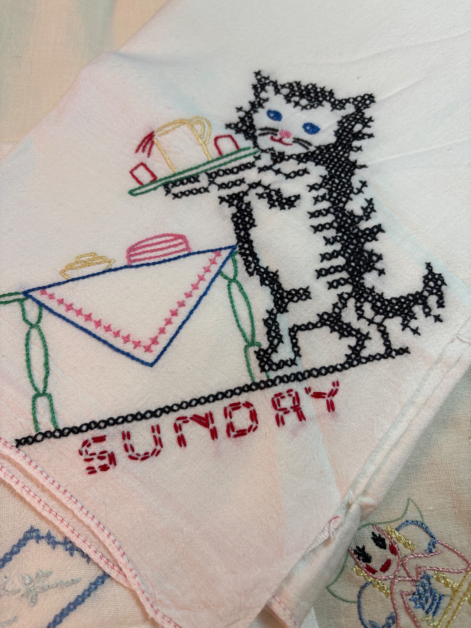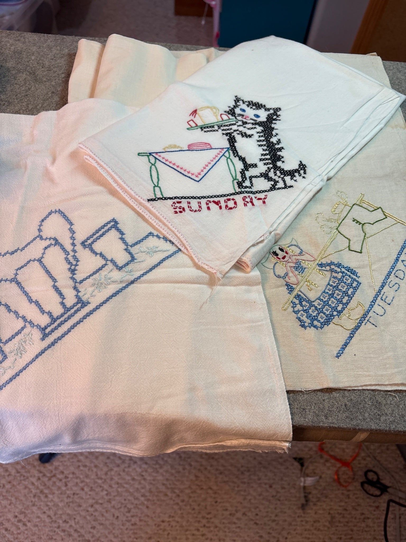 Lot of 3 flour sack embroidered towels Vintage