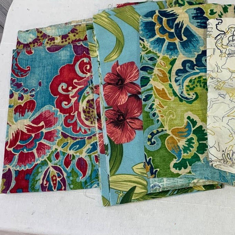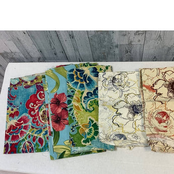 Lot of 5 Tropical Floral Upholstery Cotton Blend Craft Fabric Swatches Remnants