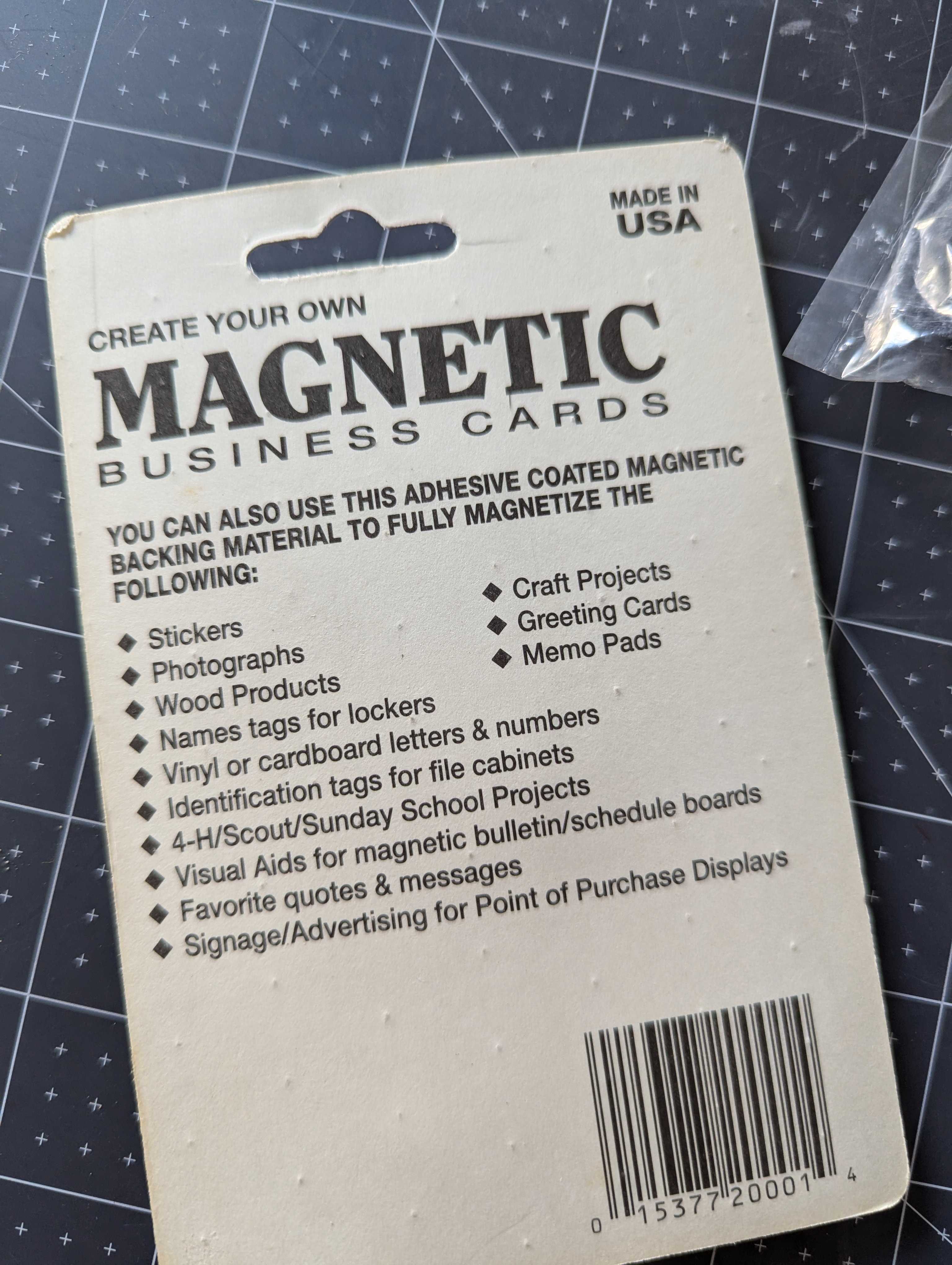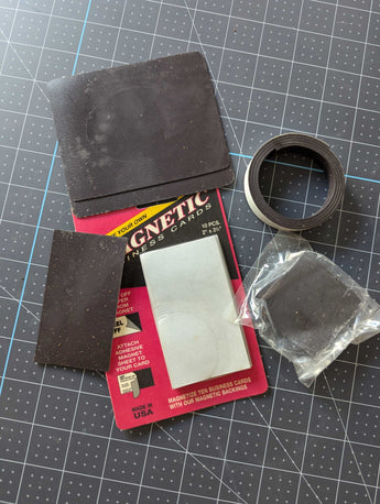 You'll receive all pictured goods, a set of 10pc magnetic business card backs, unopened, a small role of magnetic 'tape' and a few extras.