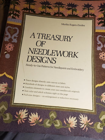 A Treasury of Needlework designs by Martha Roger's Zimiles. Ready to use patterns for Needlepoint and Embroidery. These are full size designs, really cute designs , perfect for creating unique gifts, trace the designs onto canvas or fabric.