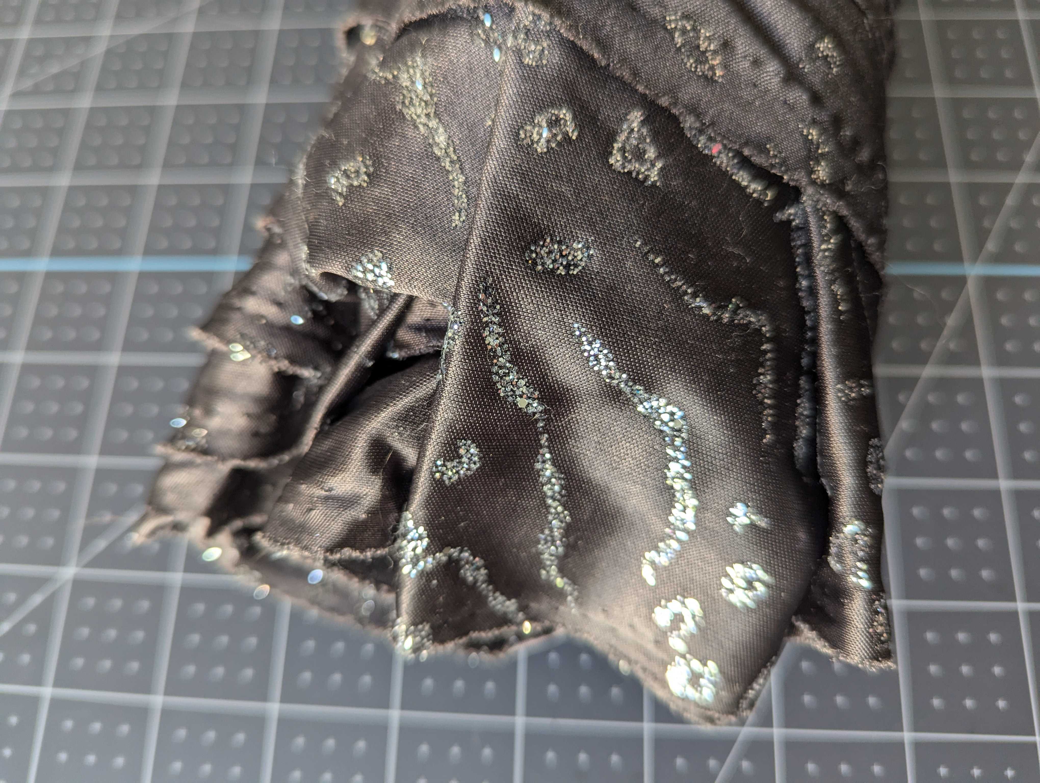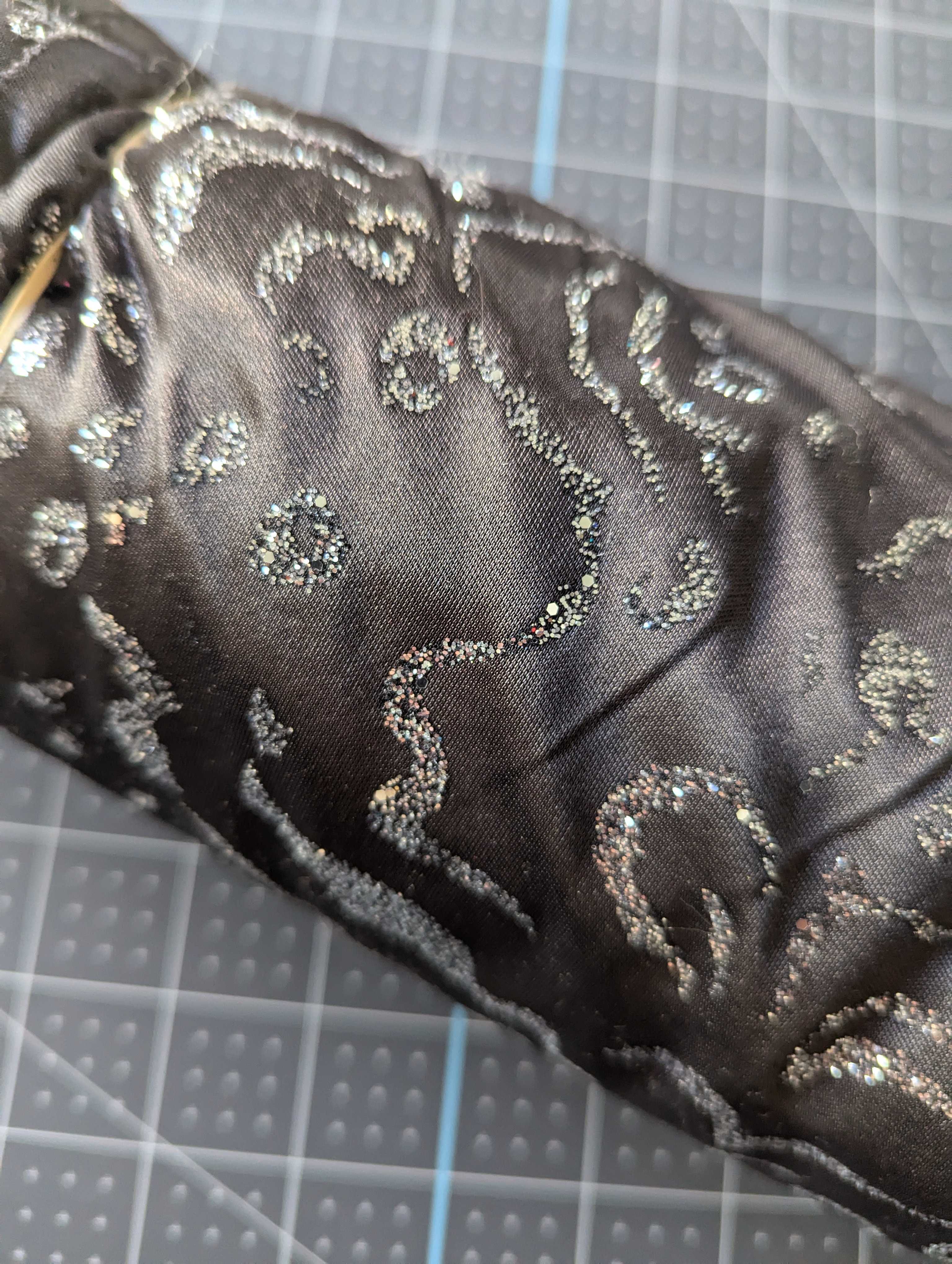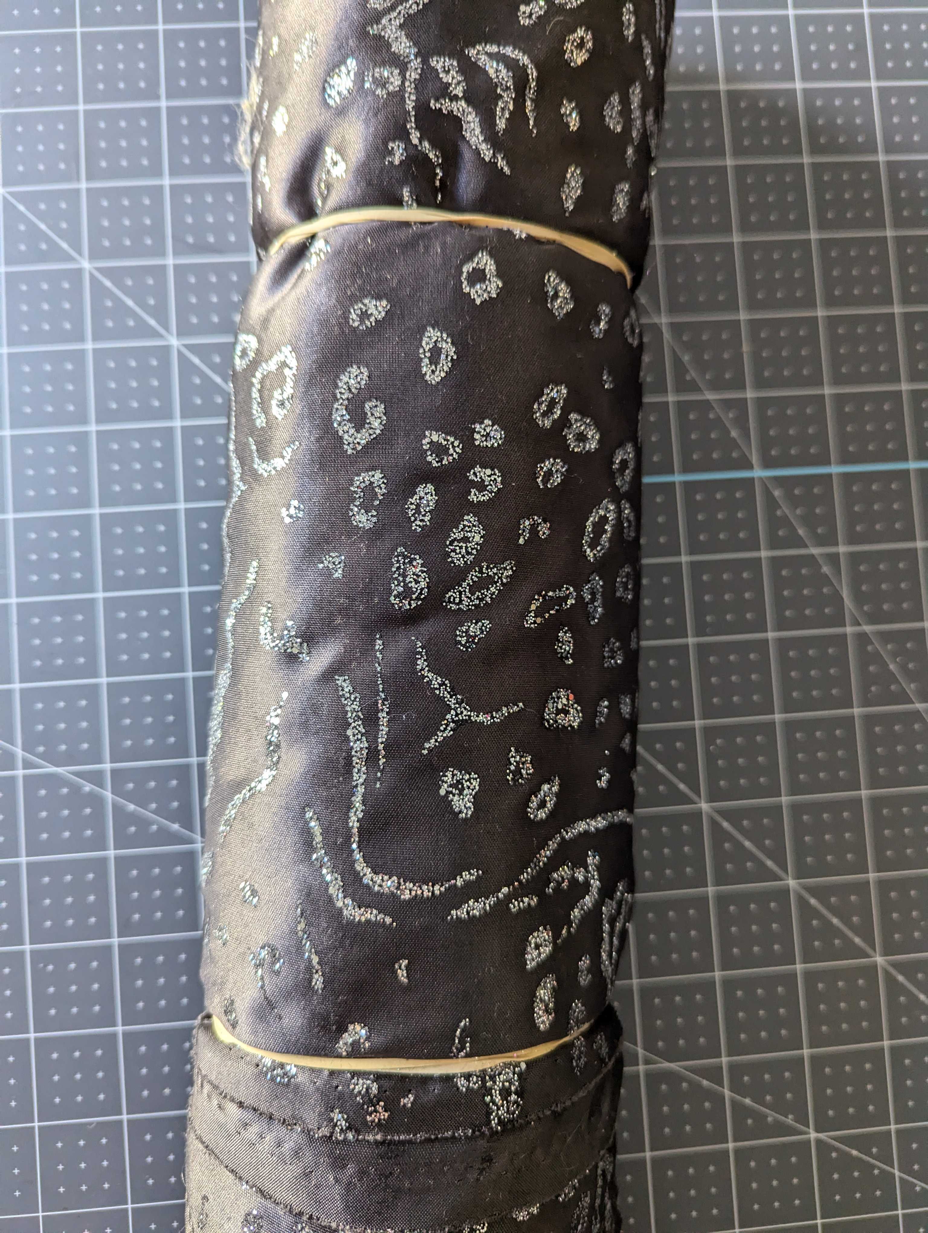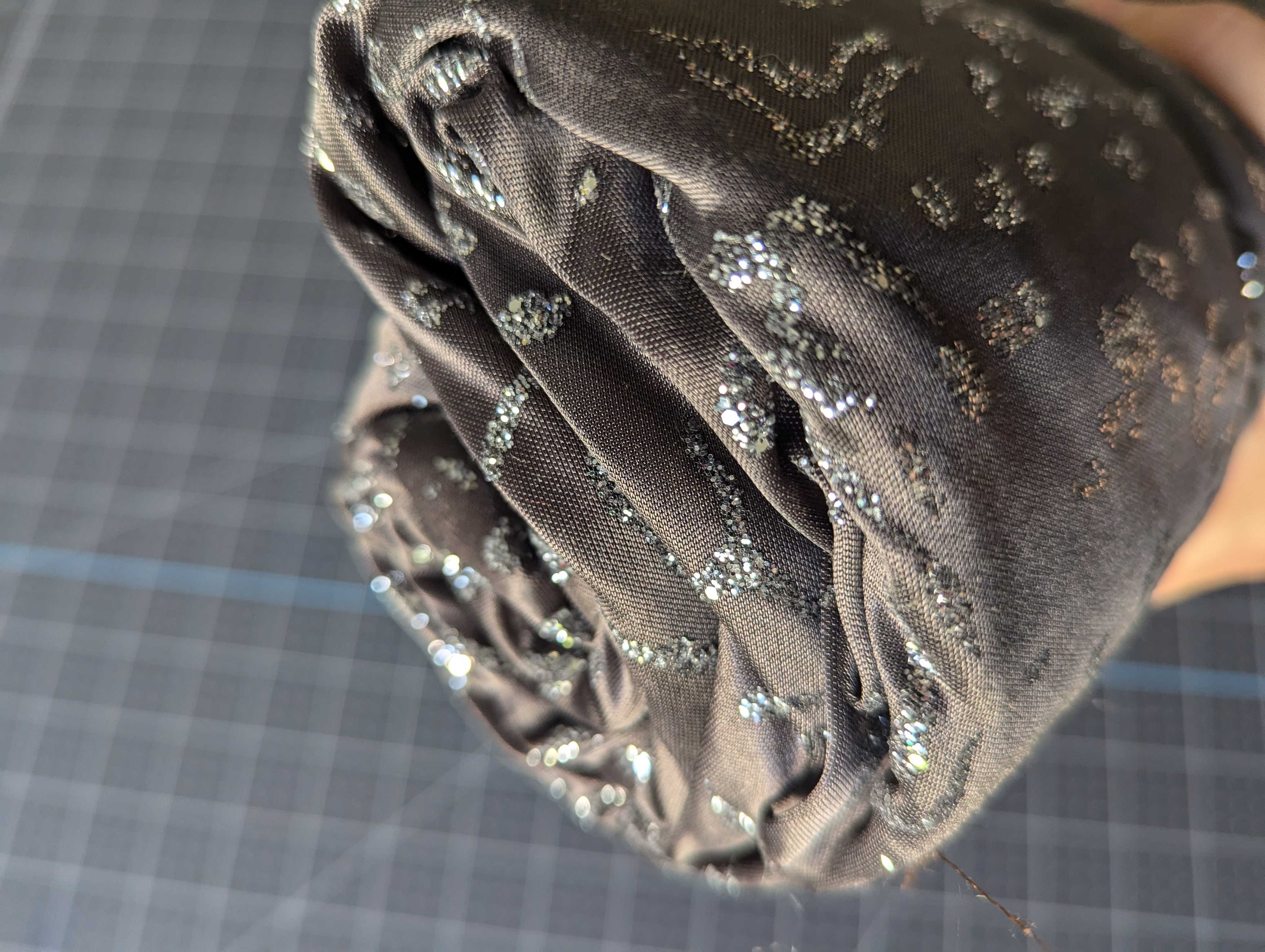 This came to us as a pre-rolled piece, and we have not unrolled it to check but it would appear it's never been unrolled and all yardage remains as described (4 yds). Color is Night Grey #1175 by Premier Fabrics, Inc. It is 100% polyester.