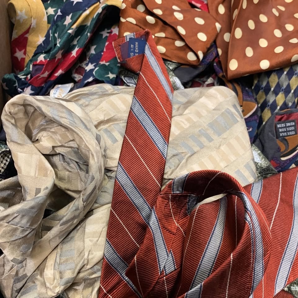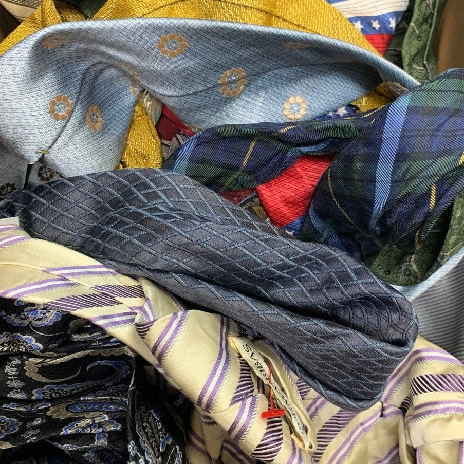 Get one pound (9 or 10 ties) of ties for your next crafting project. Ties may be stained, cut, torn, monogrammed, from some random school/company or even super wrinkled. They are not wearable but great for creative making! All ties are clean and will come in a variety of colors and brands. Photos show ties similar to the ones you will get. As always, Revyntage has free shipping within the USA!