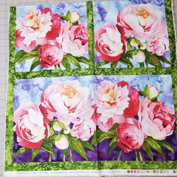 Eye-catching 100% quilting cotton panel print. The images show you both sides of the fabric, the selvage stamp and a closeup of the texture.