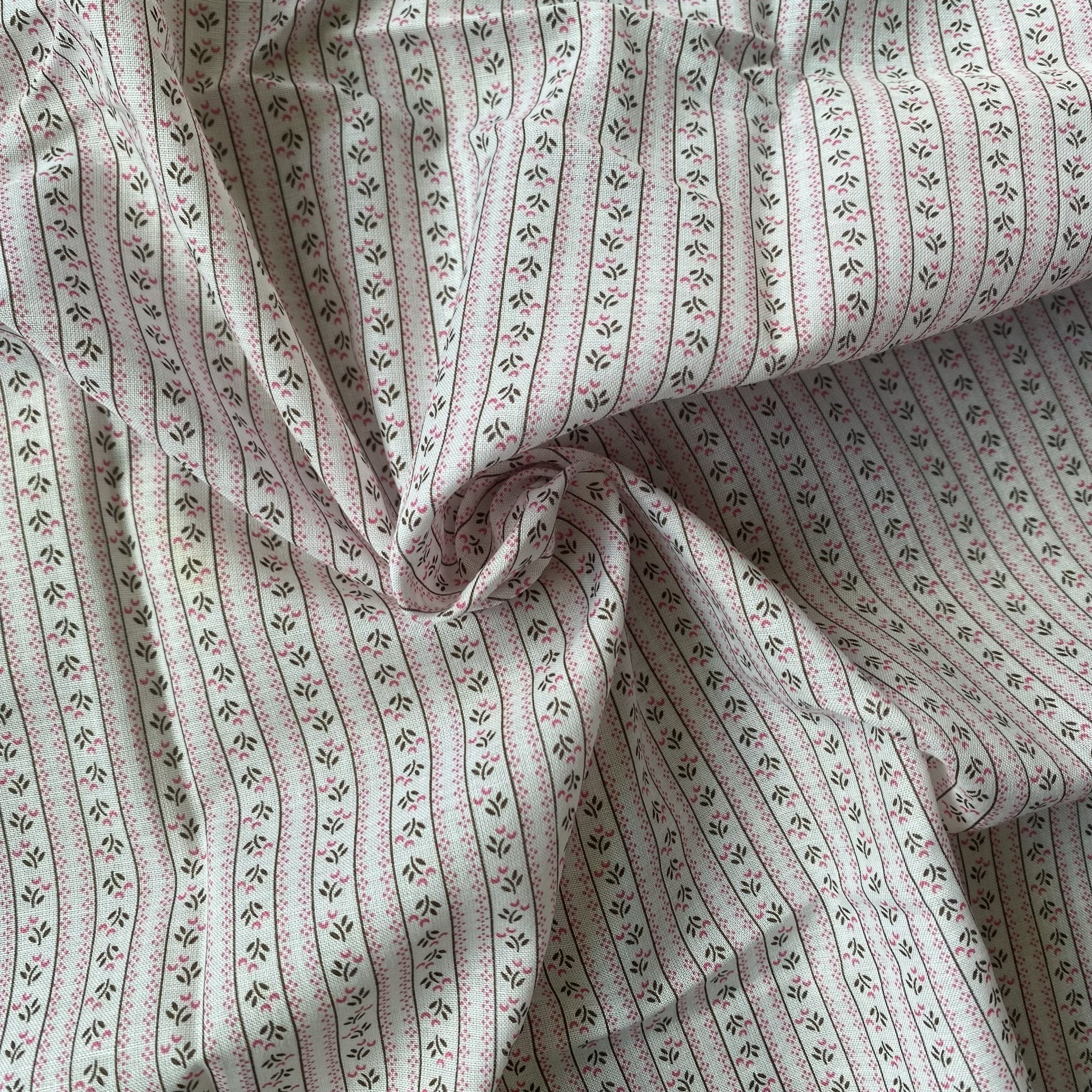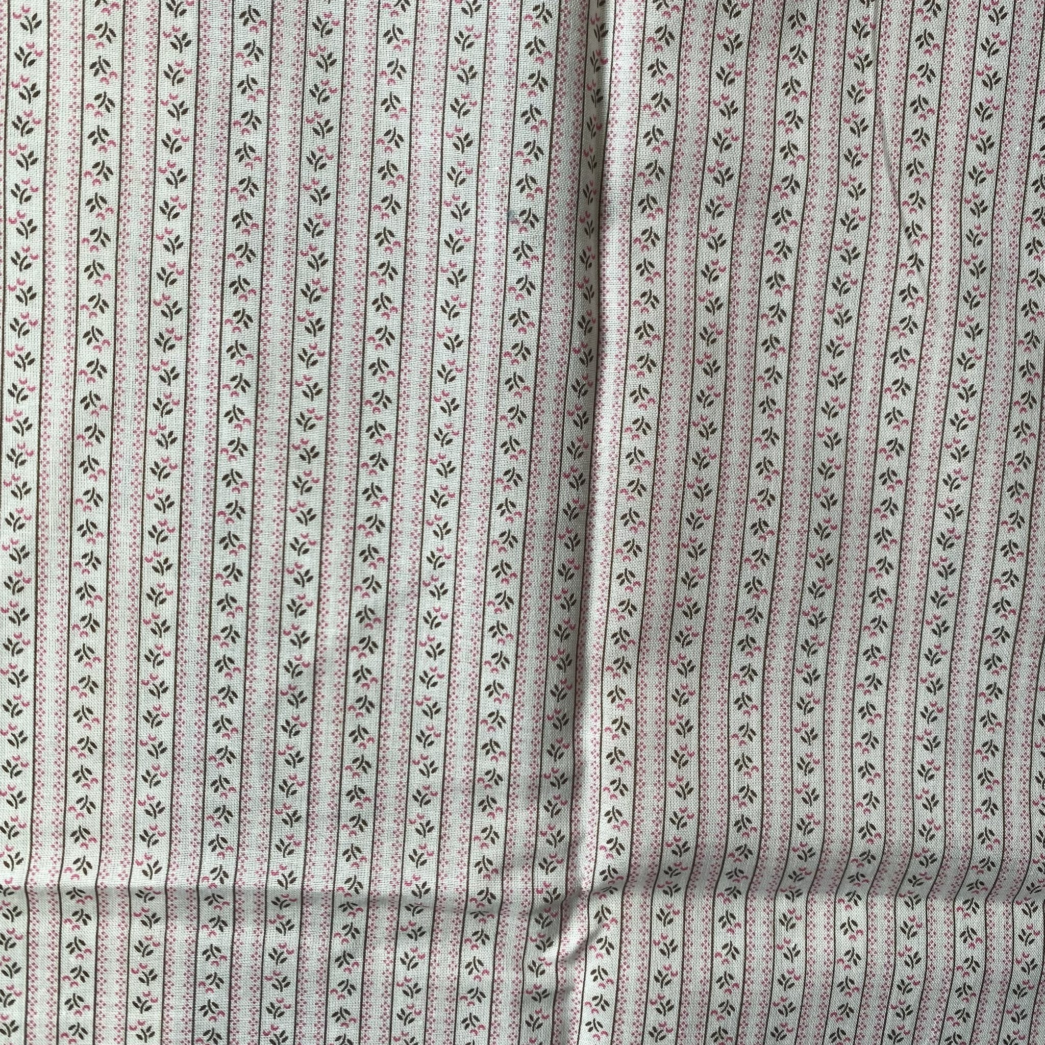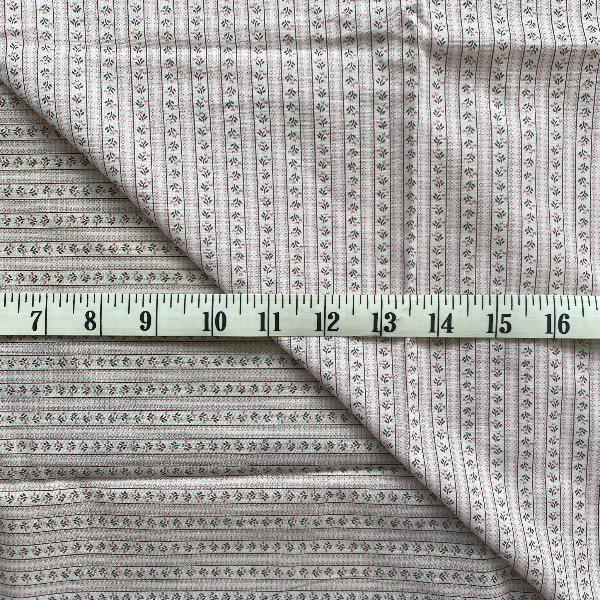 Pink Flower Stripe Fabric ~ 55" Wide ~ Natural ~ 1.5 YDS ~ Wallpaper Inspired