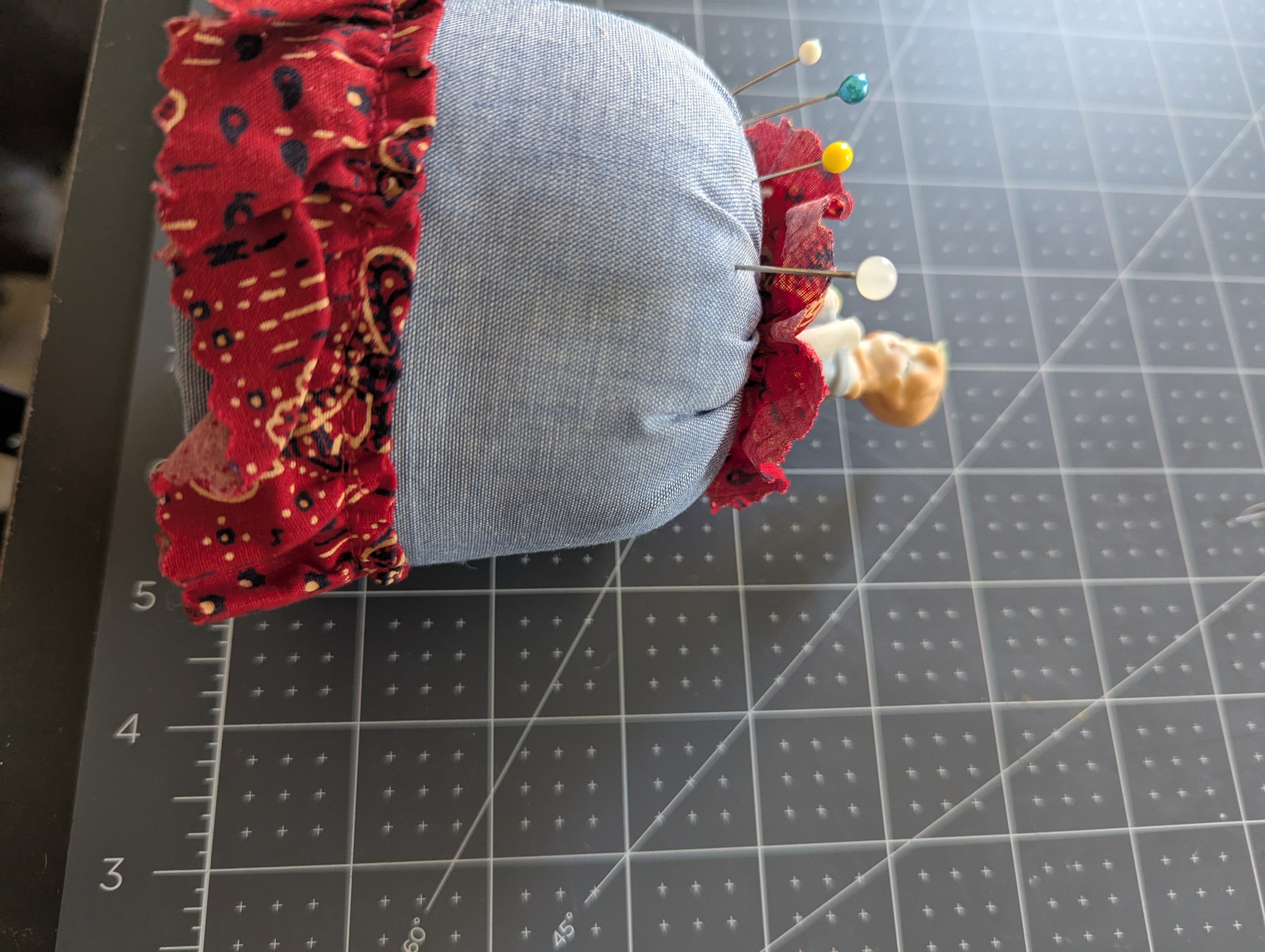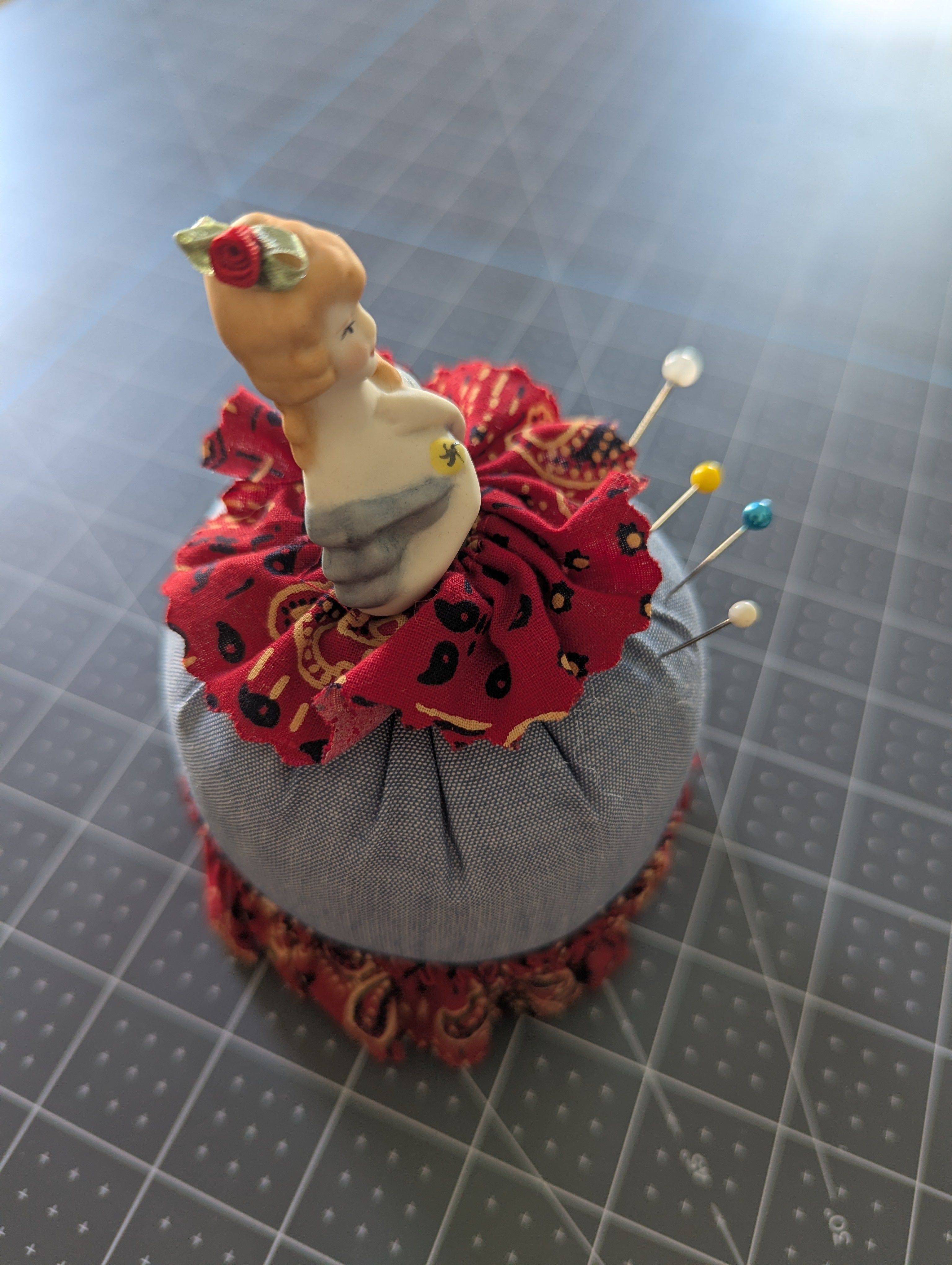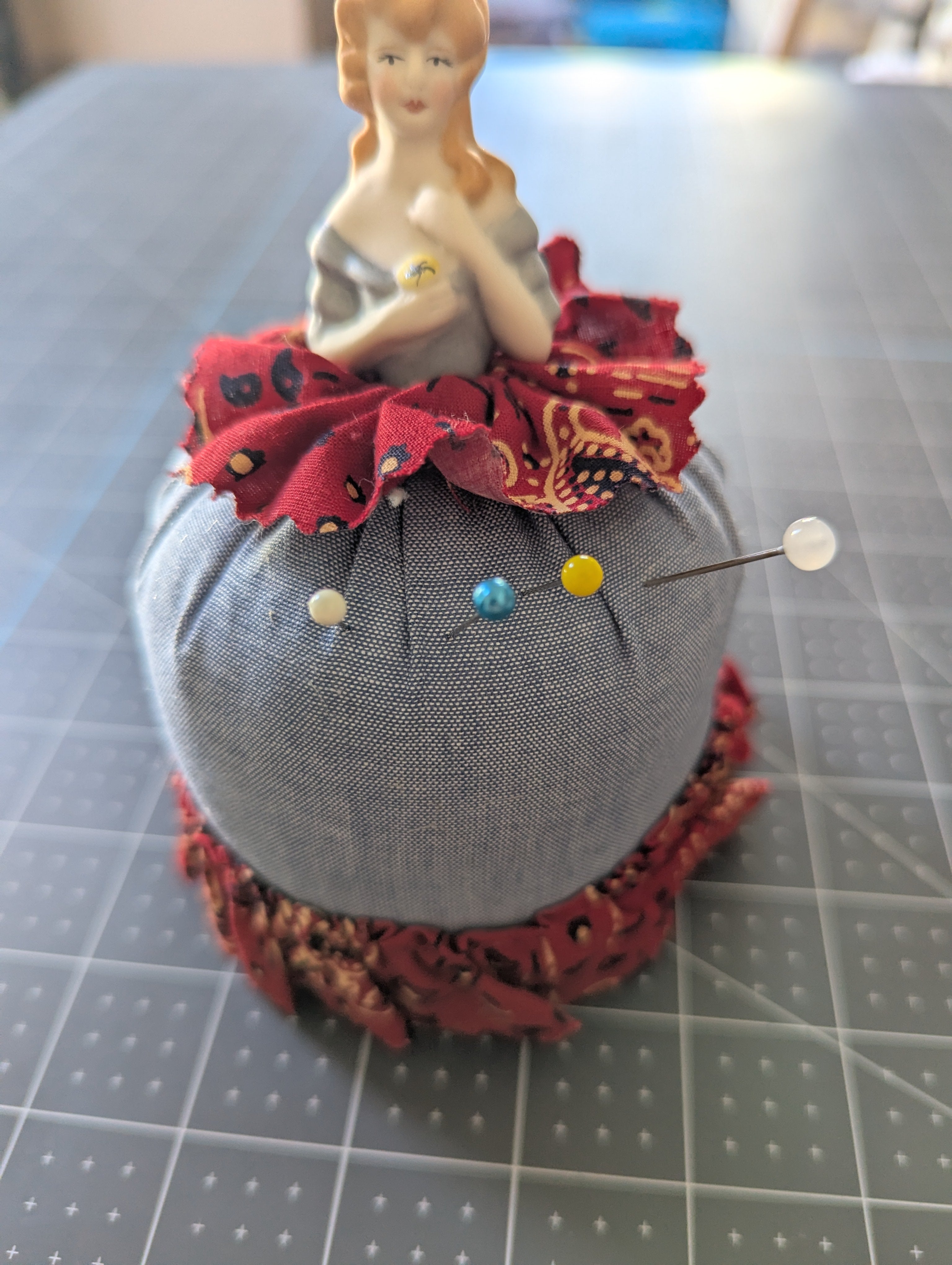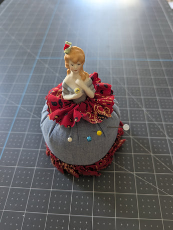 Porcelain Doll Pin Cushion with Cushion Skirt