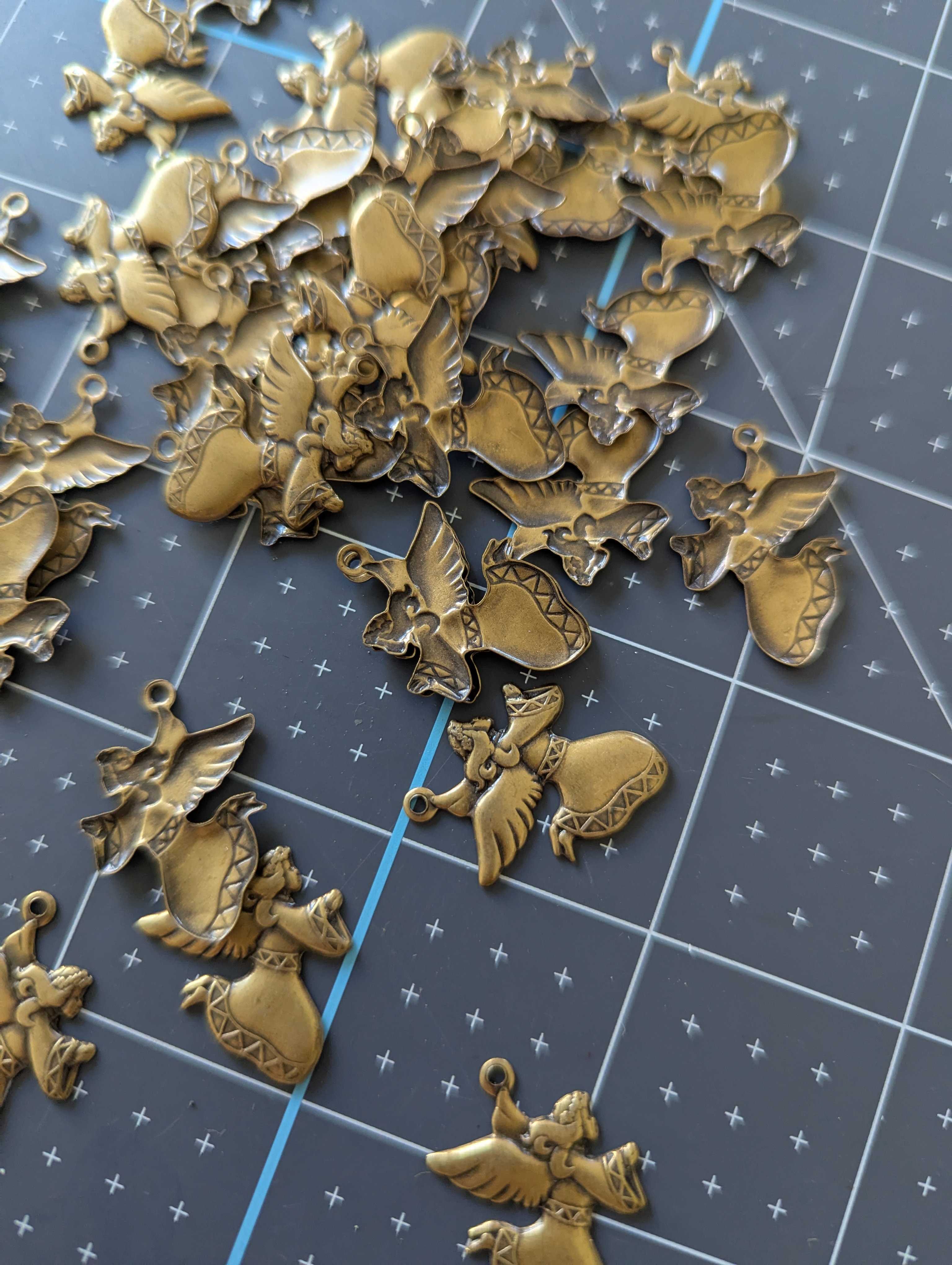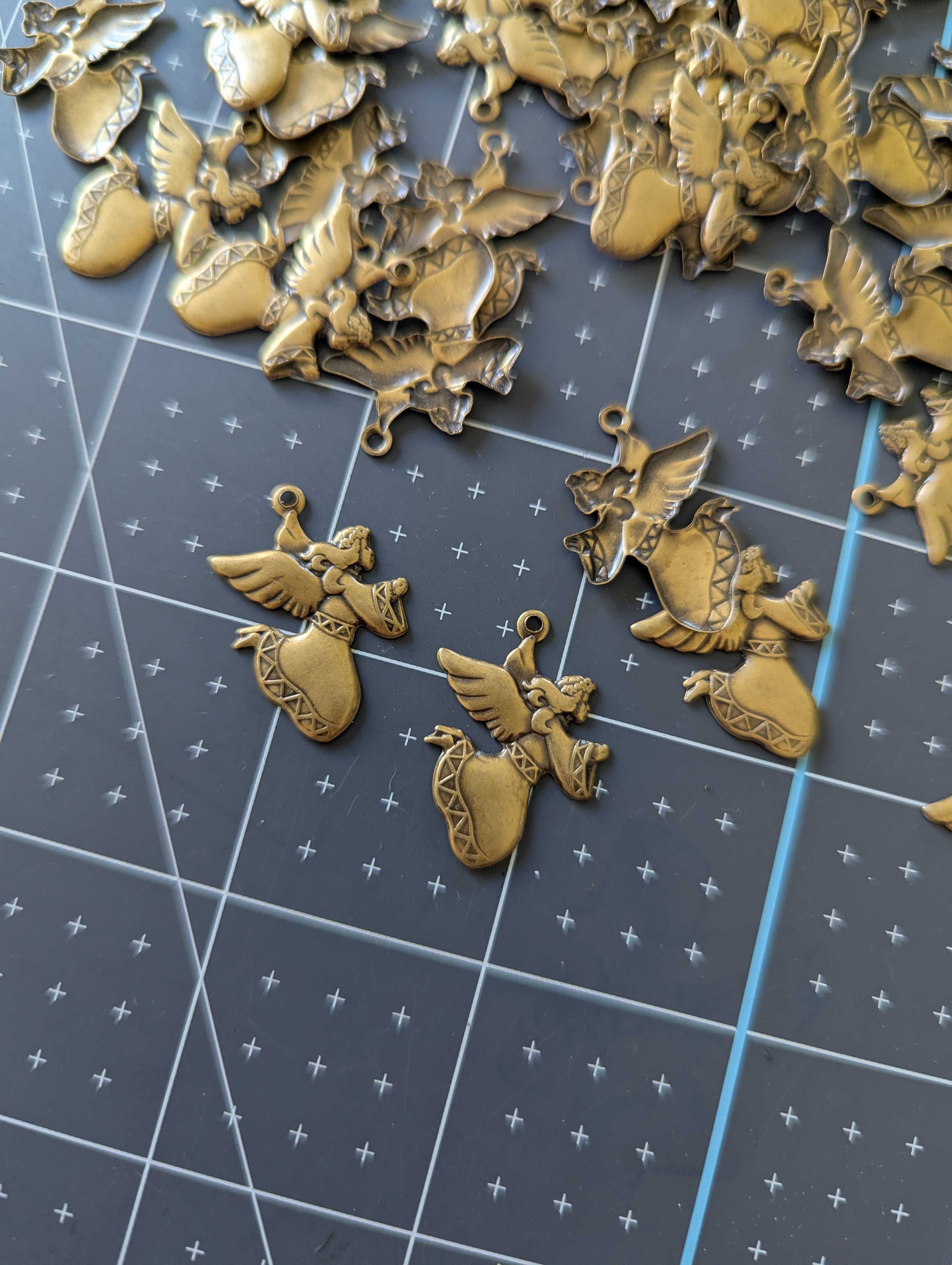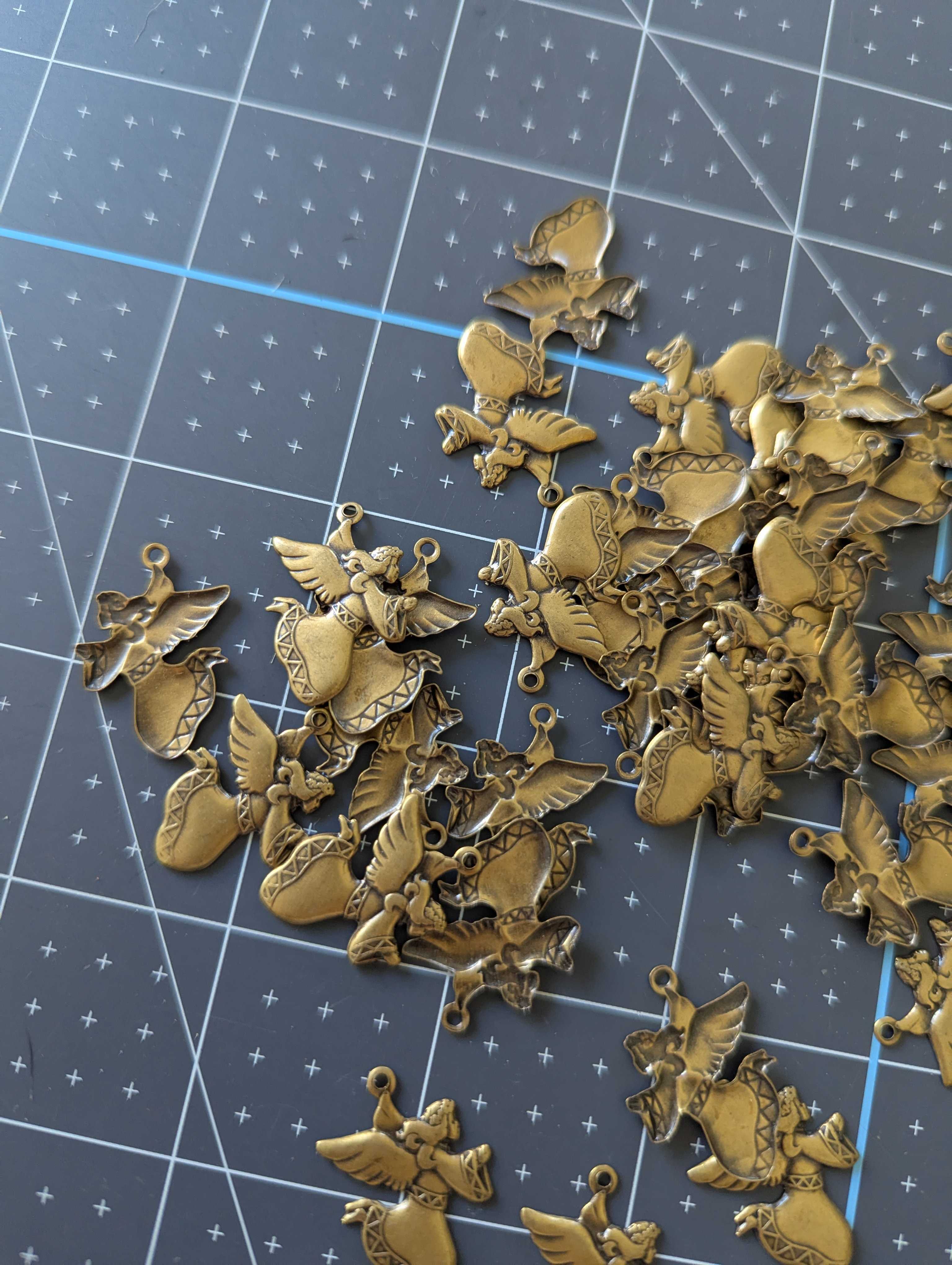 A set of 40pcs of kneeling angel charms. Mat board is in inches for size reference.