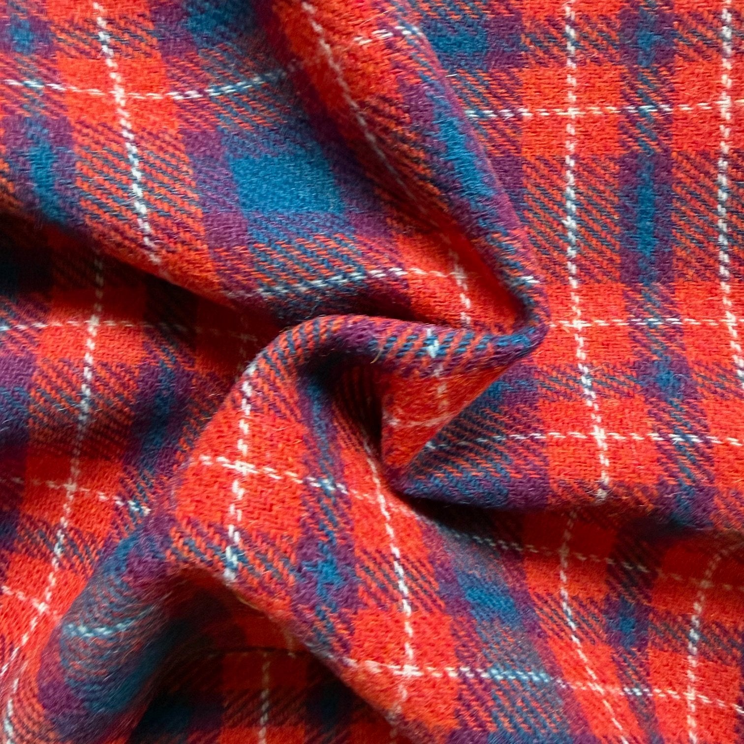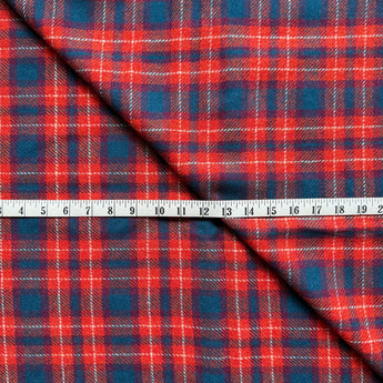 Red-Orange and Blue Plaid Fabric ~ 56" Wide ~ Blend ~ 1.56 YDS ~ Plaid