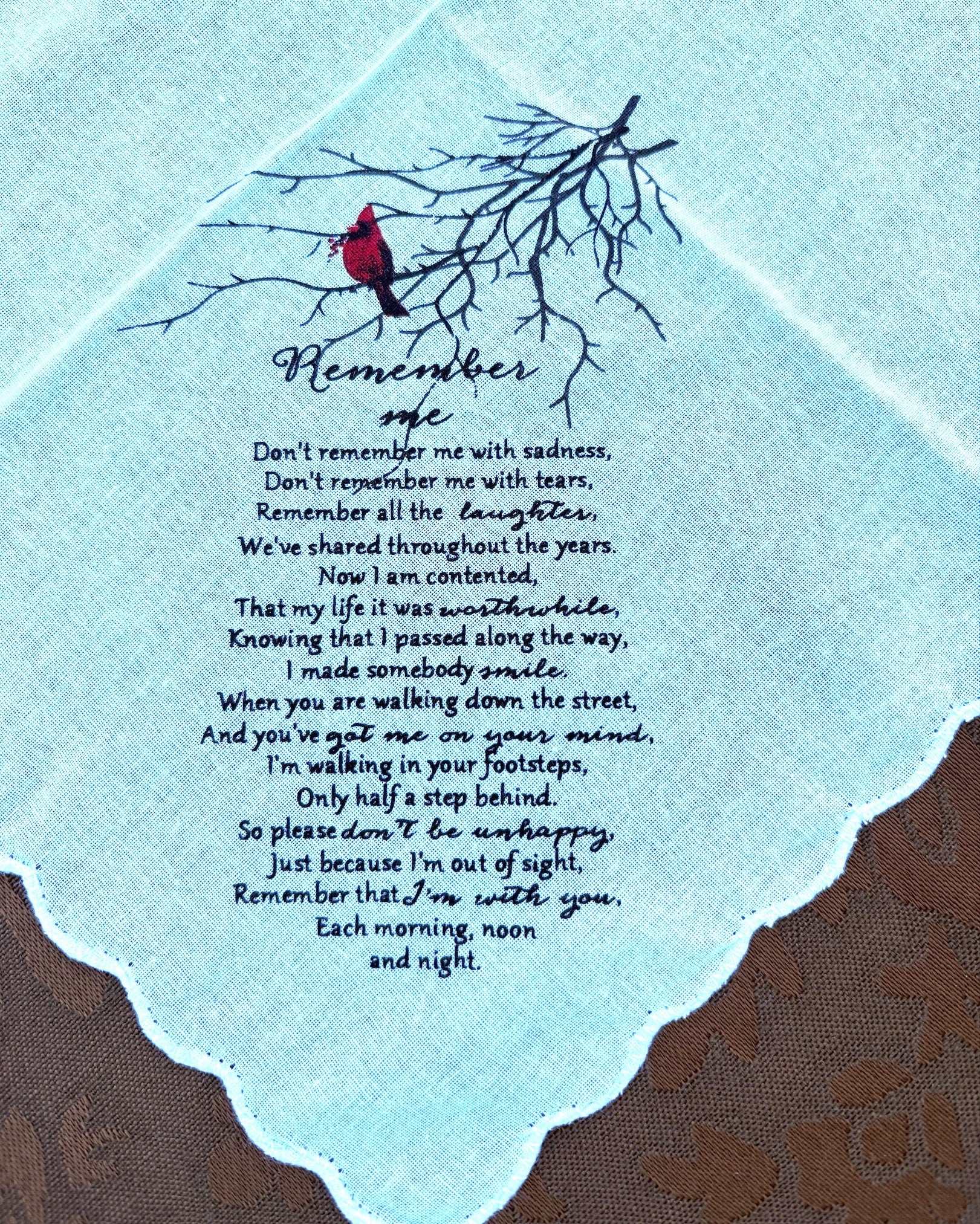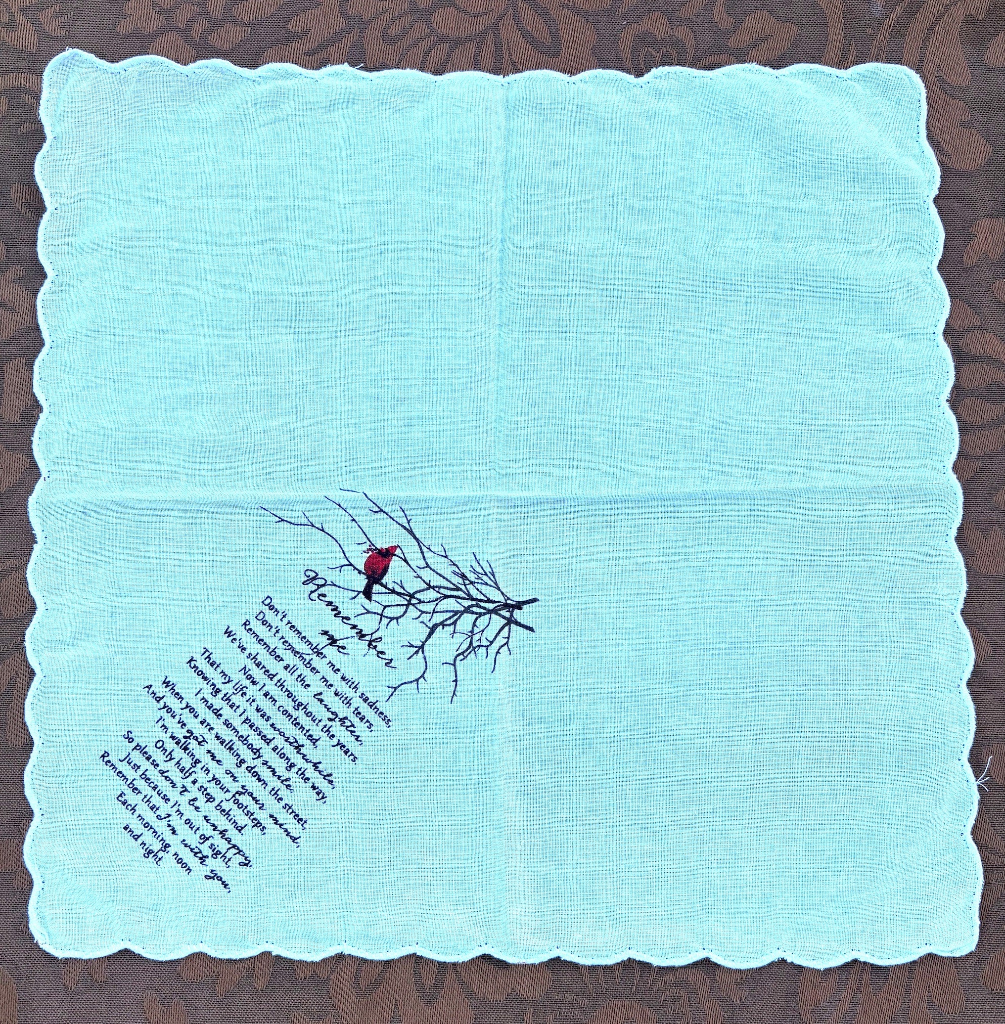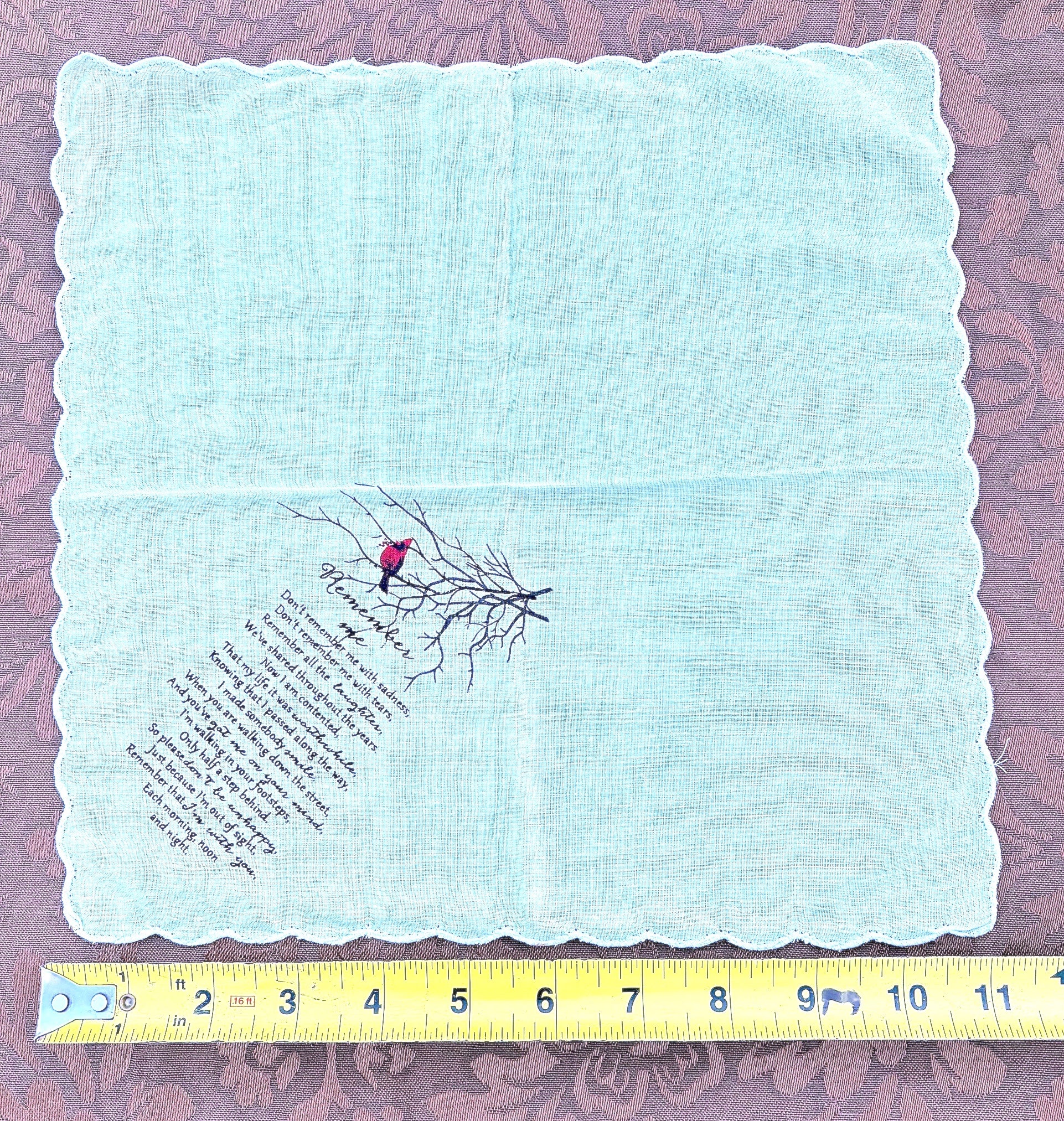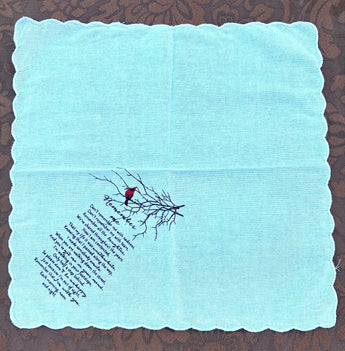11 x 11 white handkerchief with a poem titled "Remember Me".