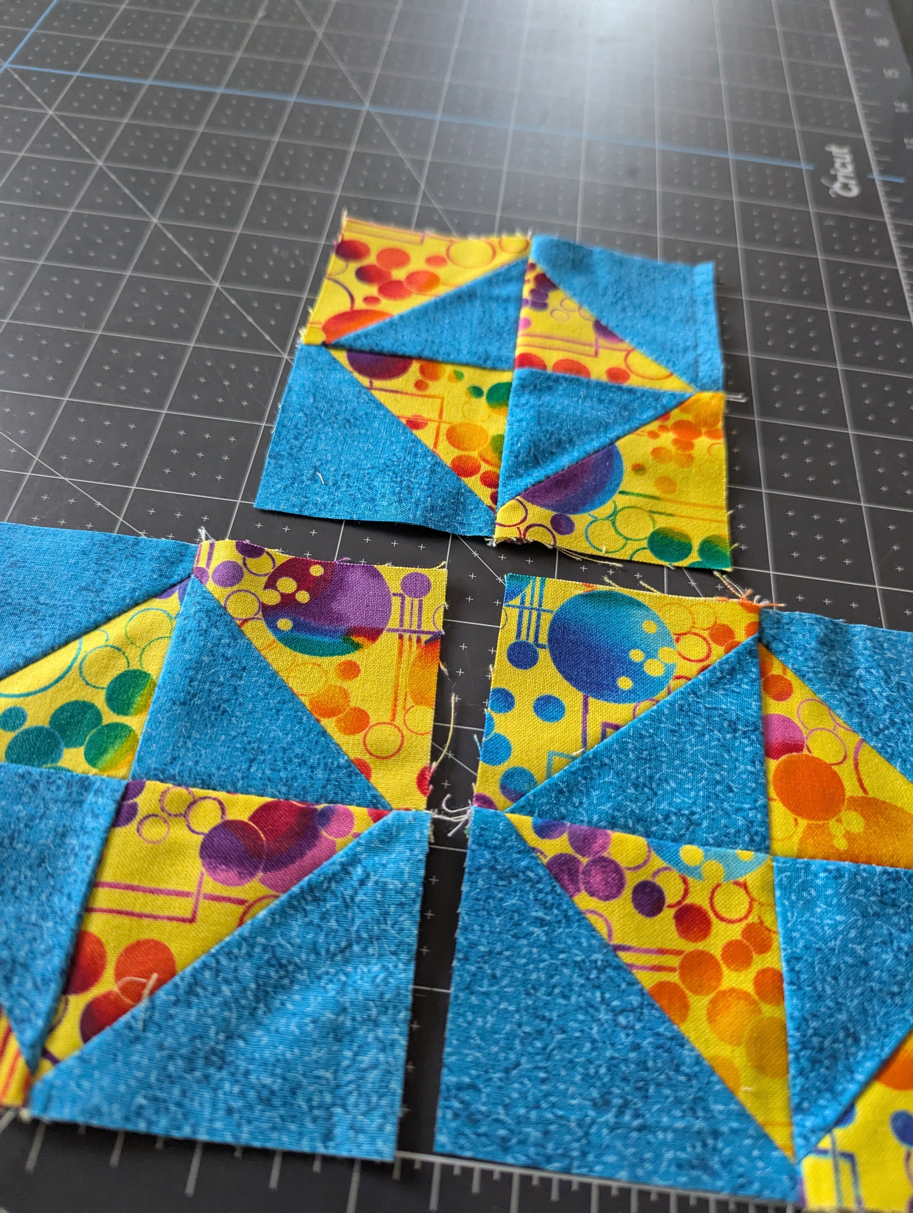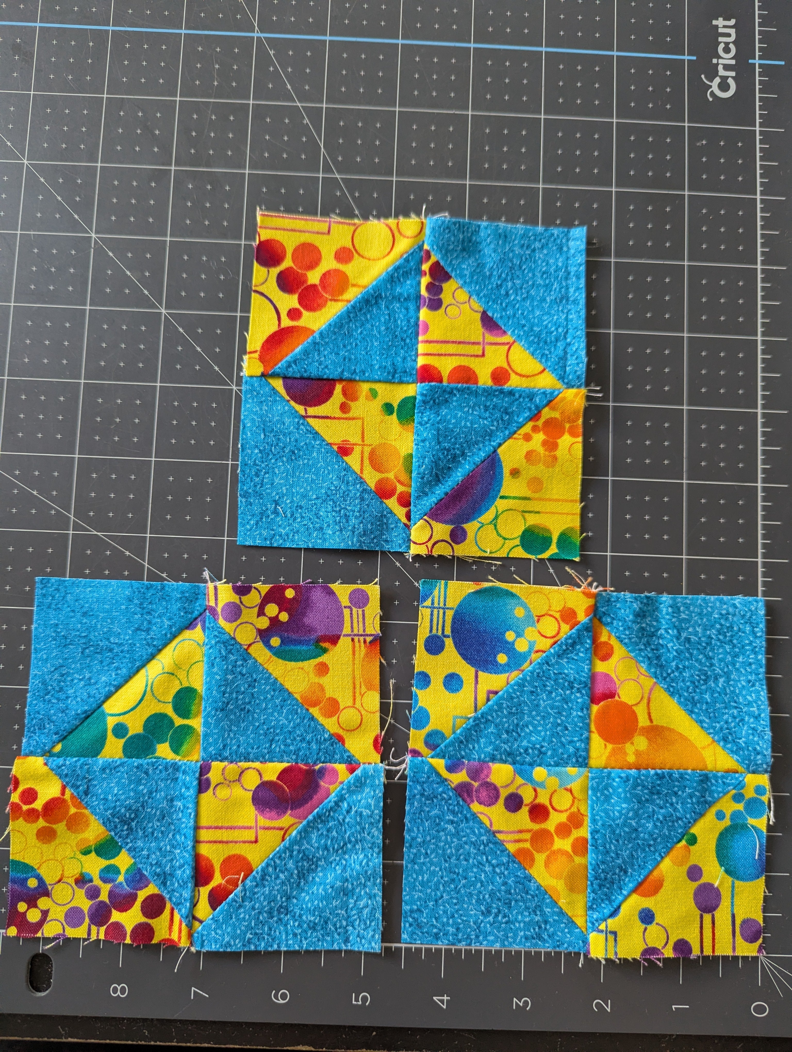 Set of 3, 4.5-inch Quilt Squares - Blue Blues & Yellows
