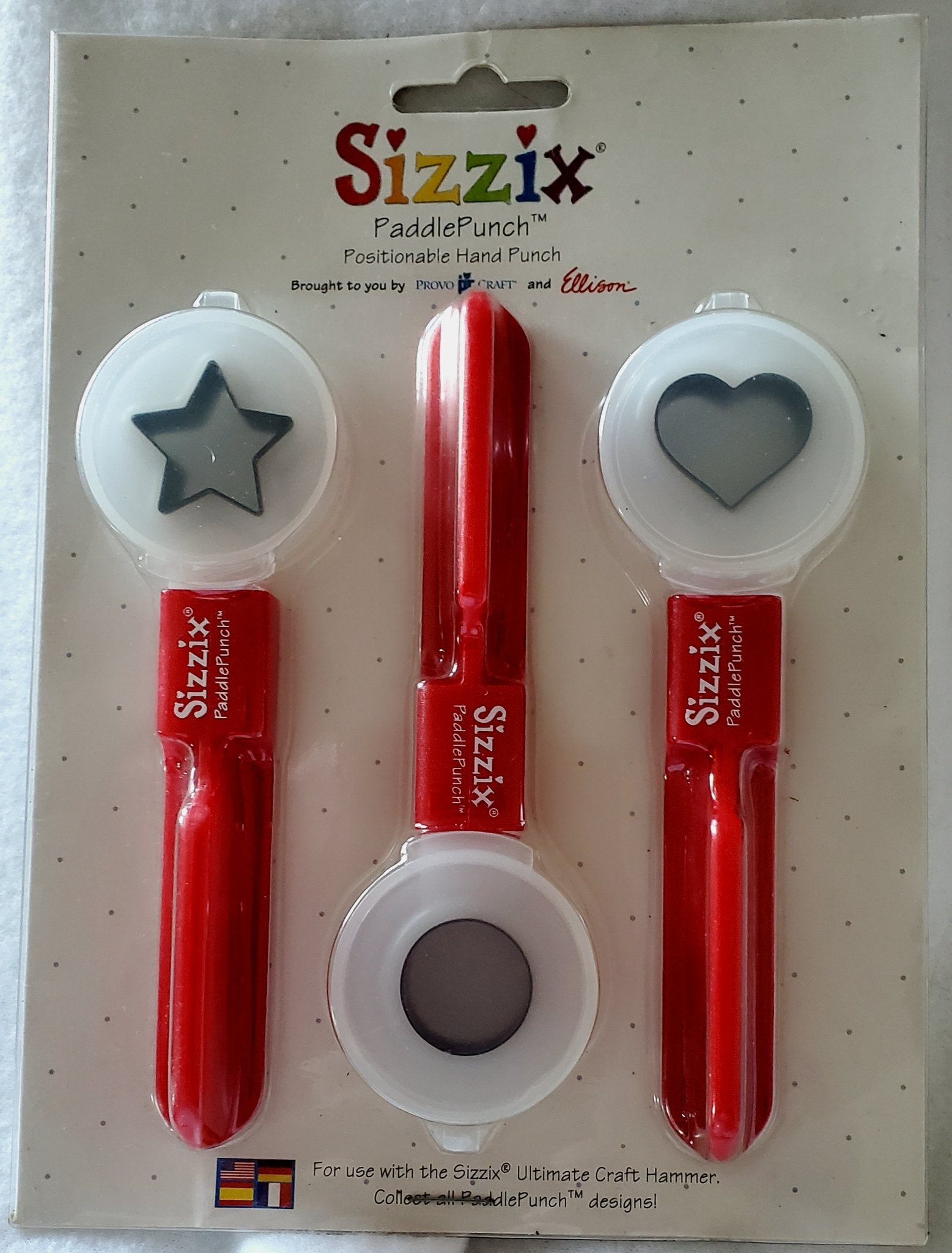 Set of 3 Sizzix Paddle Punches Heart Circle Star New in Unopened Damaged Packaging