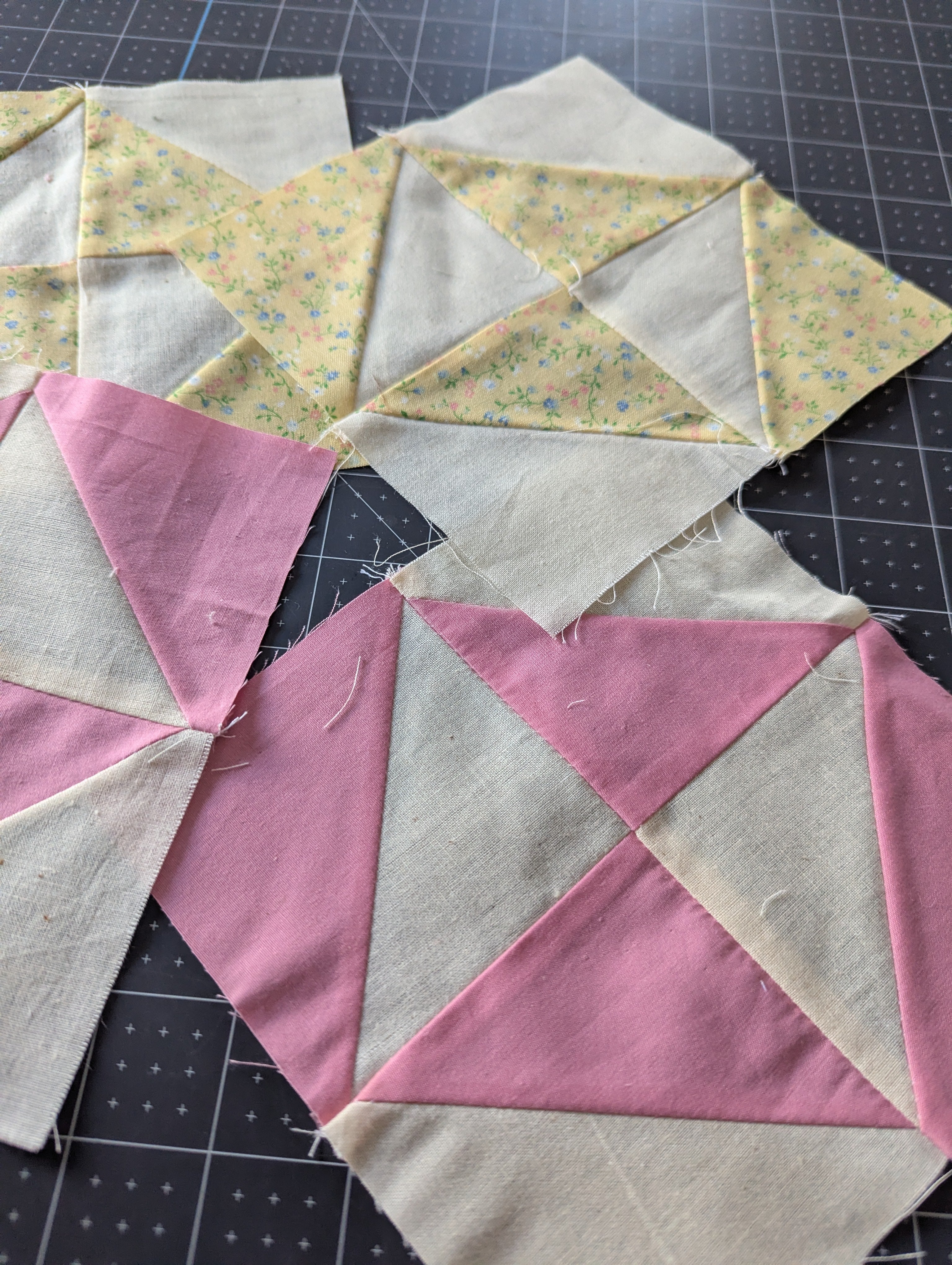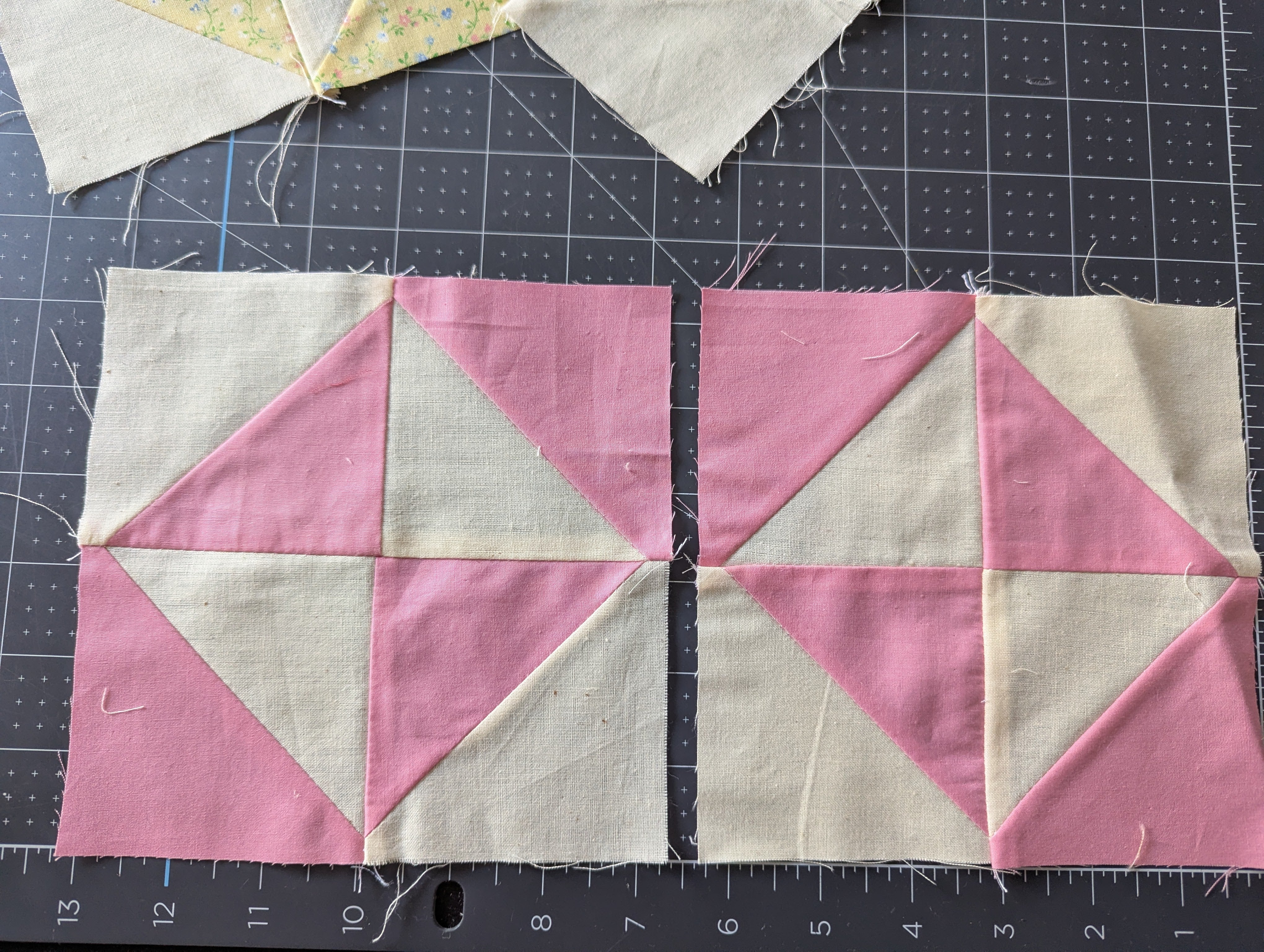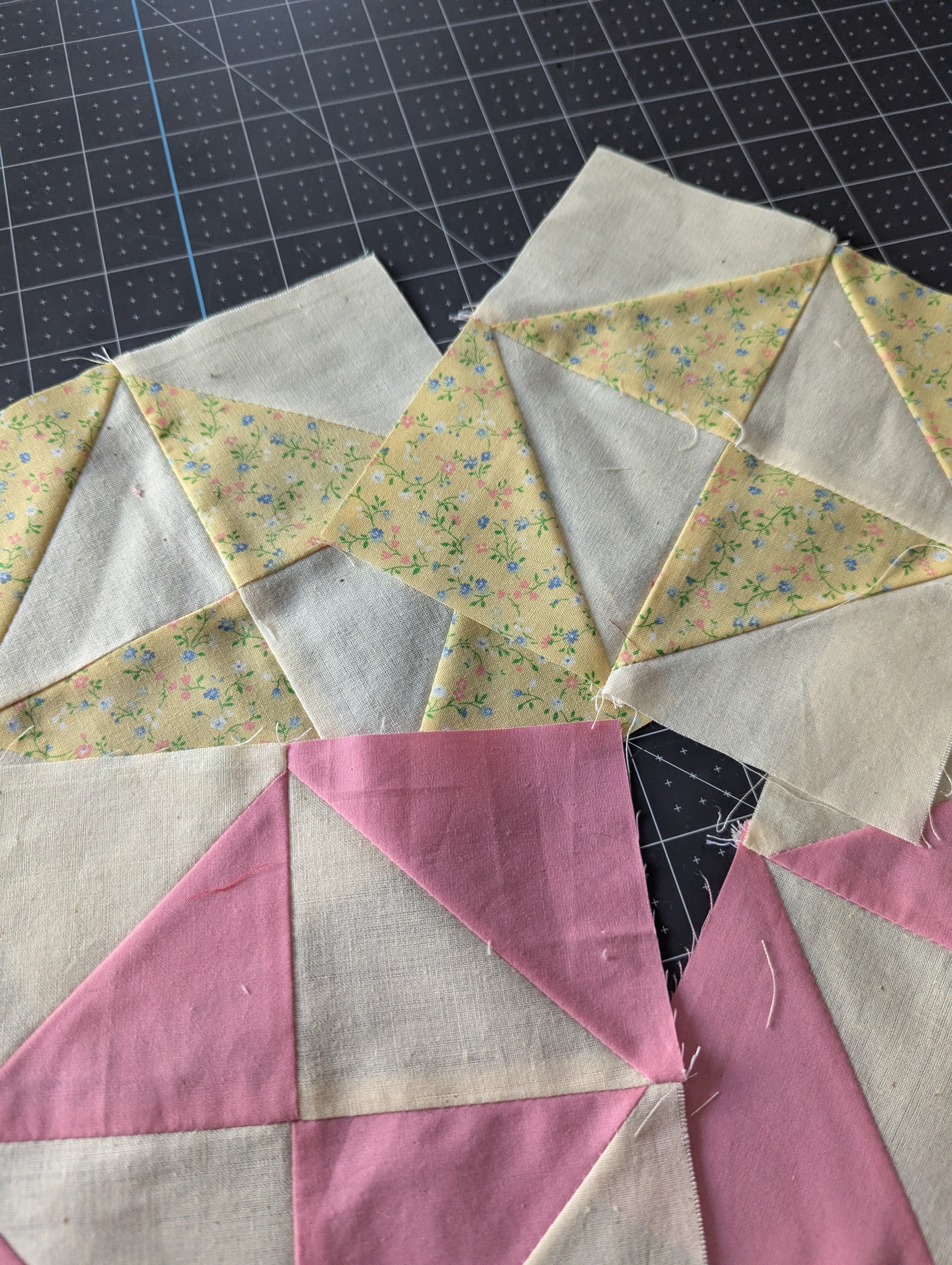 Set of 4, 6.5-inch Quilt Squares - Pink & Yellow