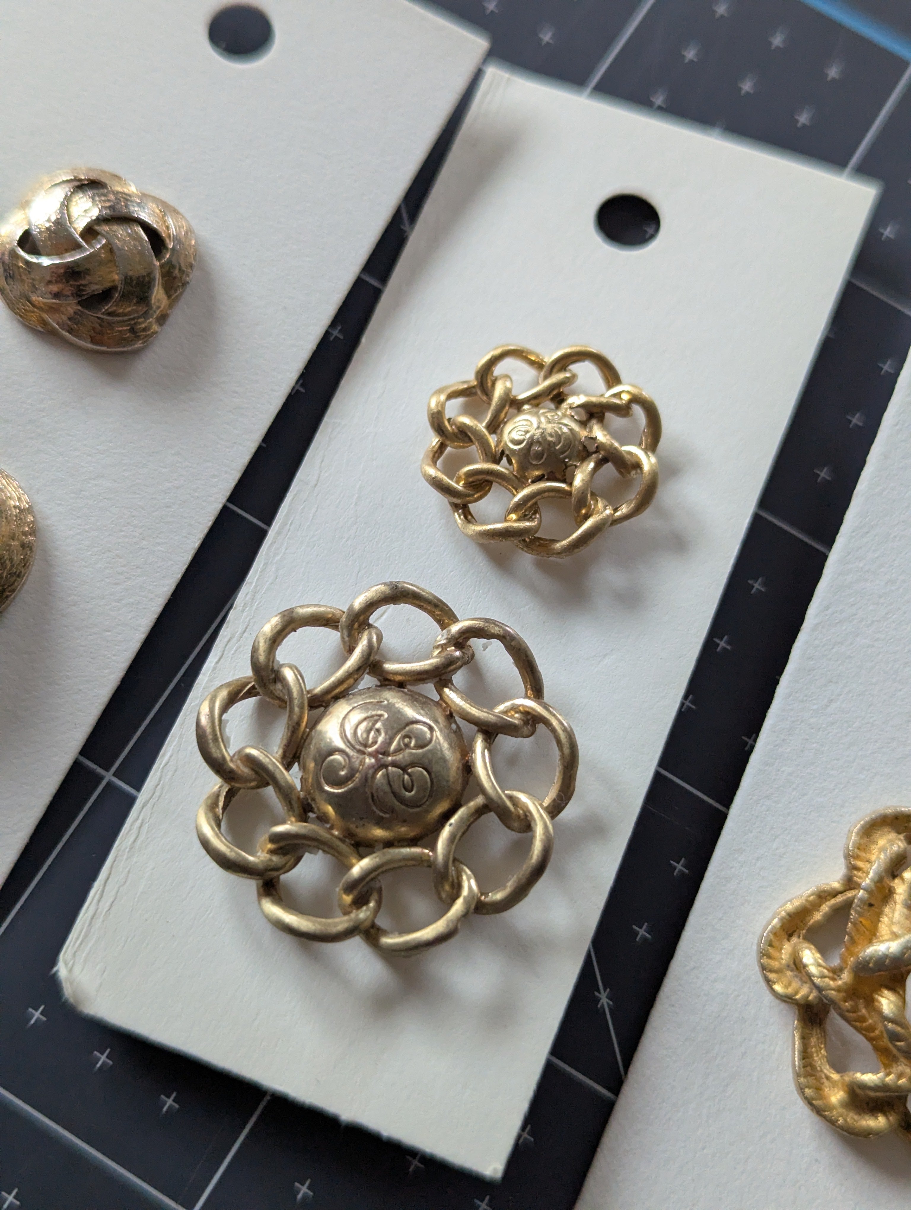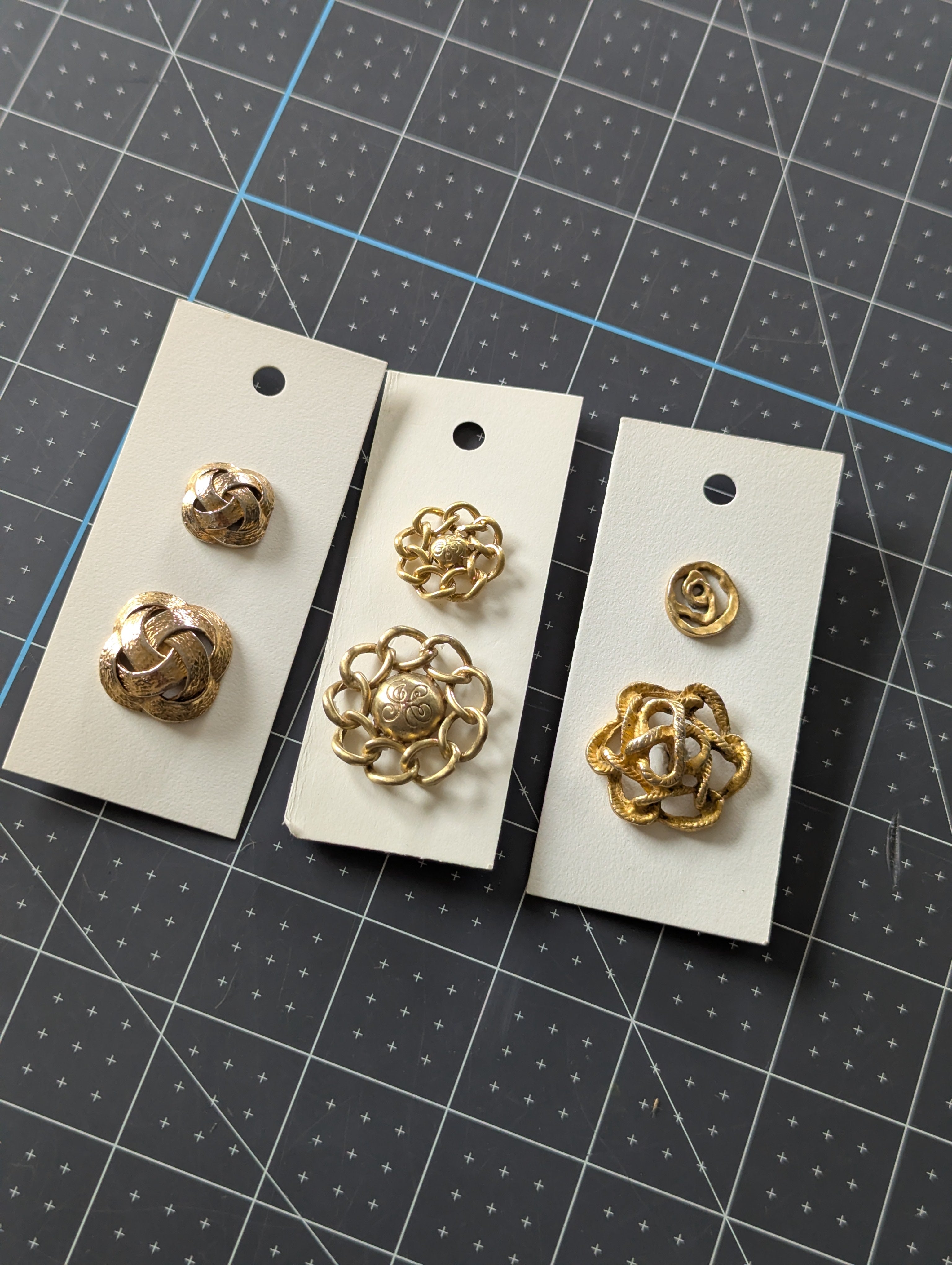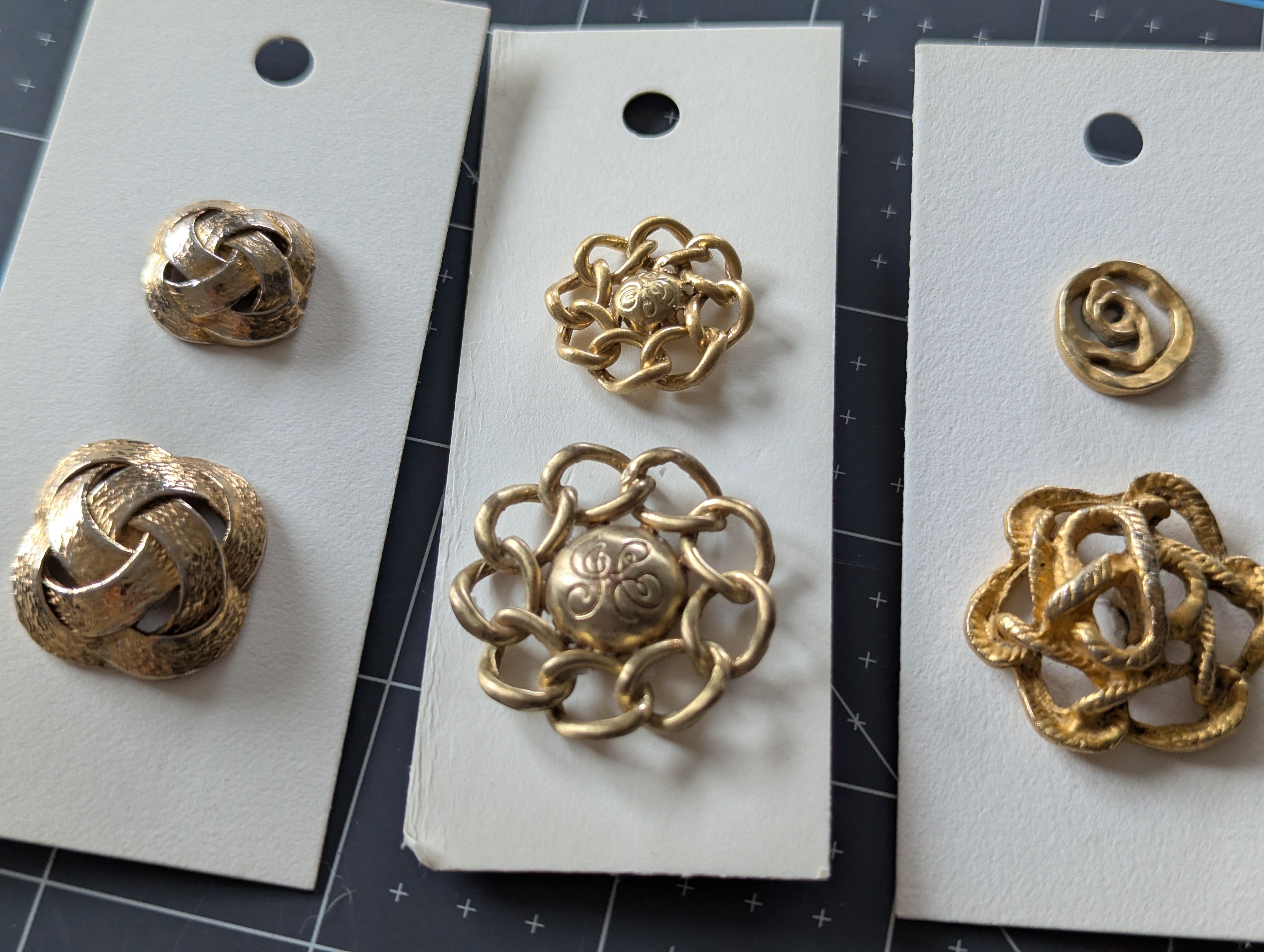 Set of 6 Gold Toned Silver Shank Buttons (Sizes Vary)