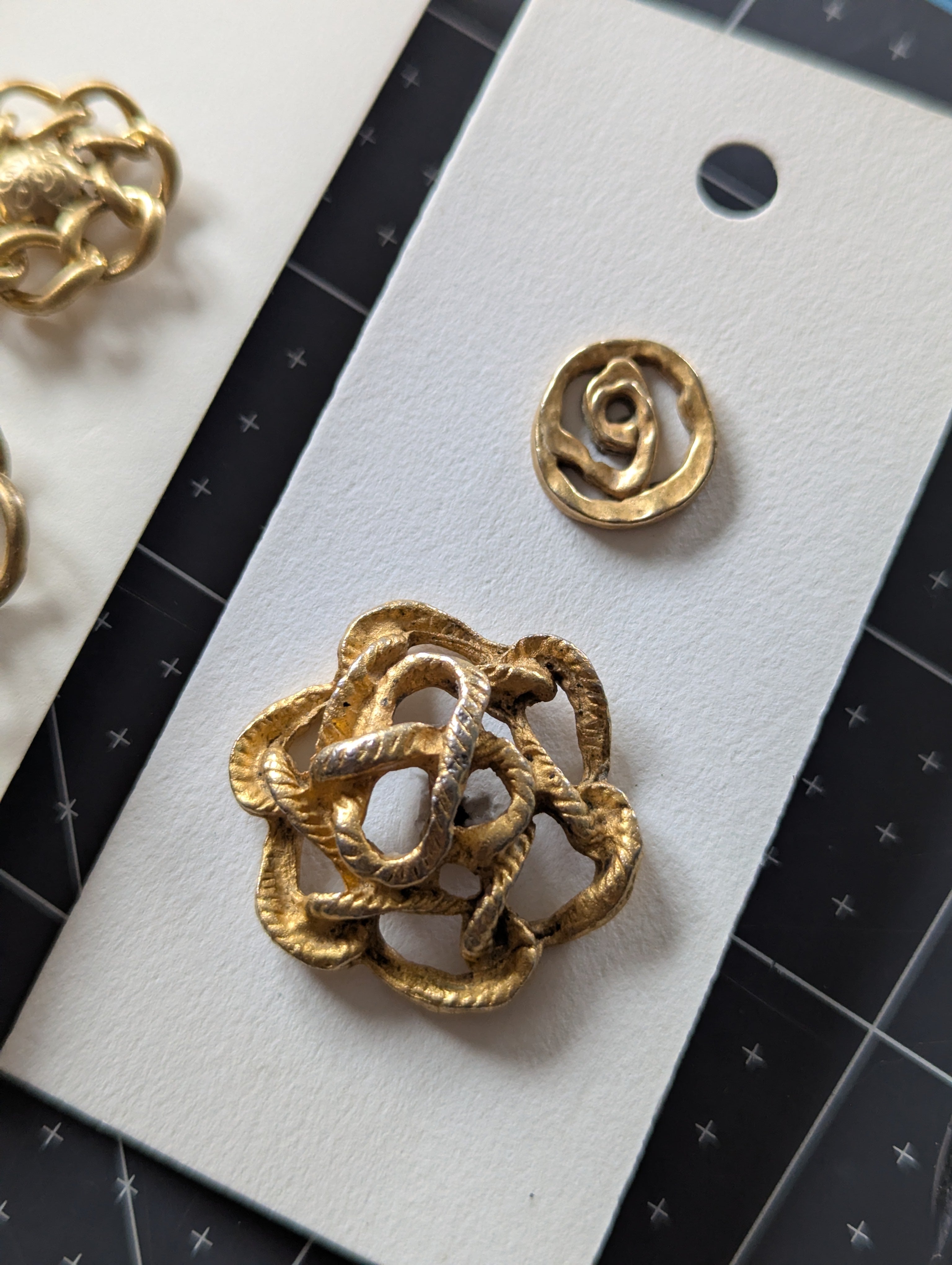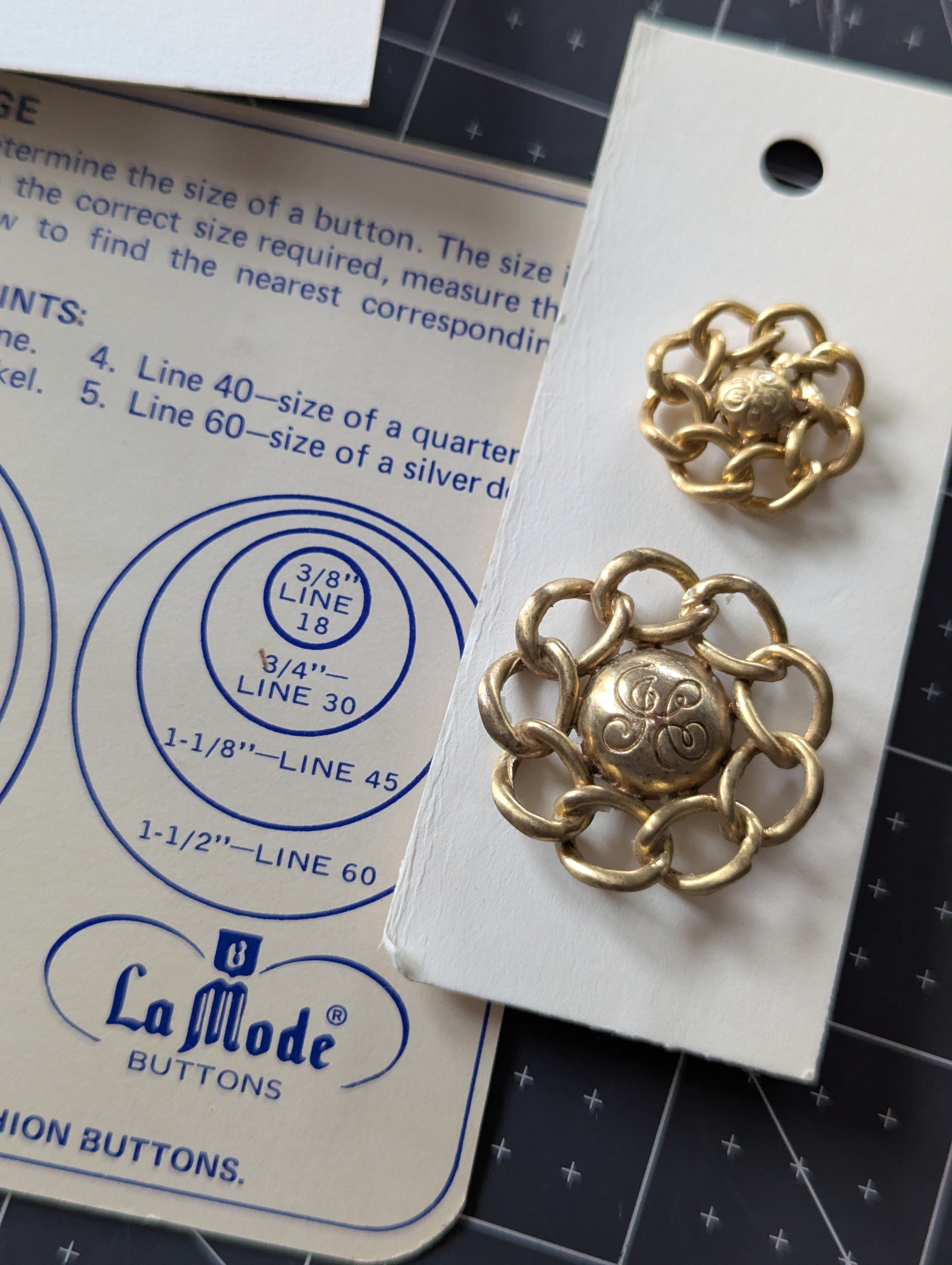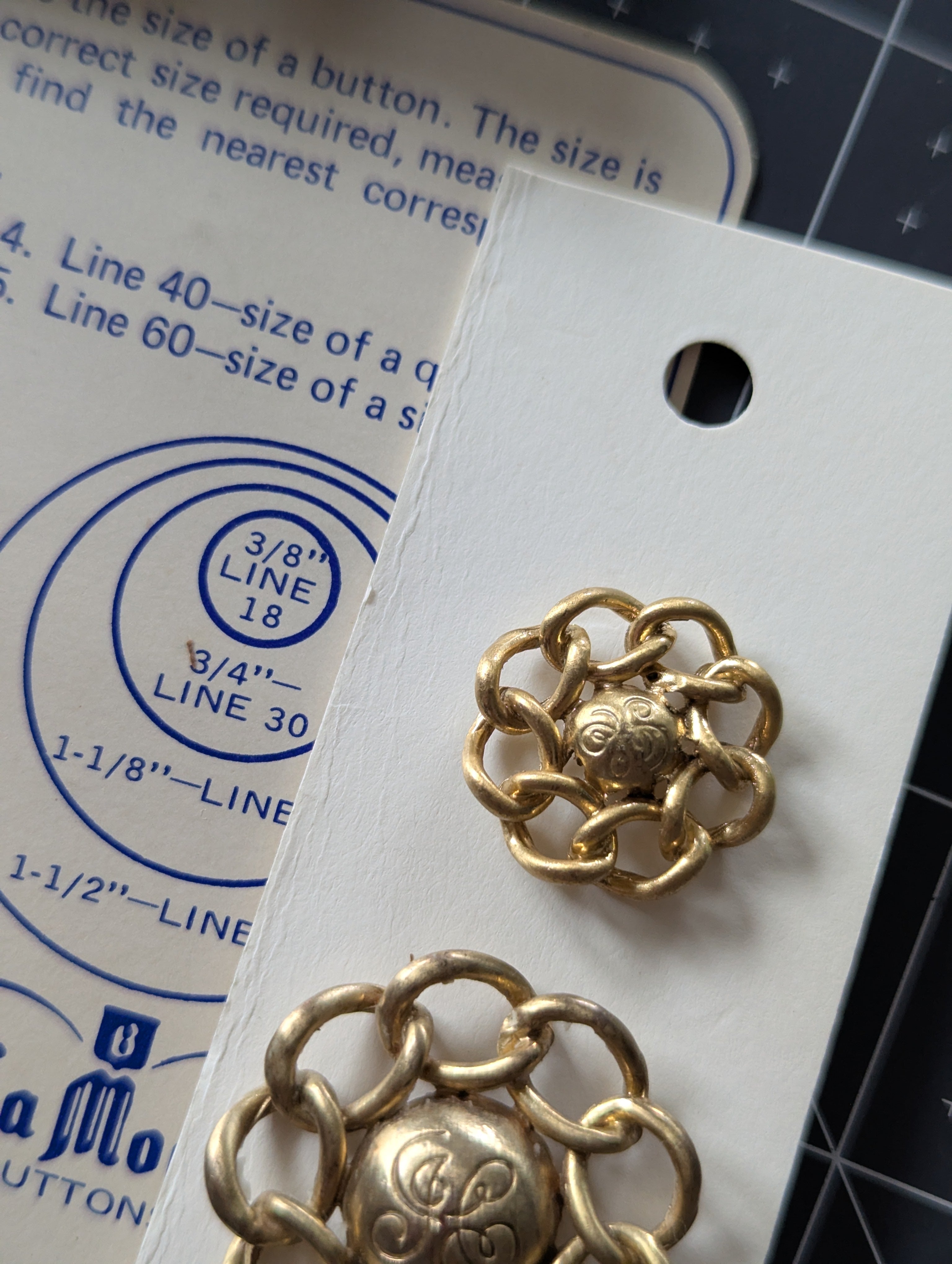 Set of 6 Gold Toned Silver Shank Buttons (Sizes Vary)