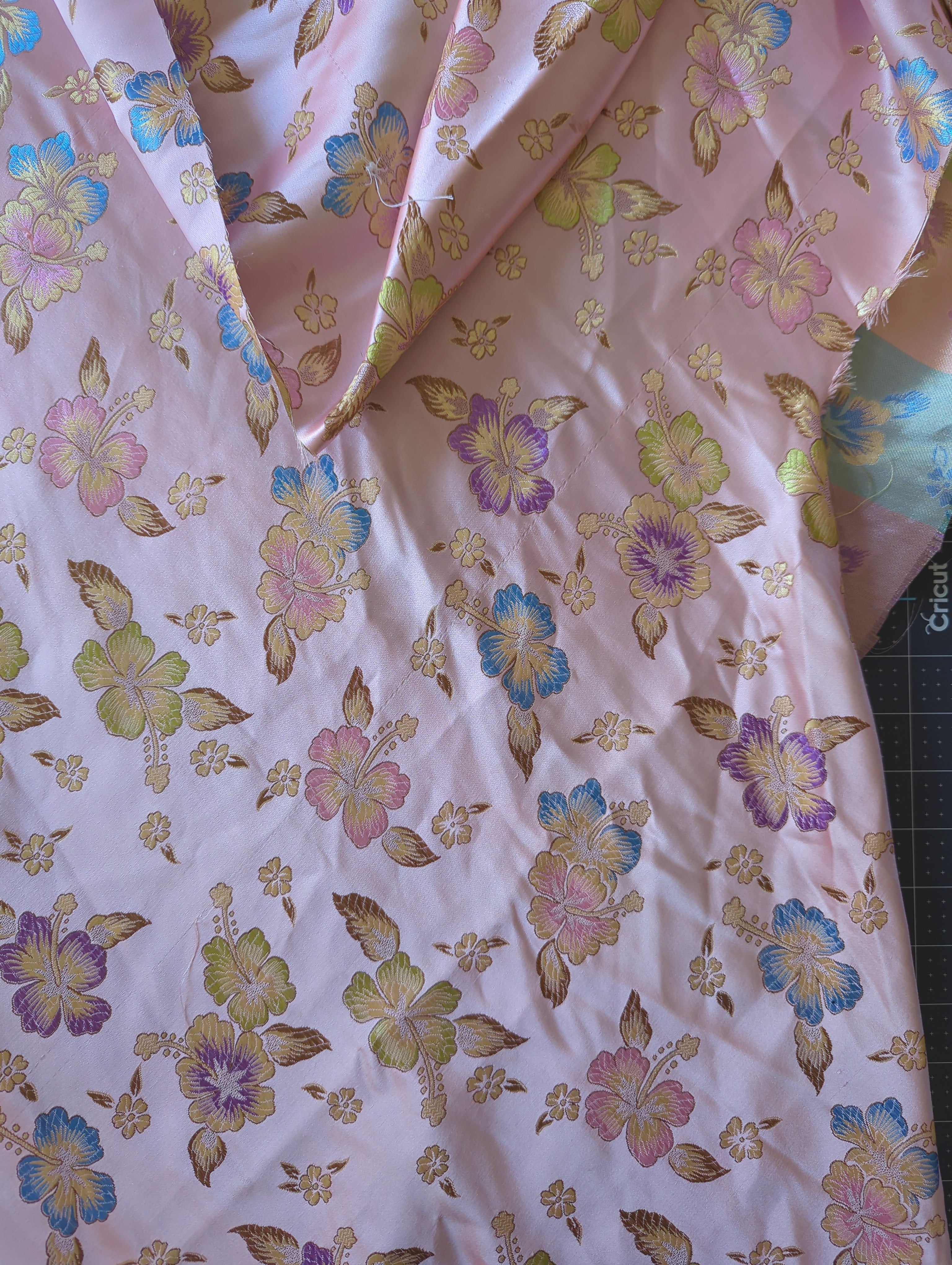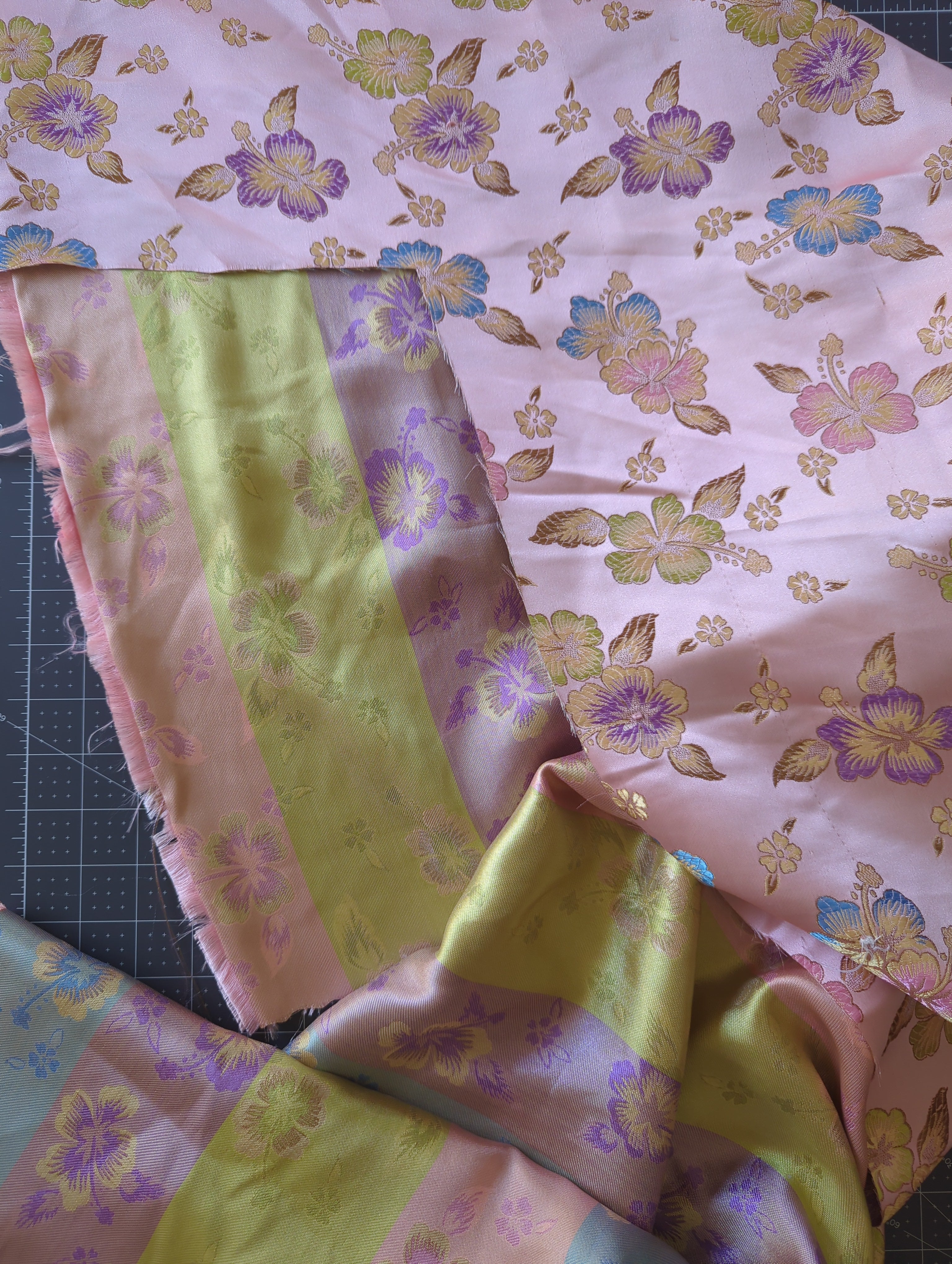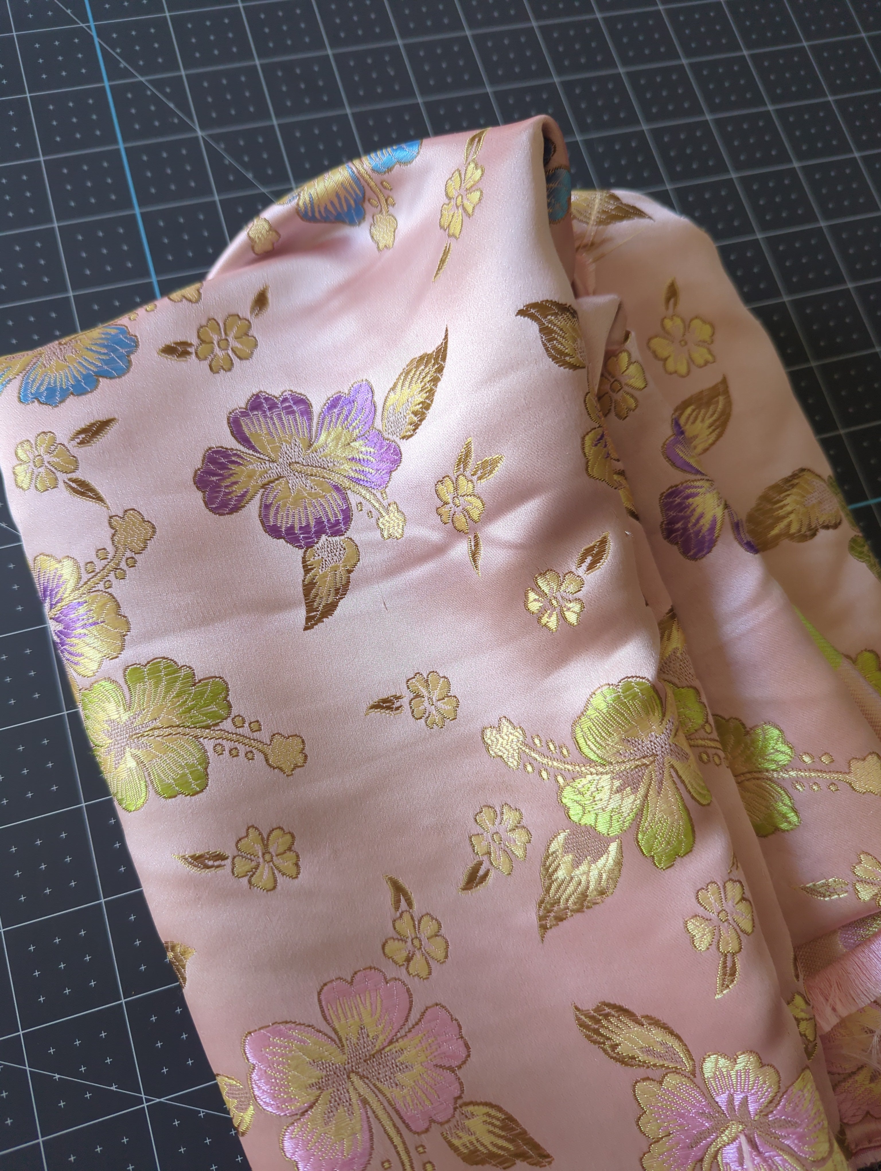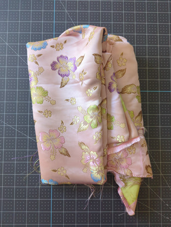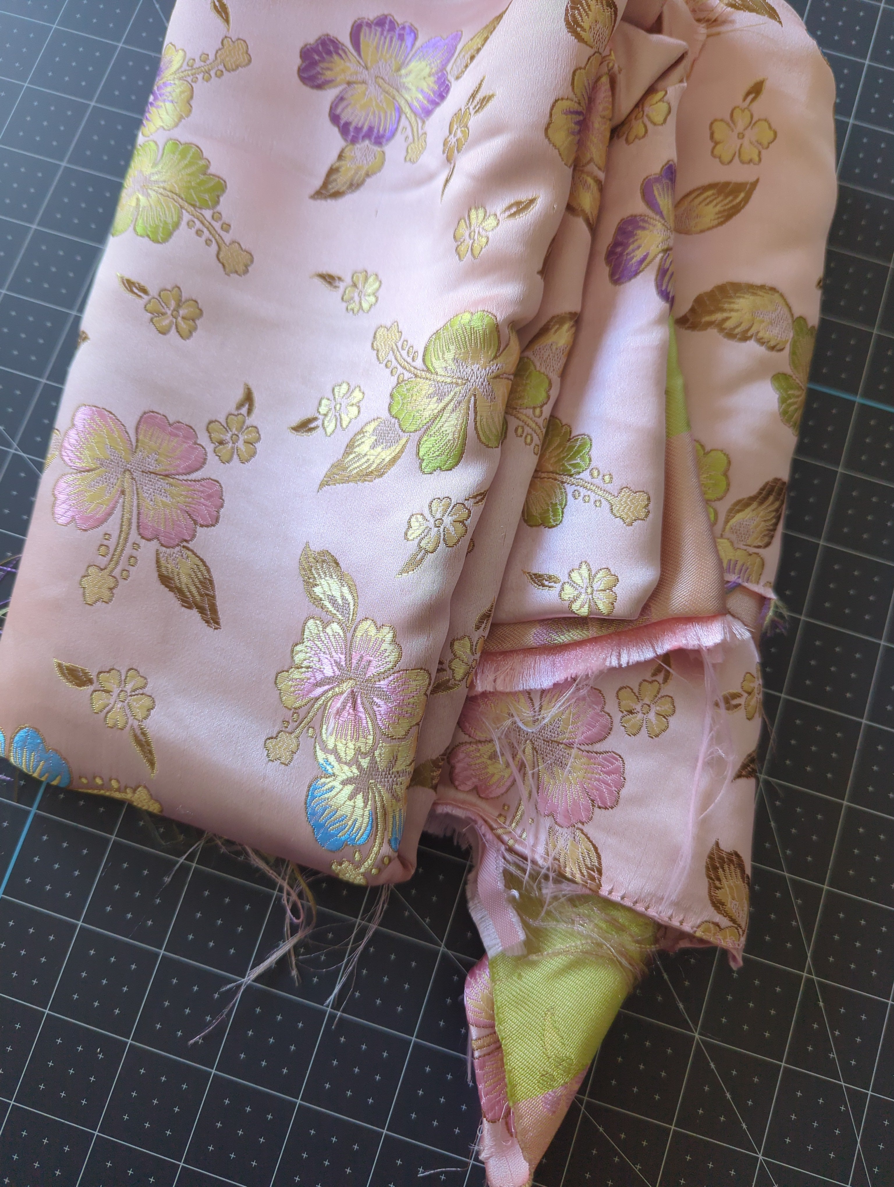A beautiful and large cut remnant of fabric, cut in an odd shape as it's been used by someone prior. There isn't one full yard here, it's widest part is more like 20 inches. Great for someone who's cutting medium to smaller panels. Fabric is in clean condition but does have some thread flaws.
