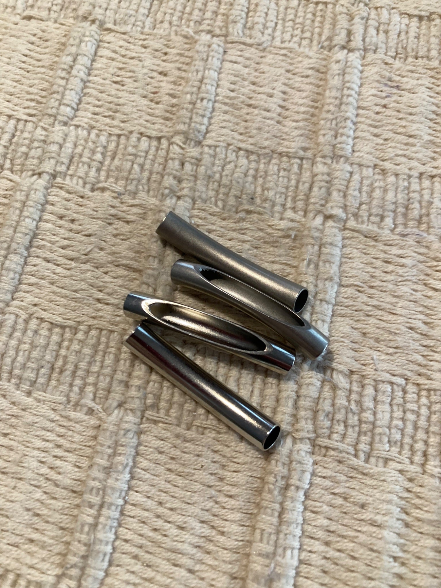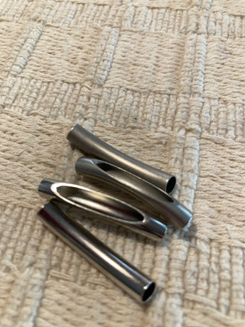 These channel pieces work in a necklace or bracelet. As you run beads along the strand you thread it though the channel, the opening atop is like a peekaboo, a wonderful accent piece.