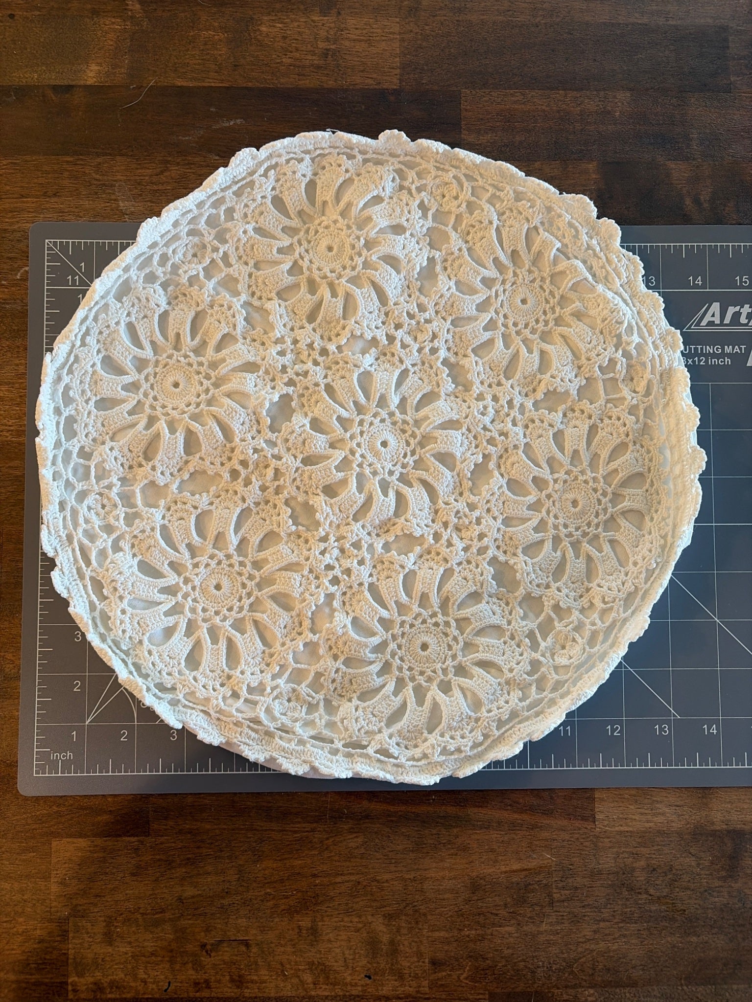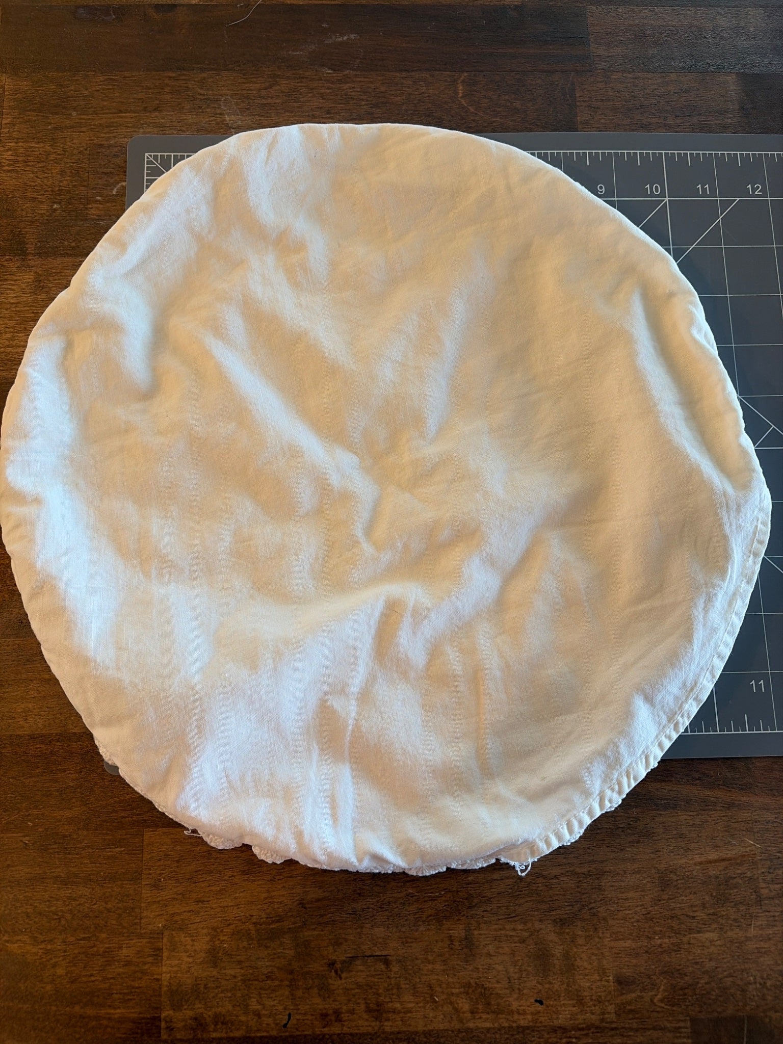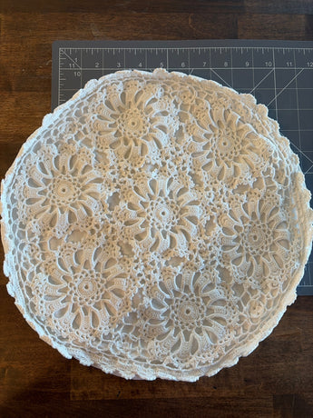 Small Round White Pillow Cover, with Crochet detail-or refabric