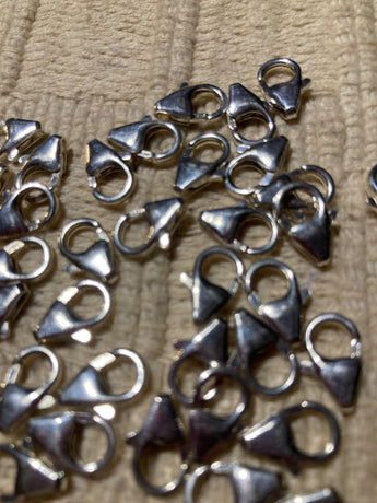 These sterling silver lobster clasps have a modern look. The base comes to a point, instead of the traditional rounded end. These retail for an average of $8.75/each. I am offering all my clasps at a discount. $4.50/each 1oz.