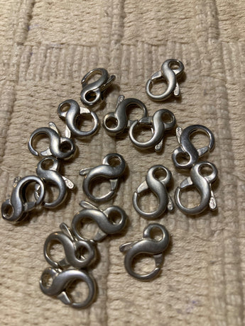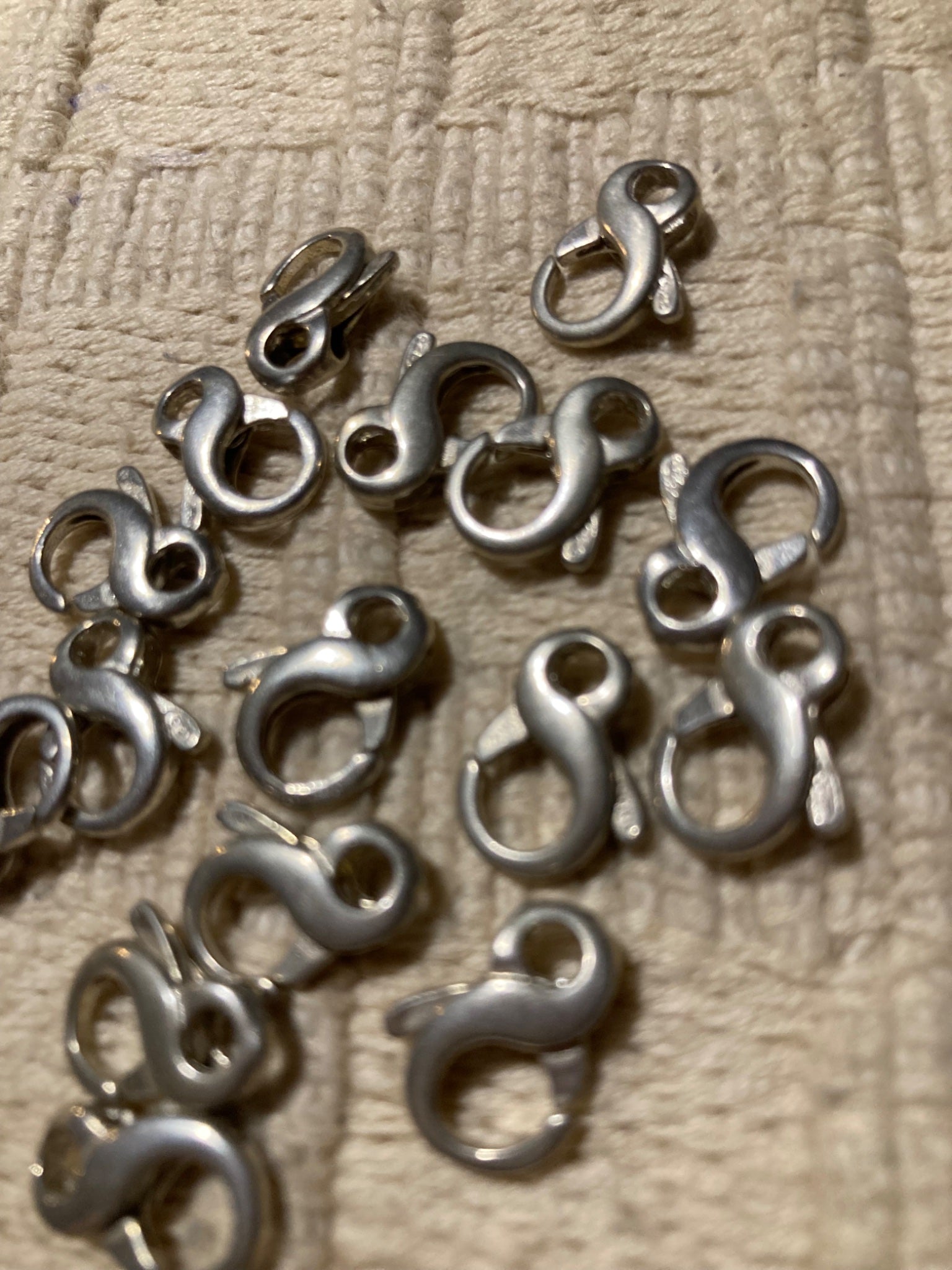 These are my absolute favorites. These sterling silver 11.6mm ‘infinity’ (my name) are stamped 925 for sterling silver. These retail for an average of $14.99/each. I am offering all my clasps at a discount. $10.00/each 1oz.