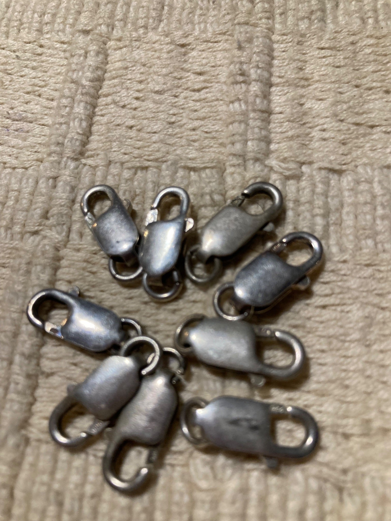 These sterling silver 18mm lobster clasps are stamped 935 for sterling. These retail for an average of $12.00/each, I am offering all my clasps at a discount. $8.00/each 1oz.