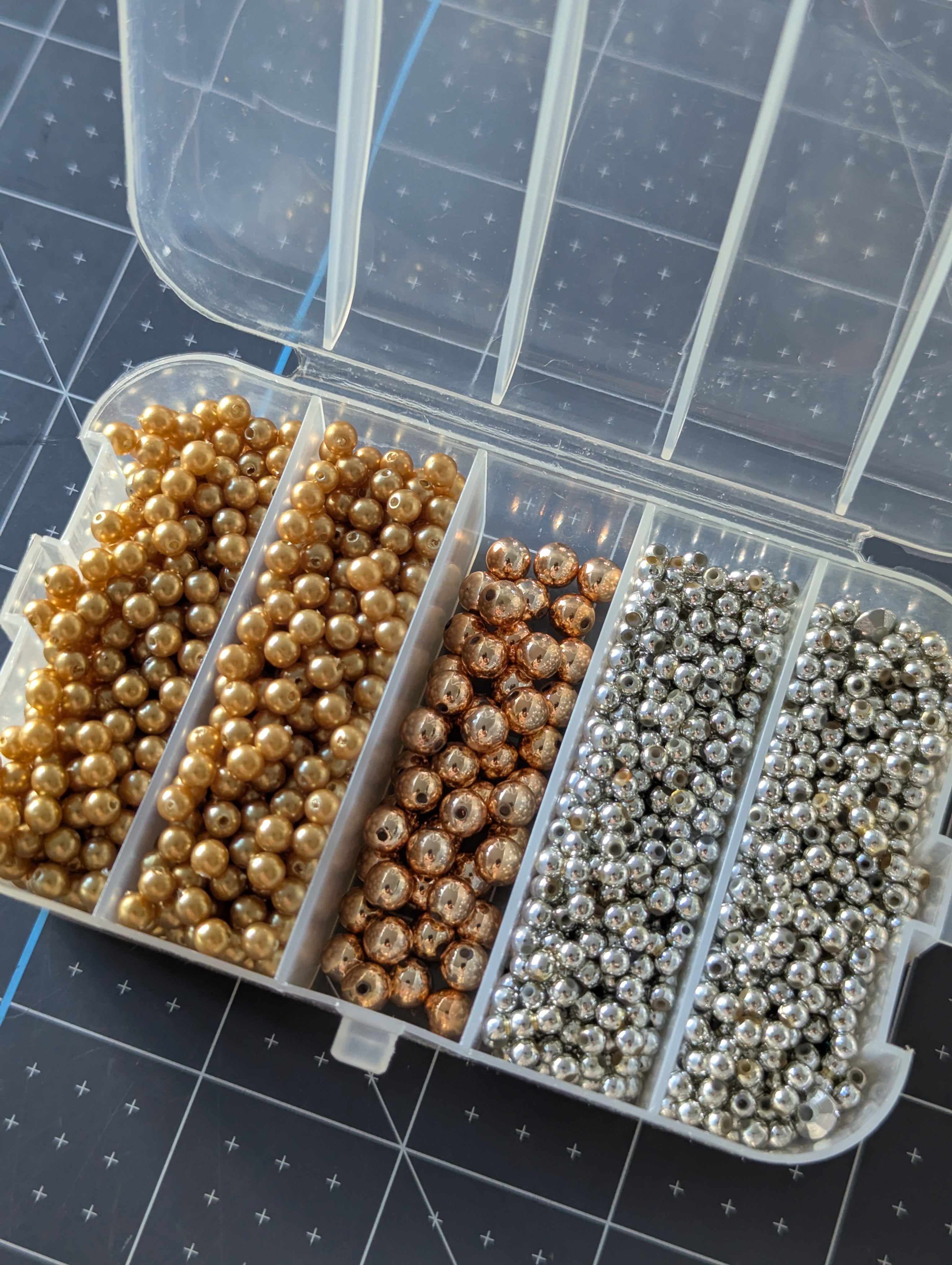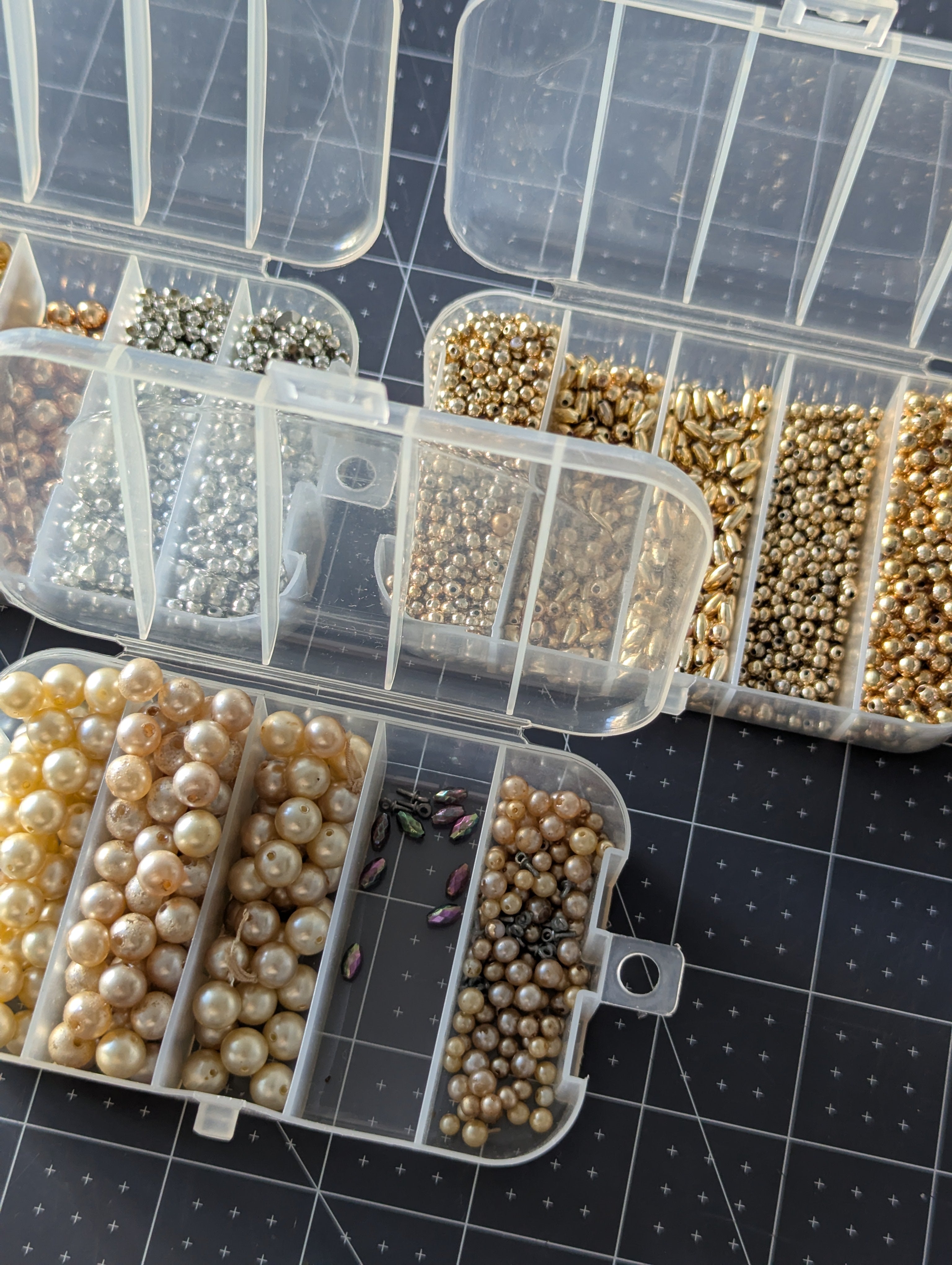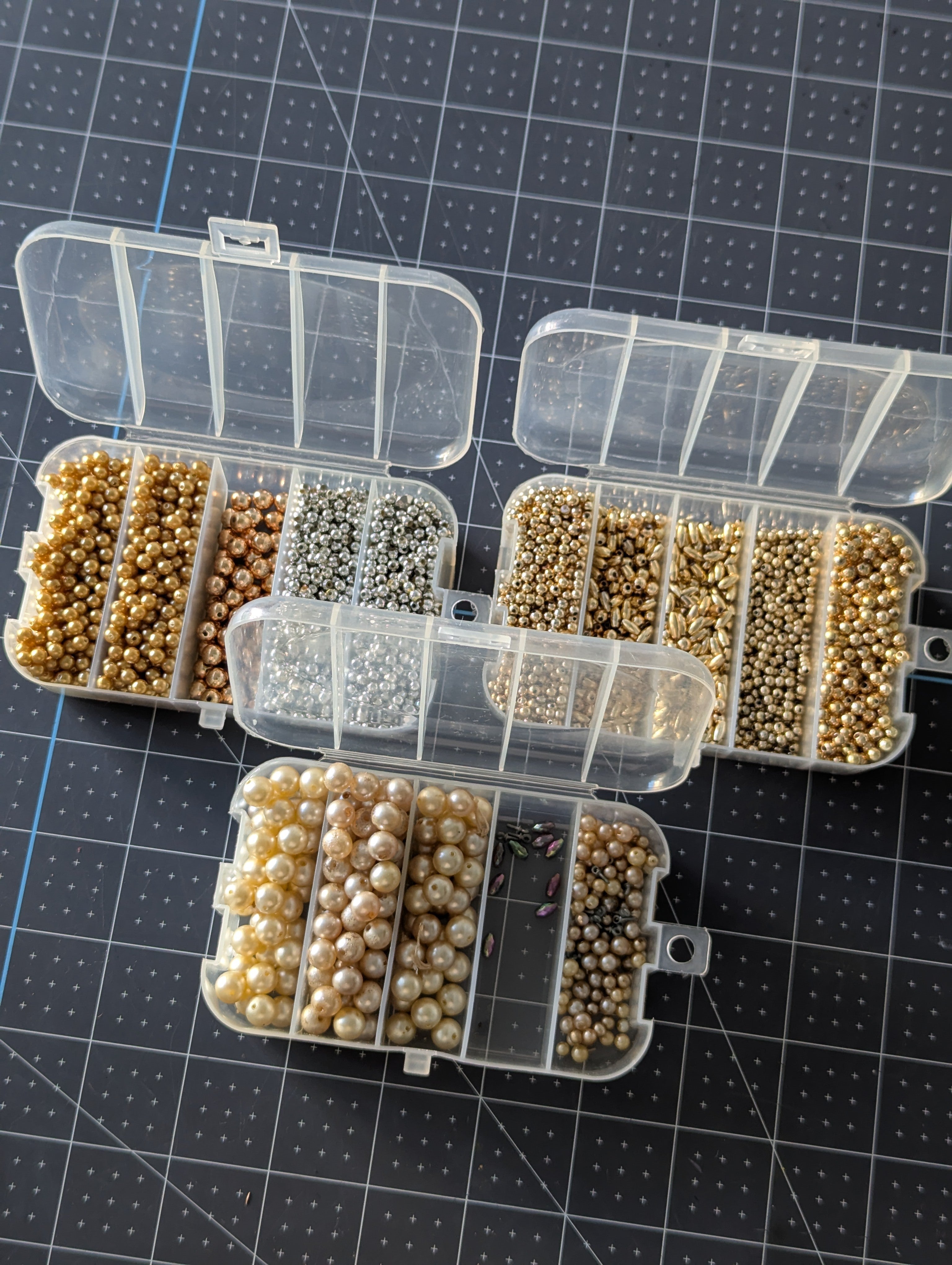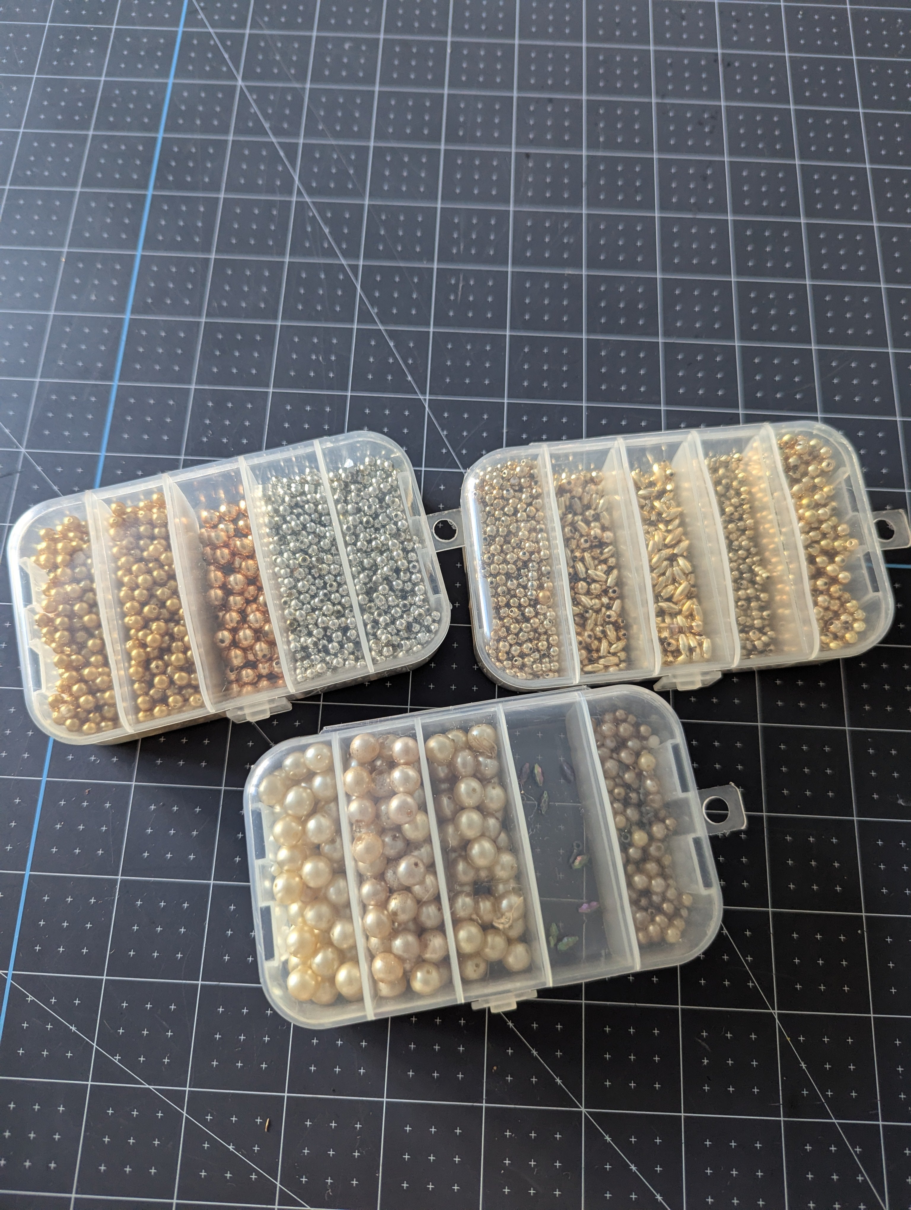 Three Containers with a Mixture of Faux Metal & Faux Pearl Beads