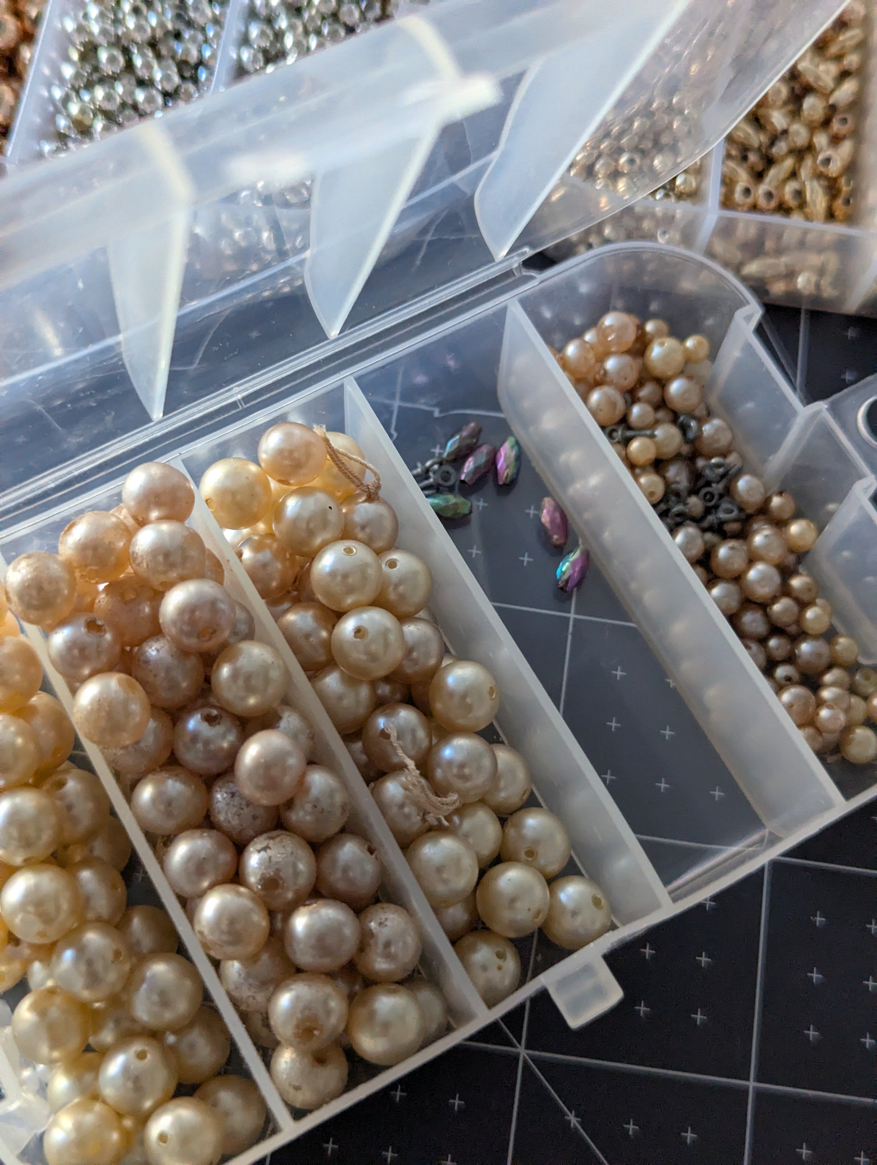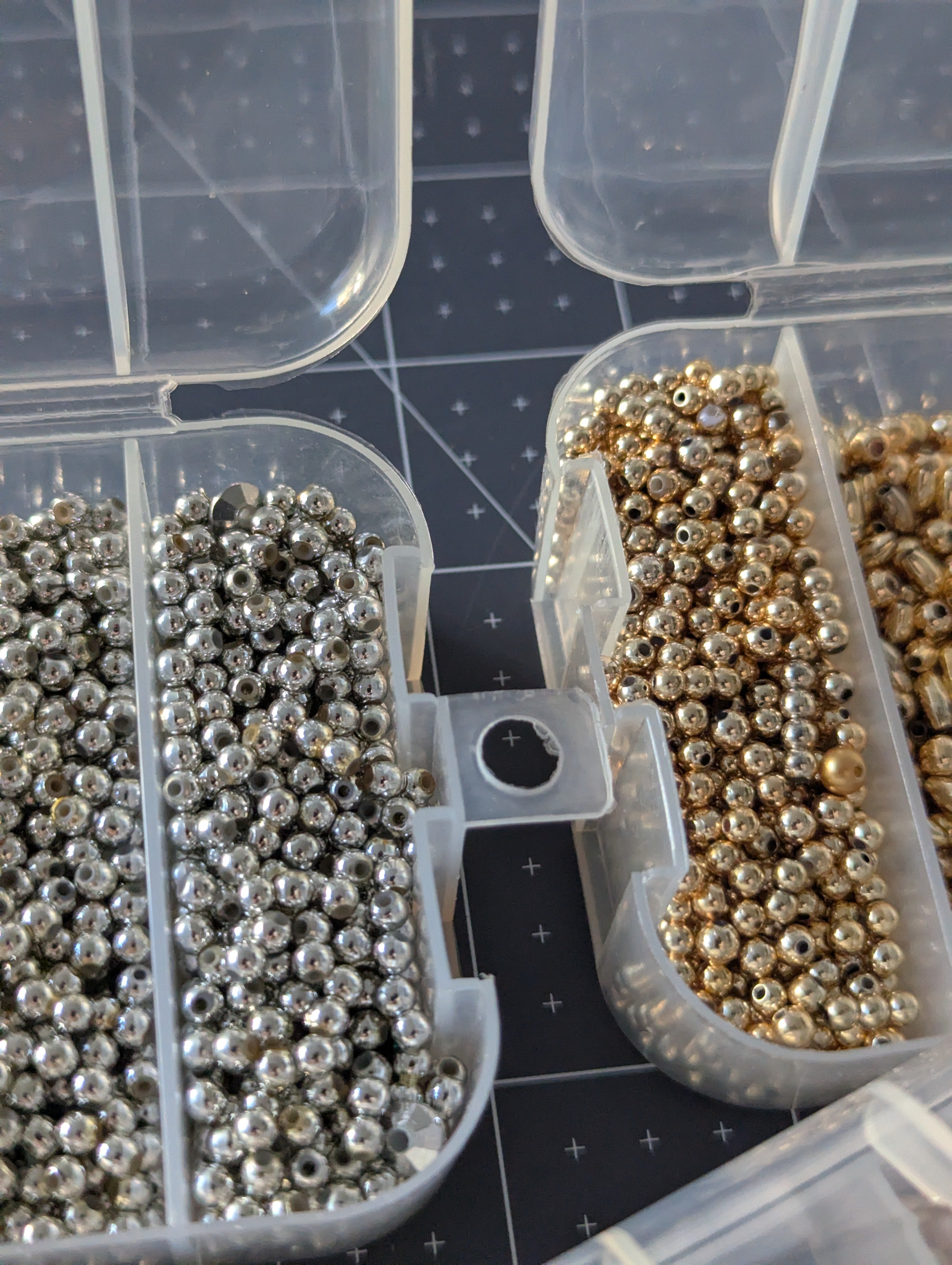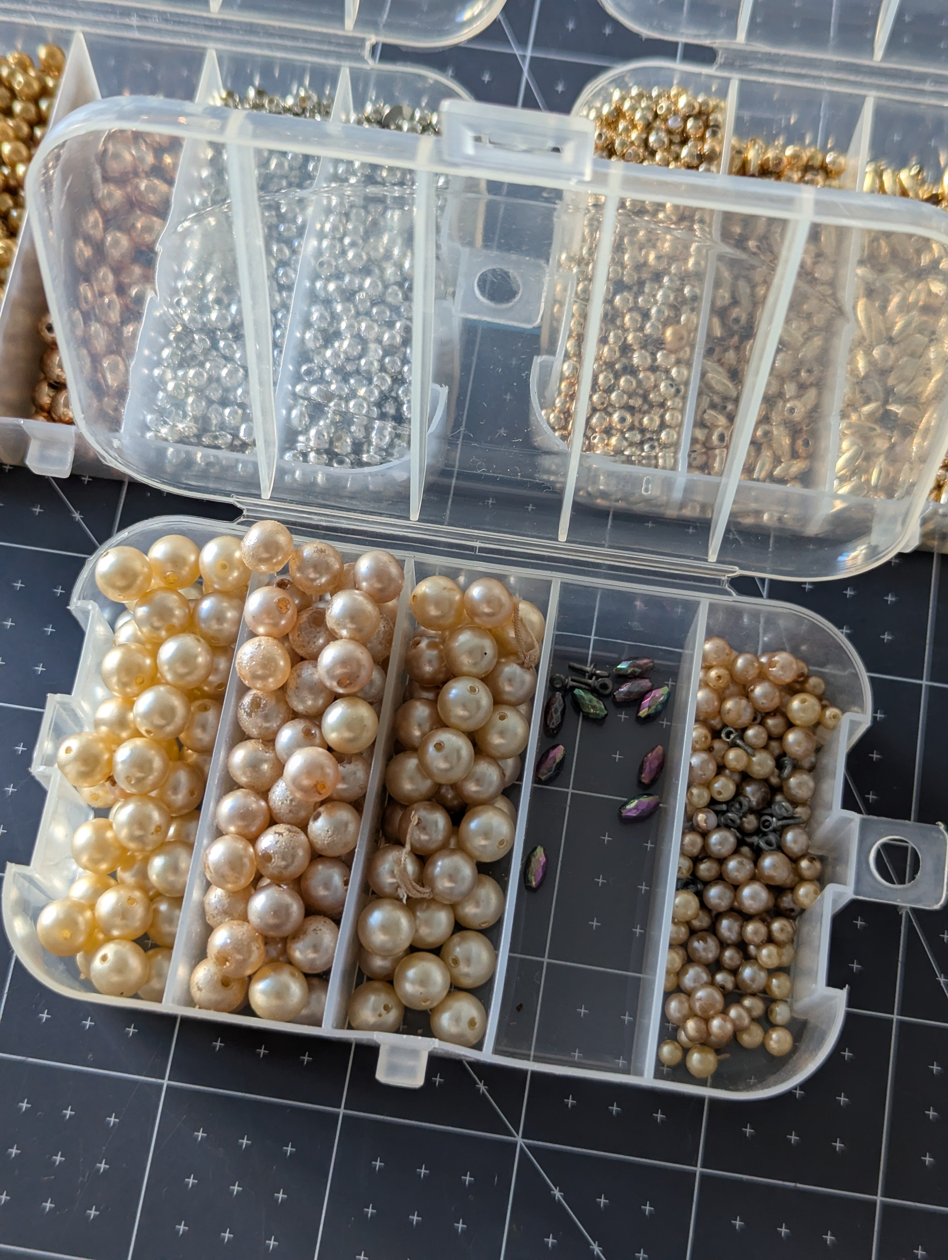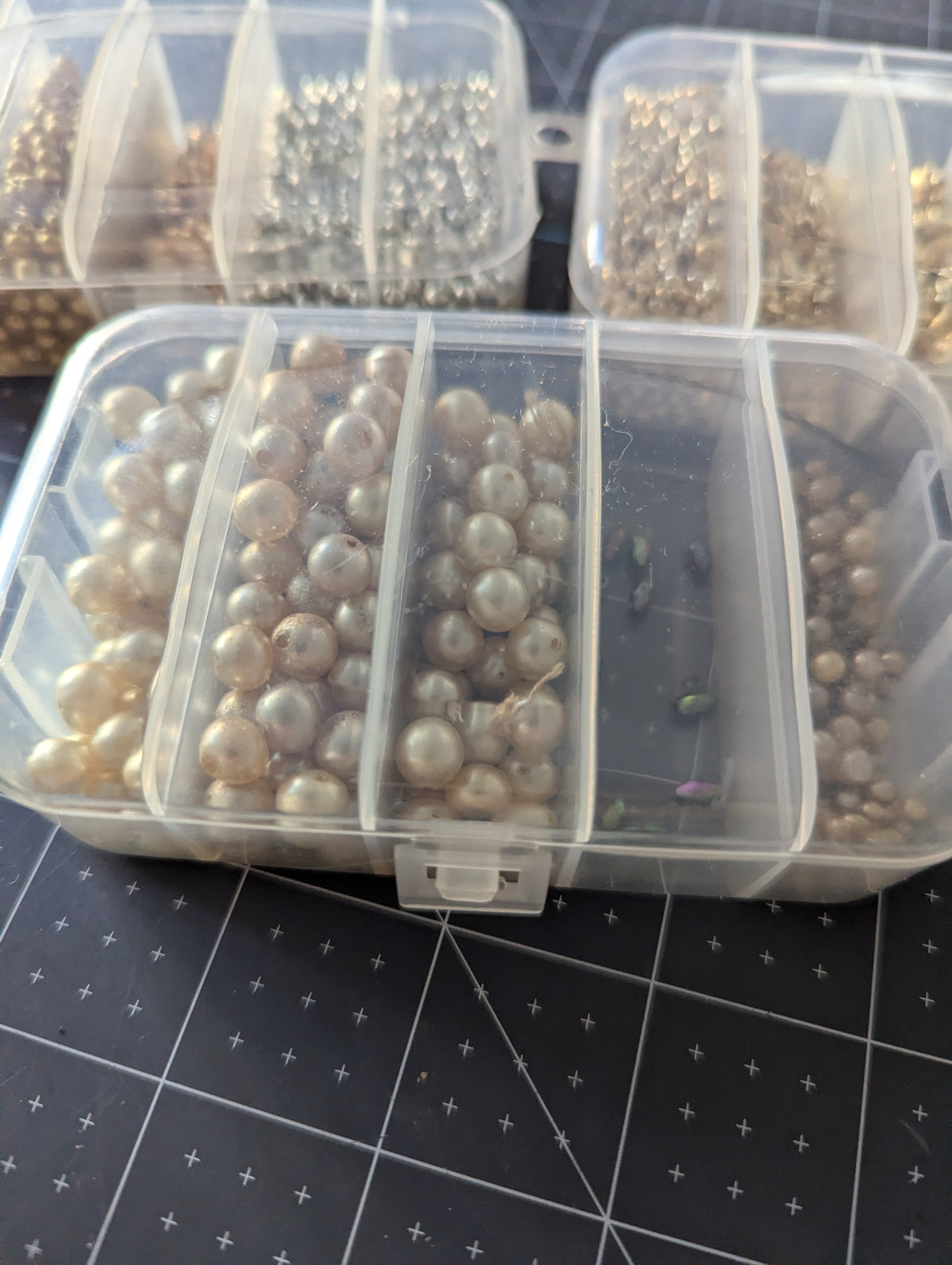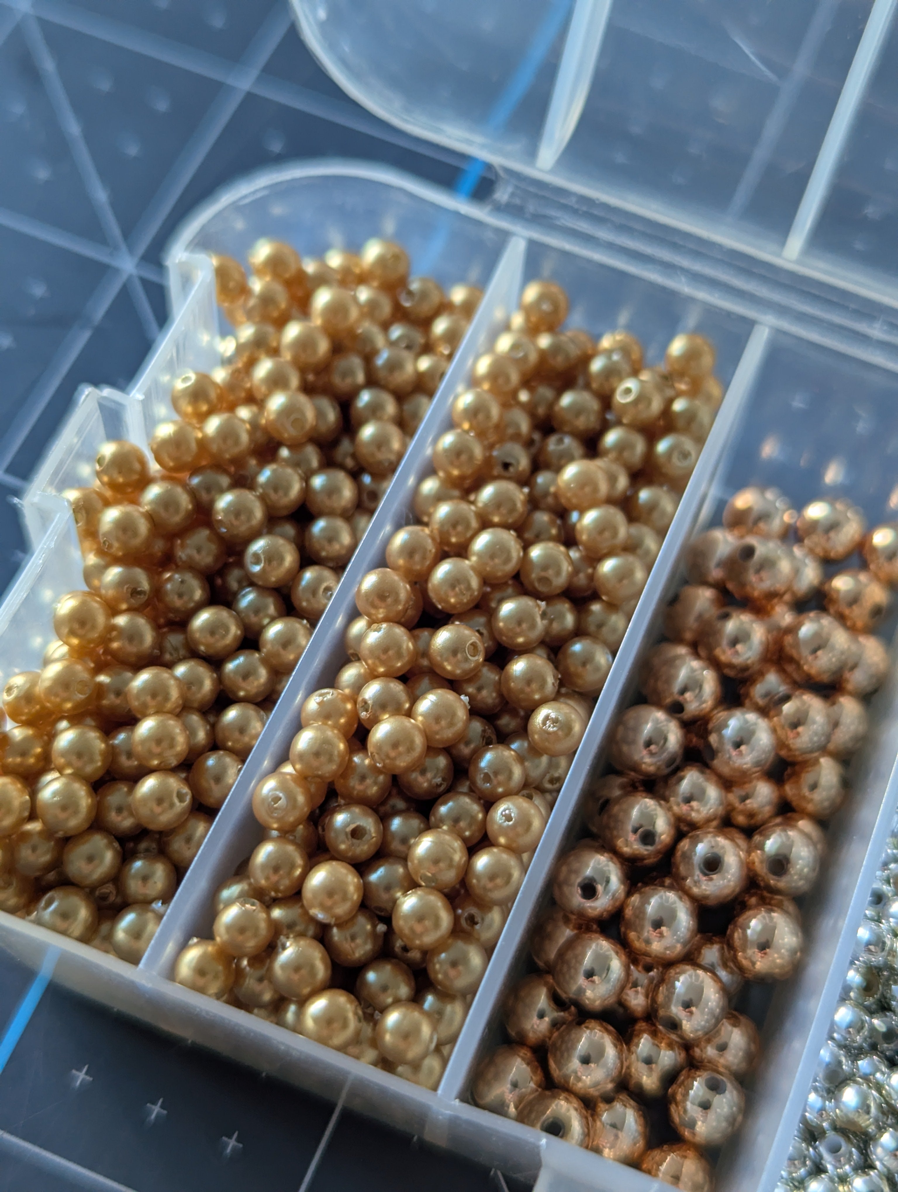 Three Containers with a Mixture of Faux Metal & Faux Pearl Beads