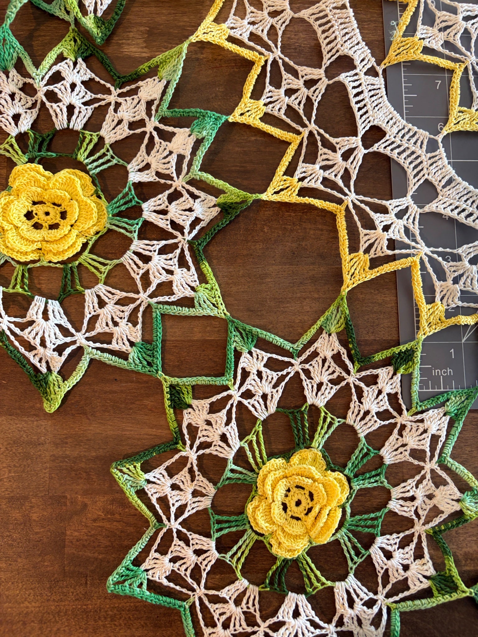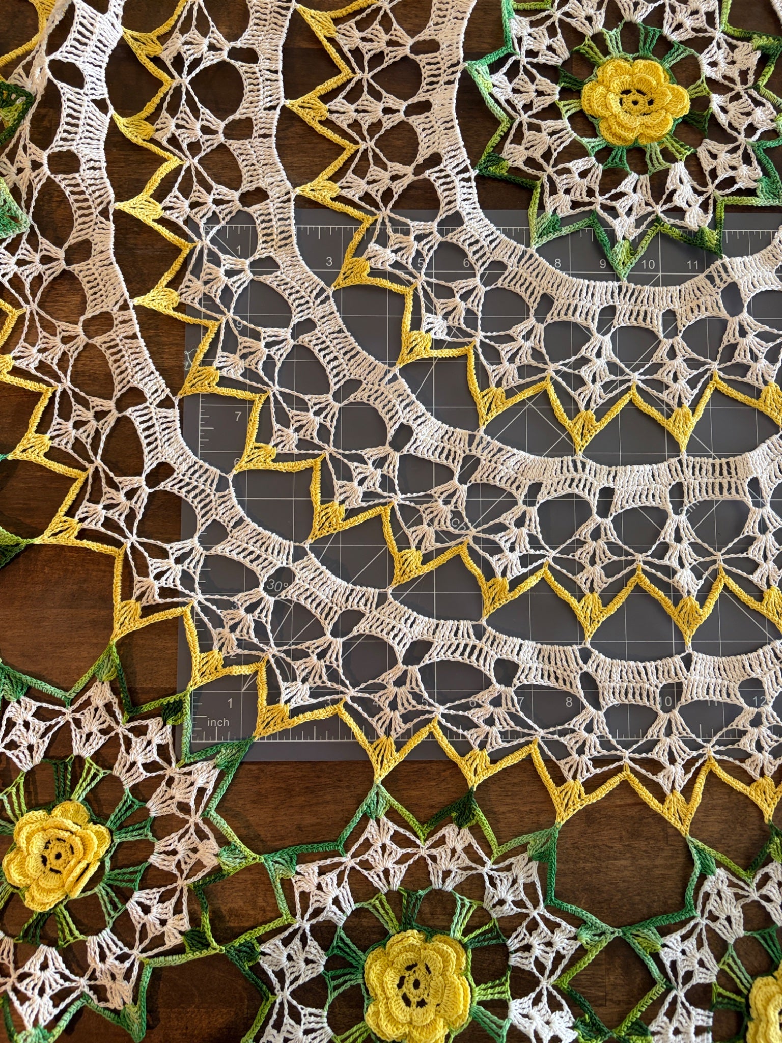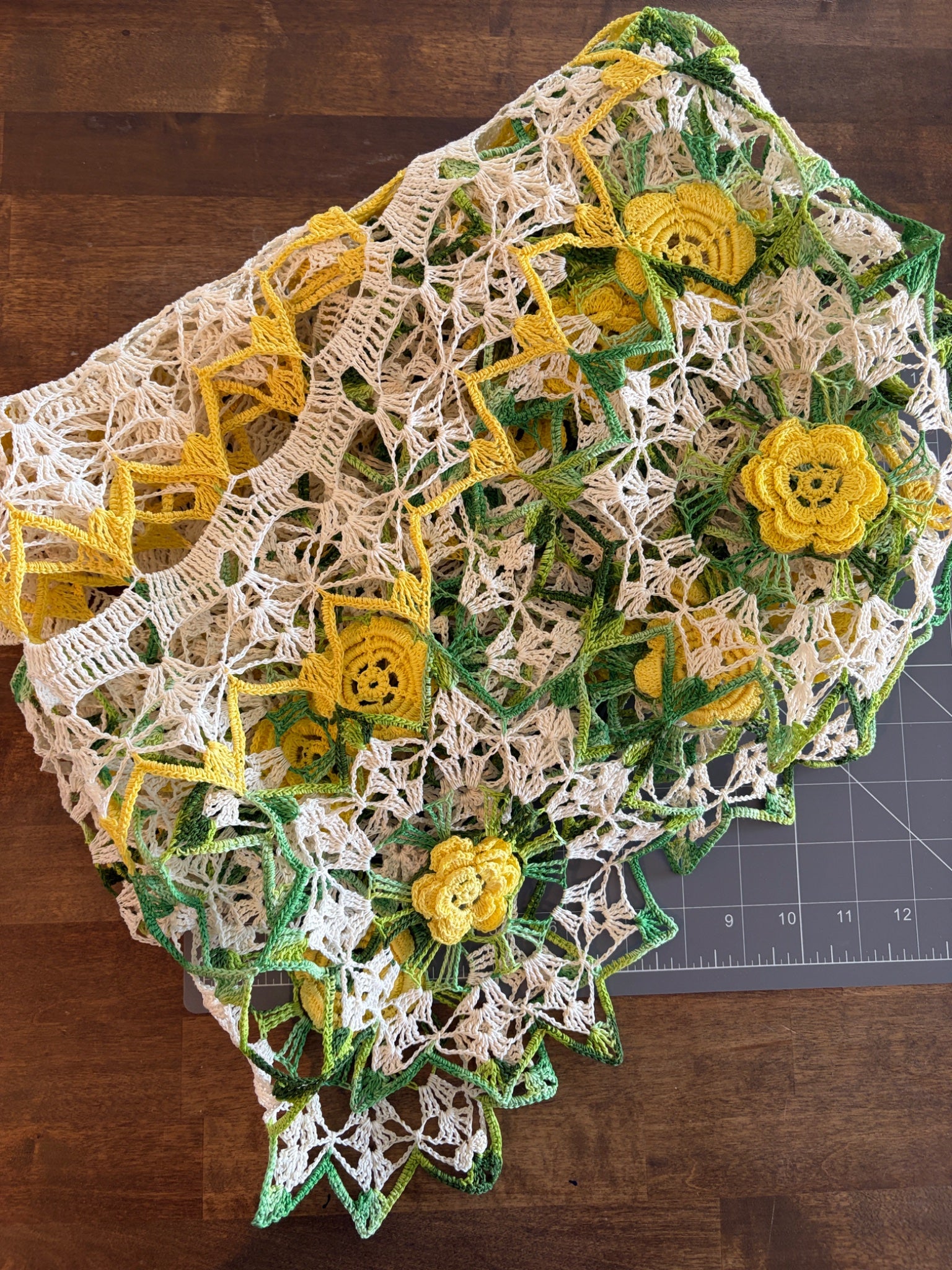Very Large Green, Yellow, and Cream Floral Doily
