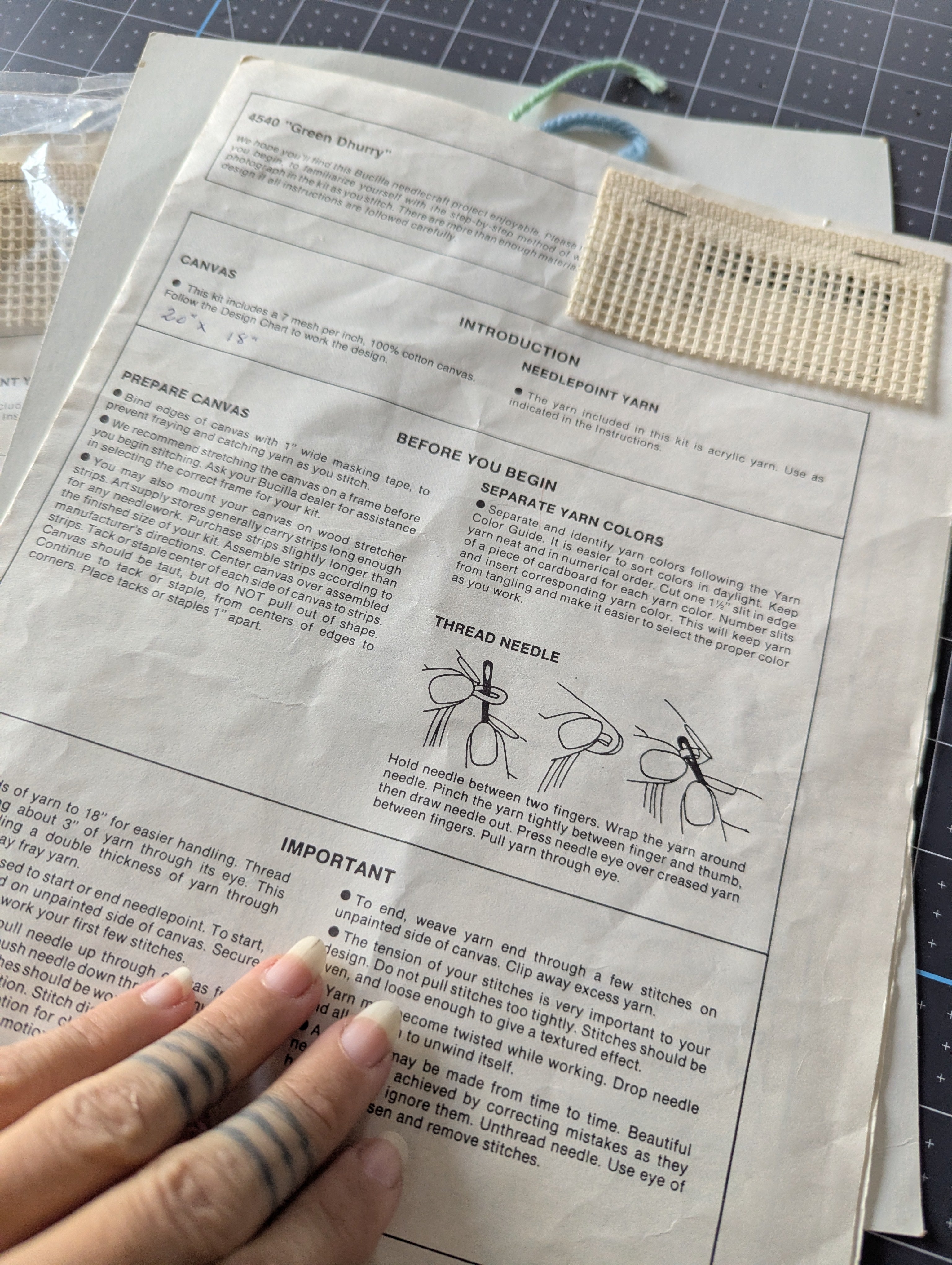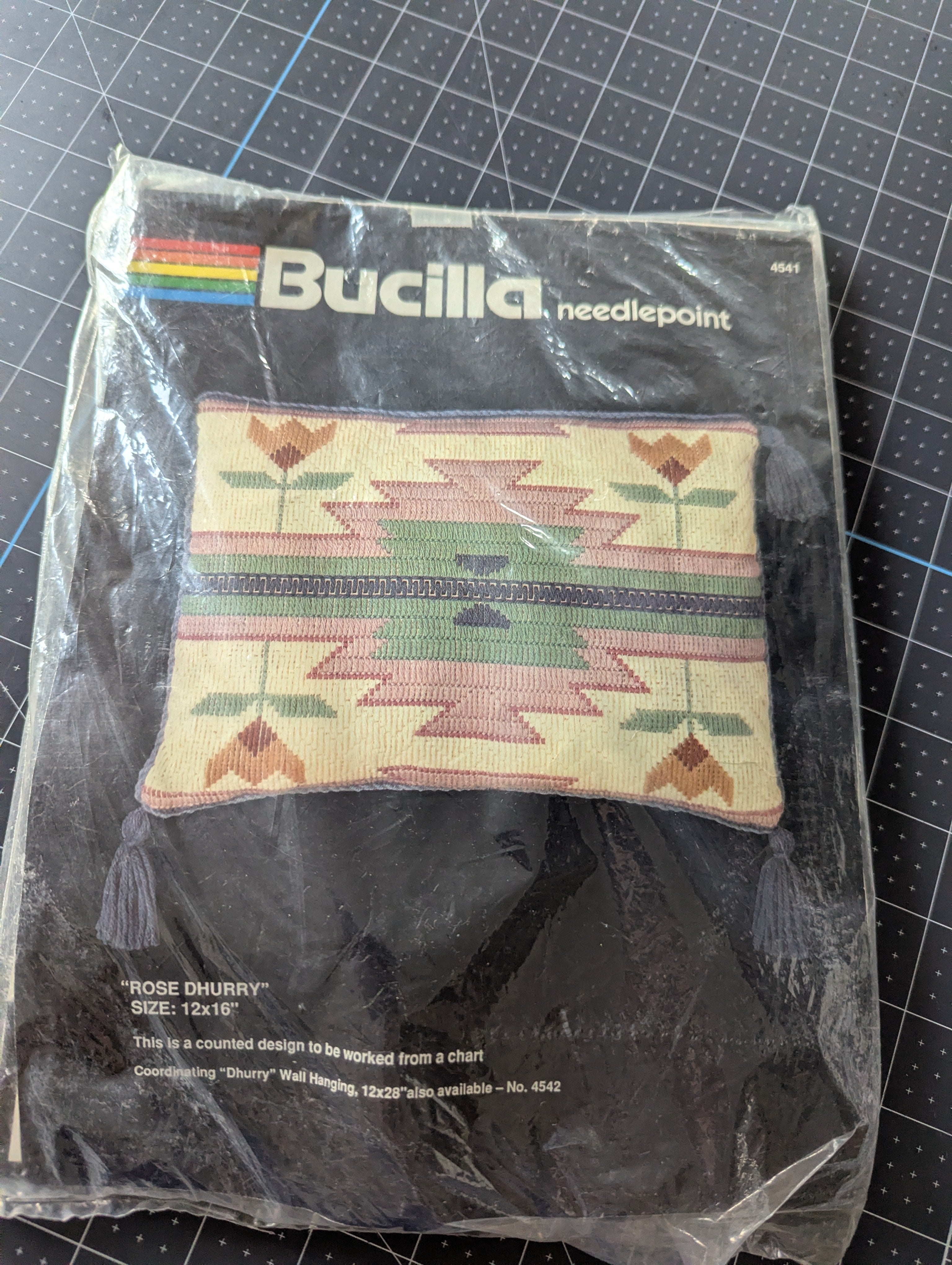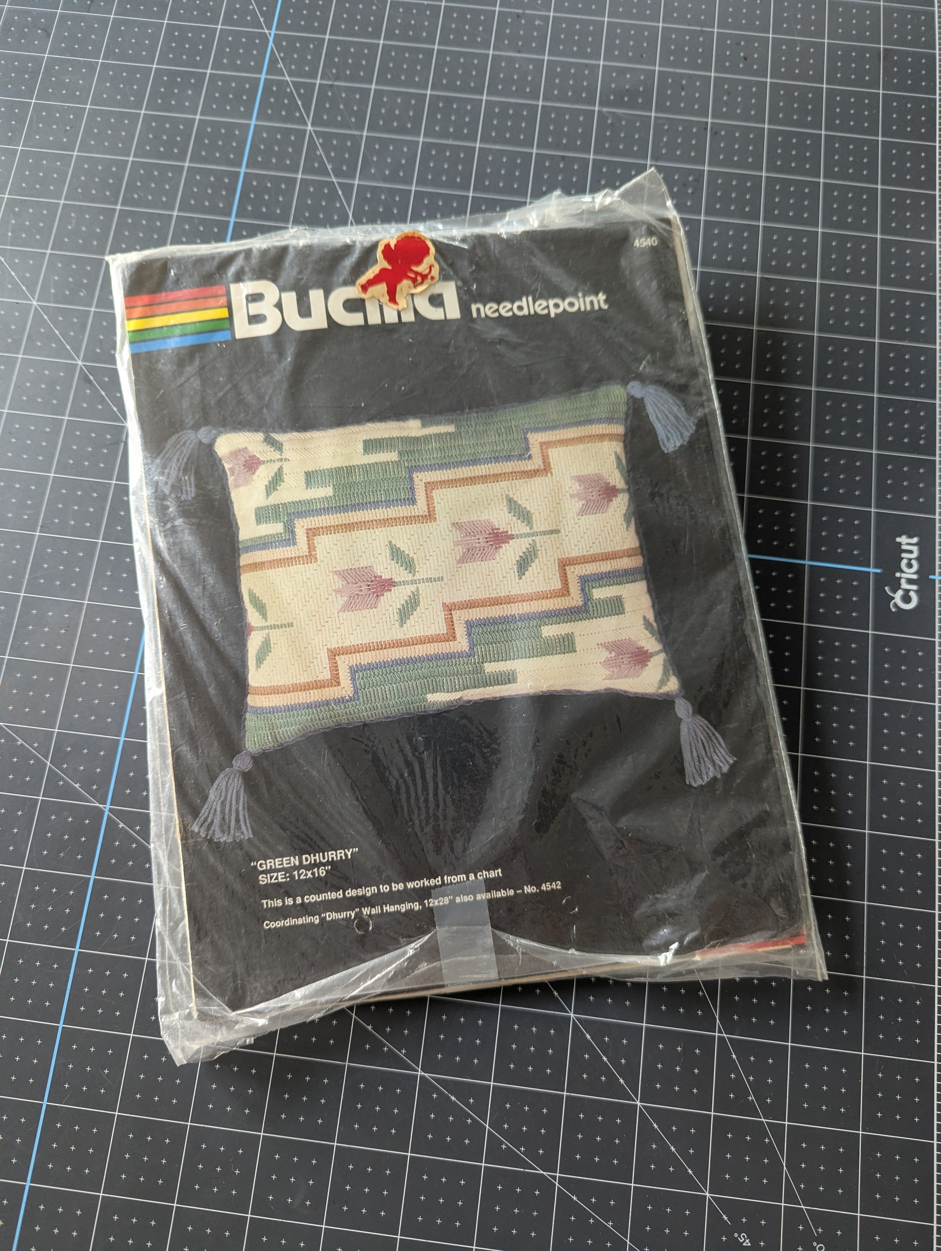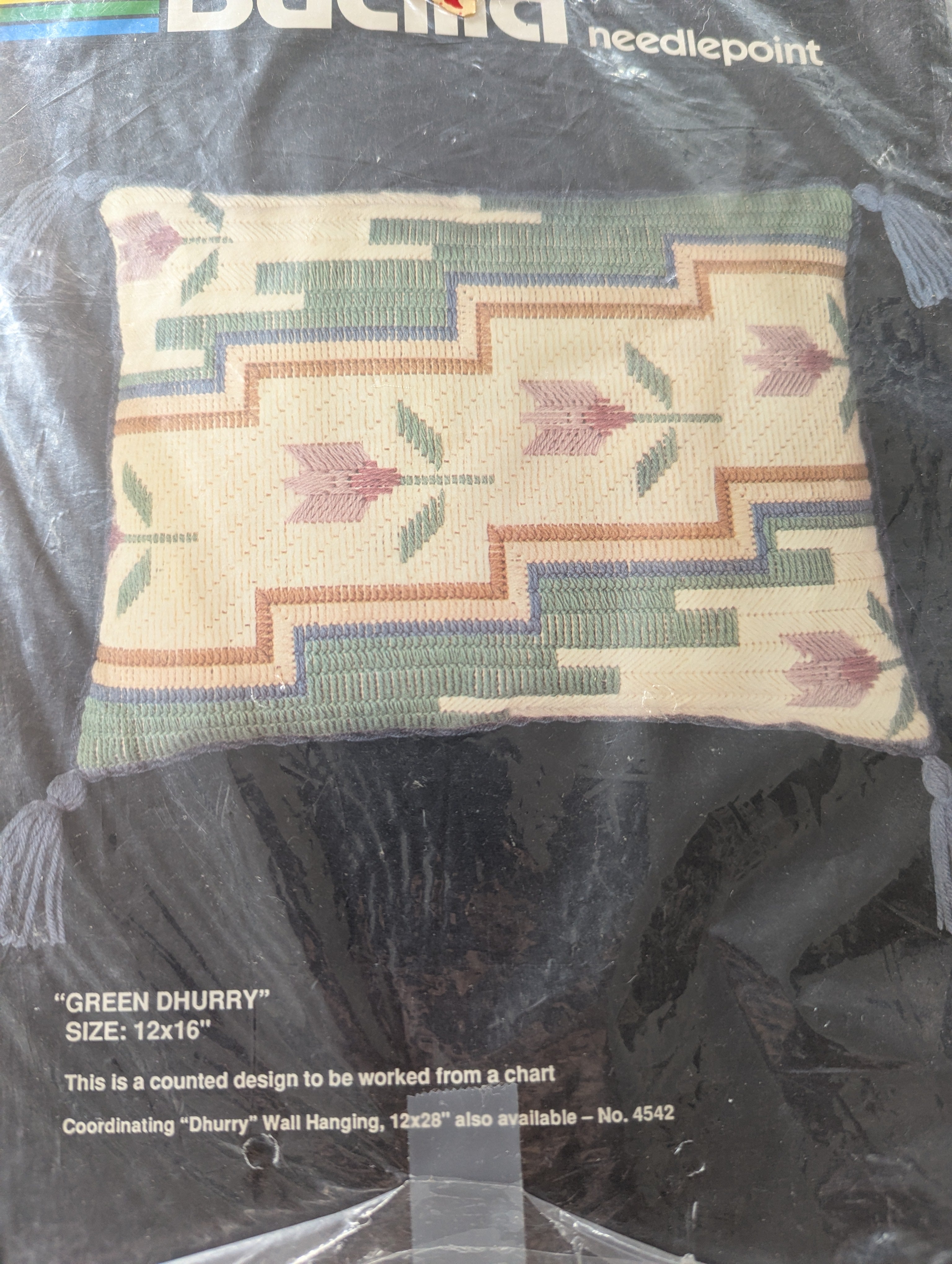 Vintage Bucilla Needlepoint "Green Dhurry" Pillow Pattern
