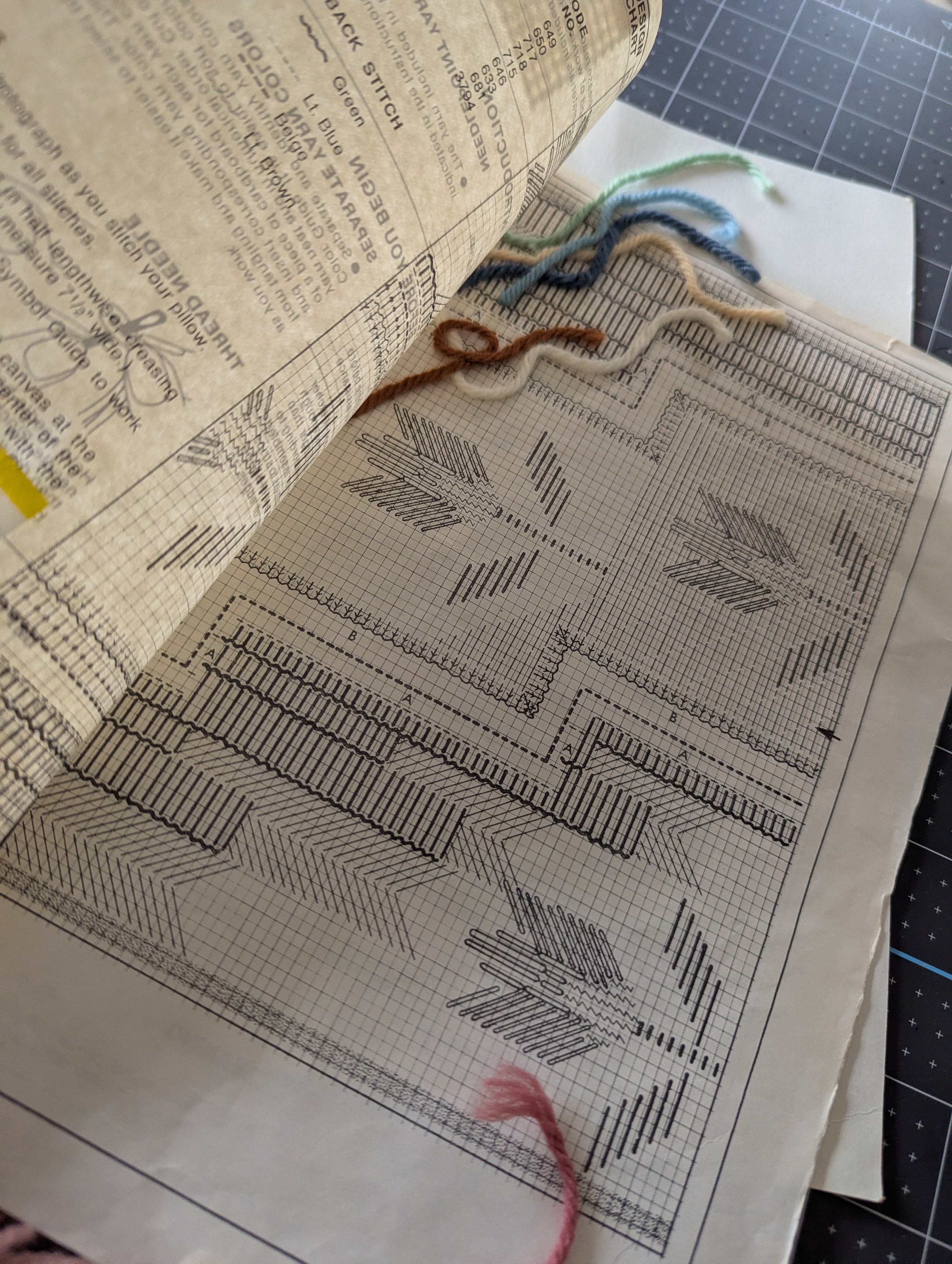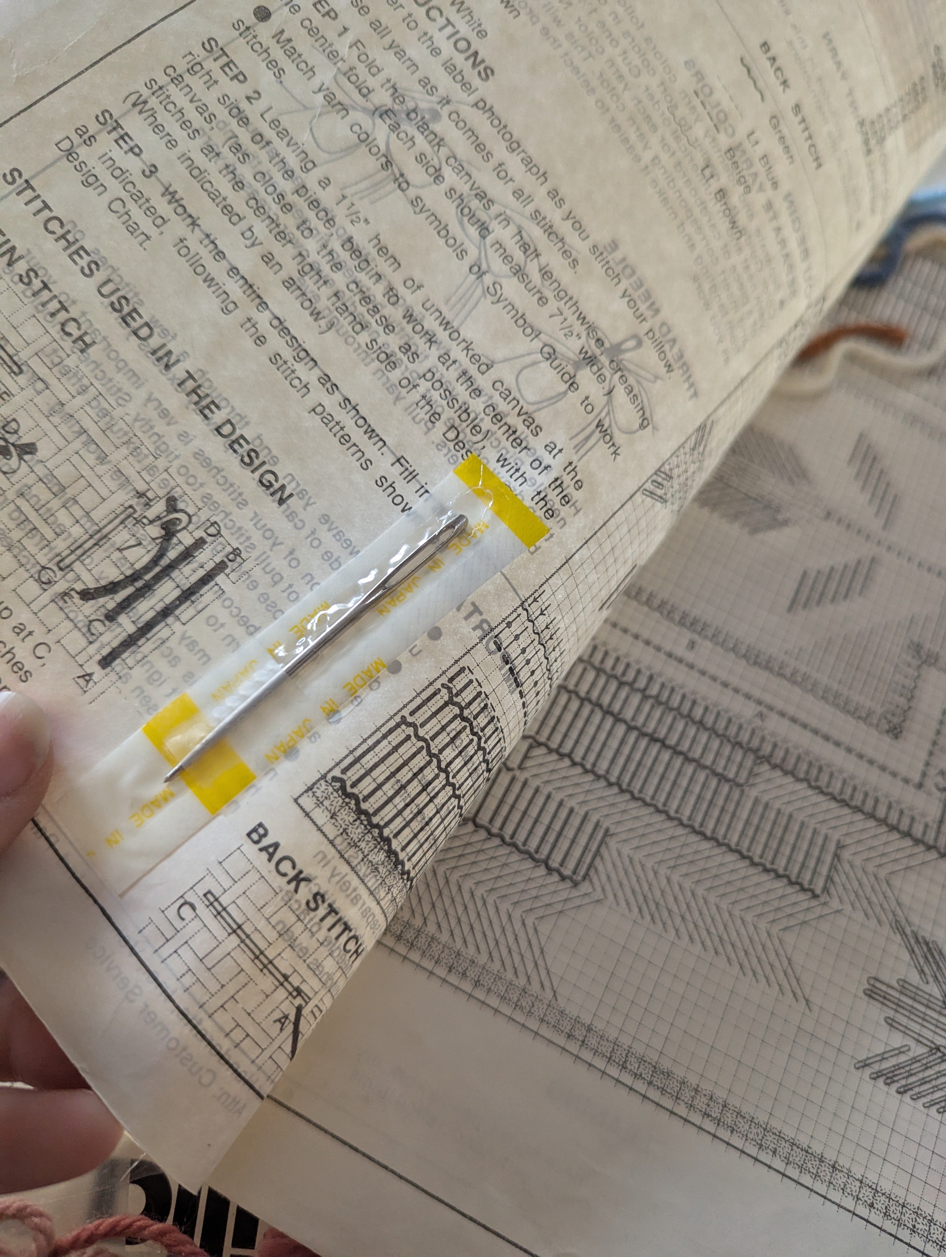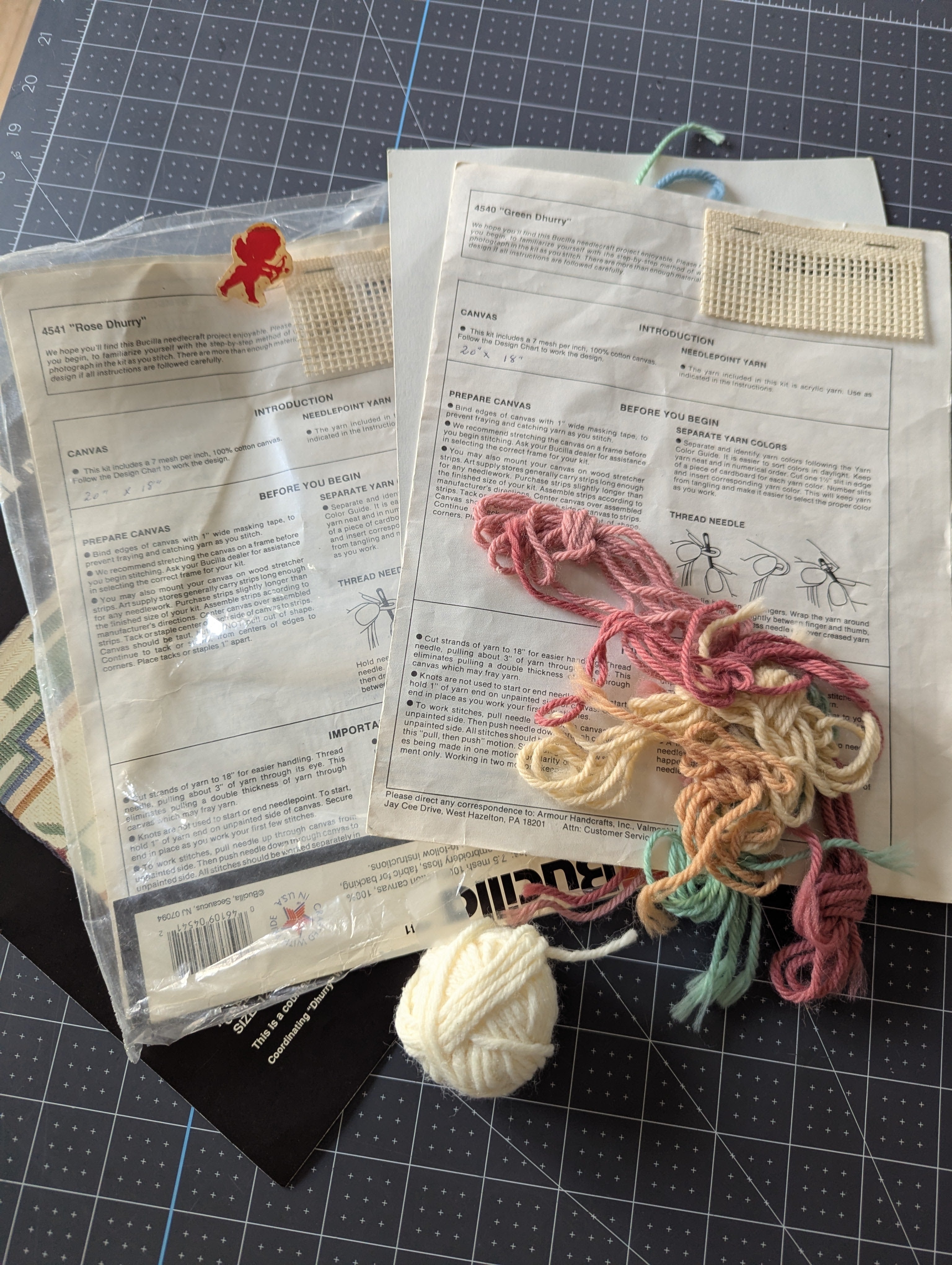 Note: This is NOT a complete kit. Includes some leftover yarn, pattern, needle, and inspiration photo. Not all material is present. The textile is not included. Additional supplies will be needed to complete the piece.