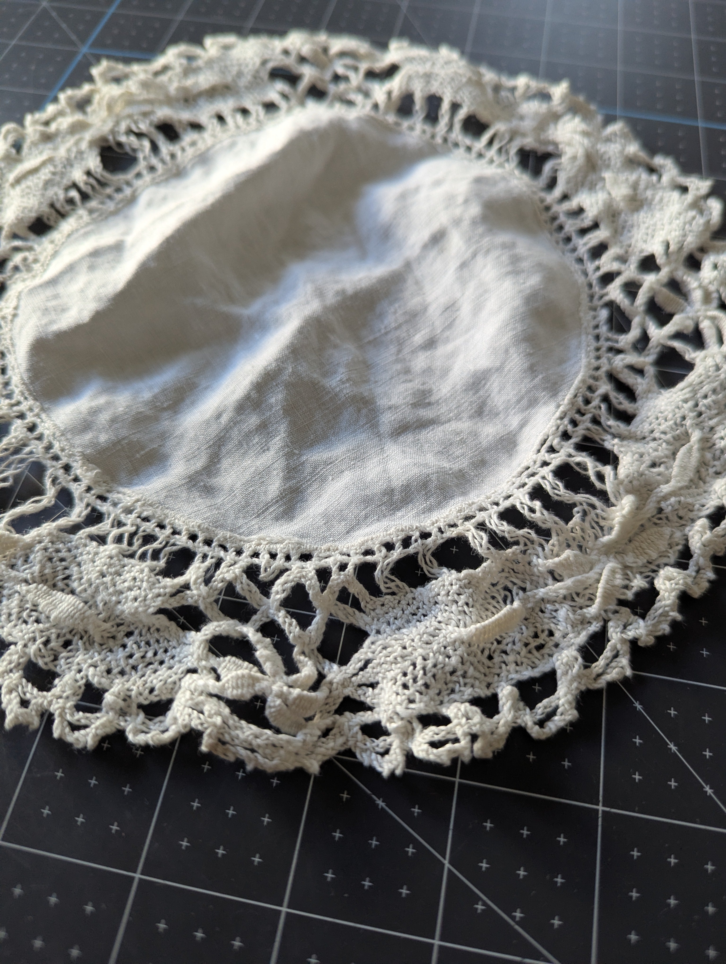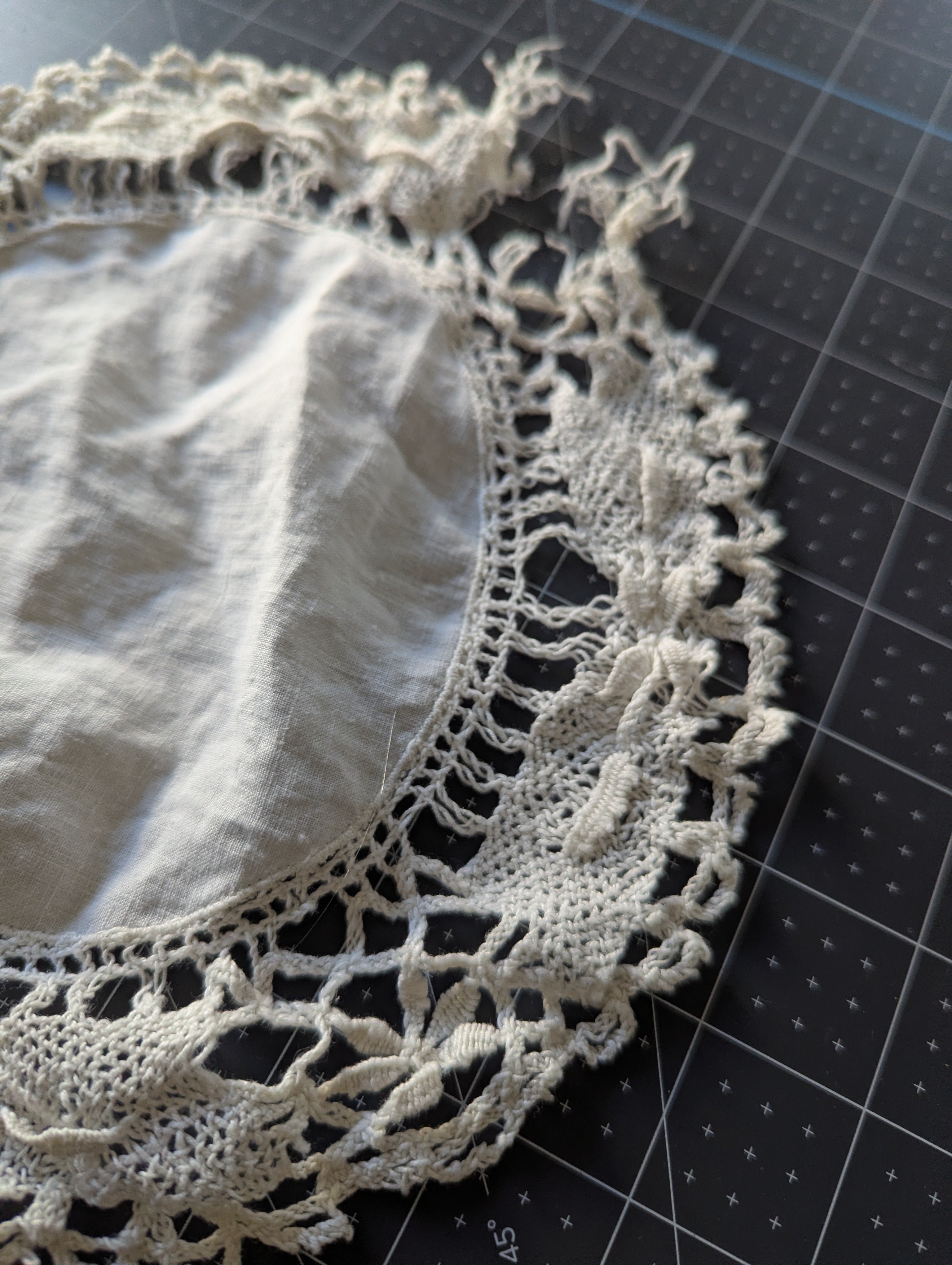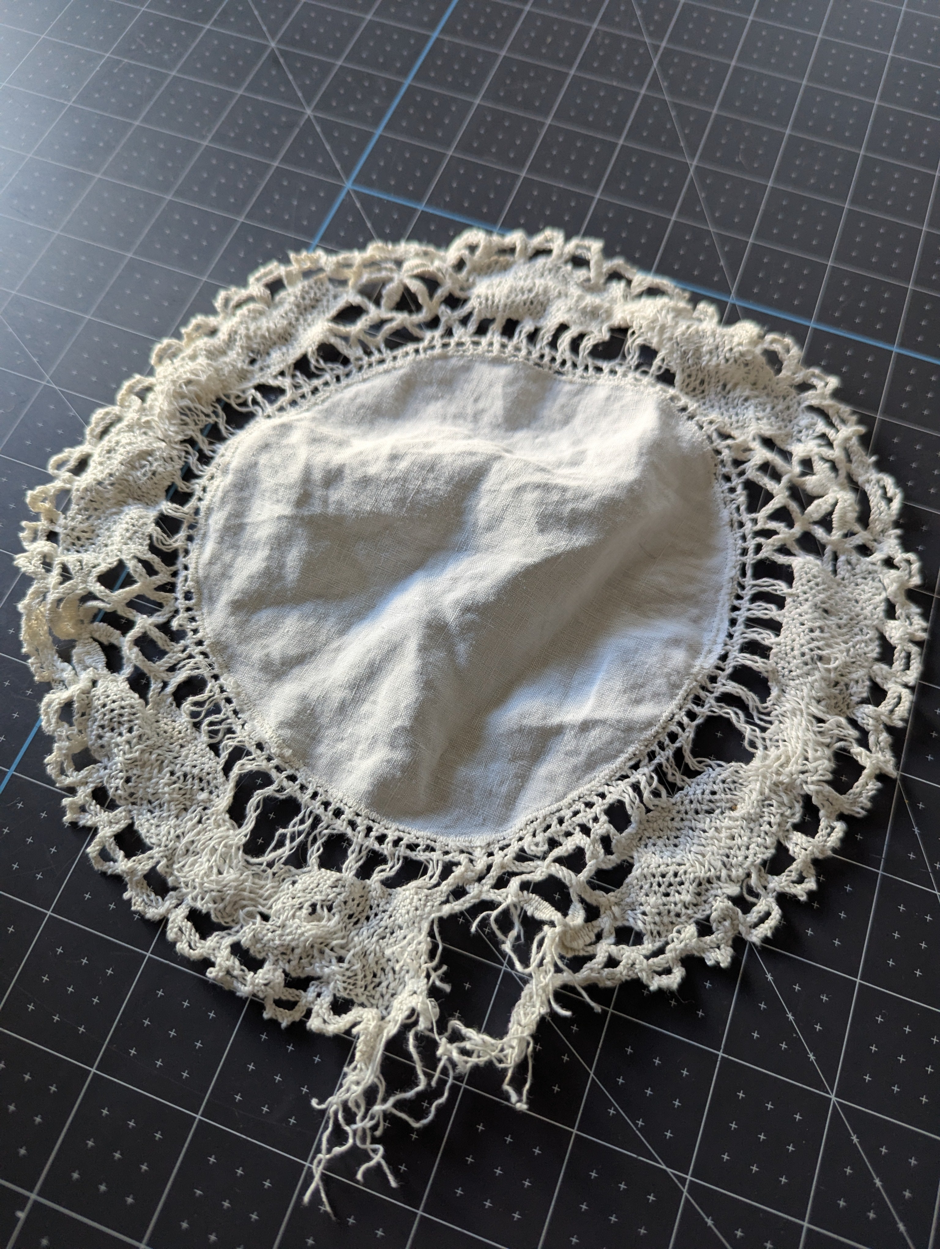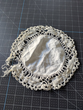 This has some age related wear and damage, and may have a mildew smell. It was rescued from a wet bin and laundered and is clean.