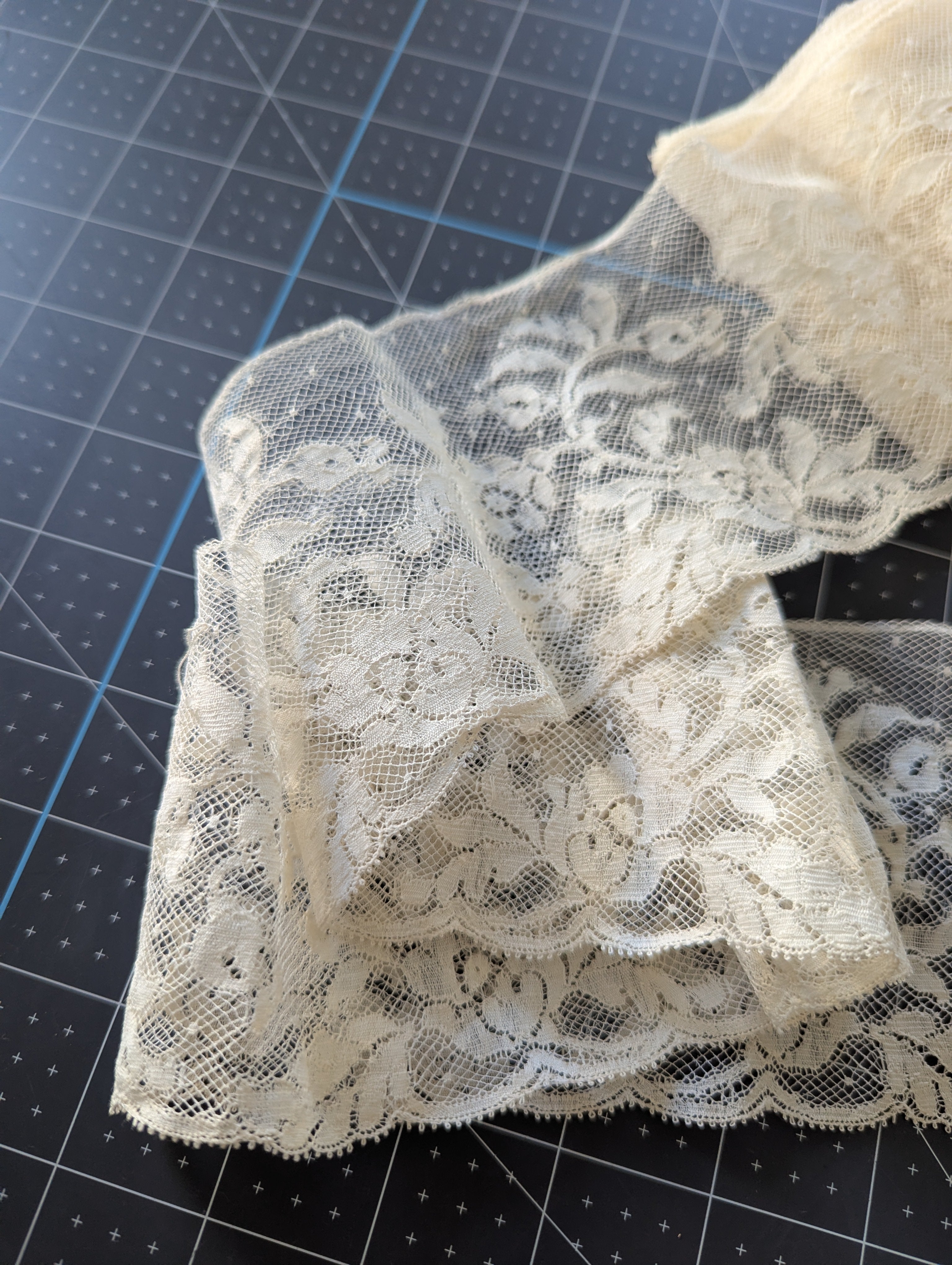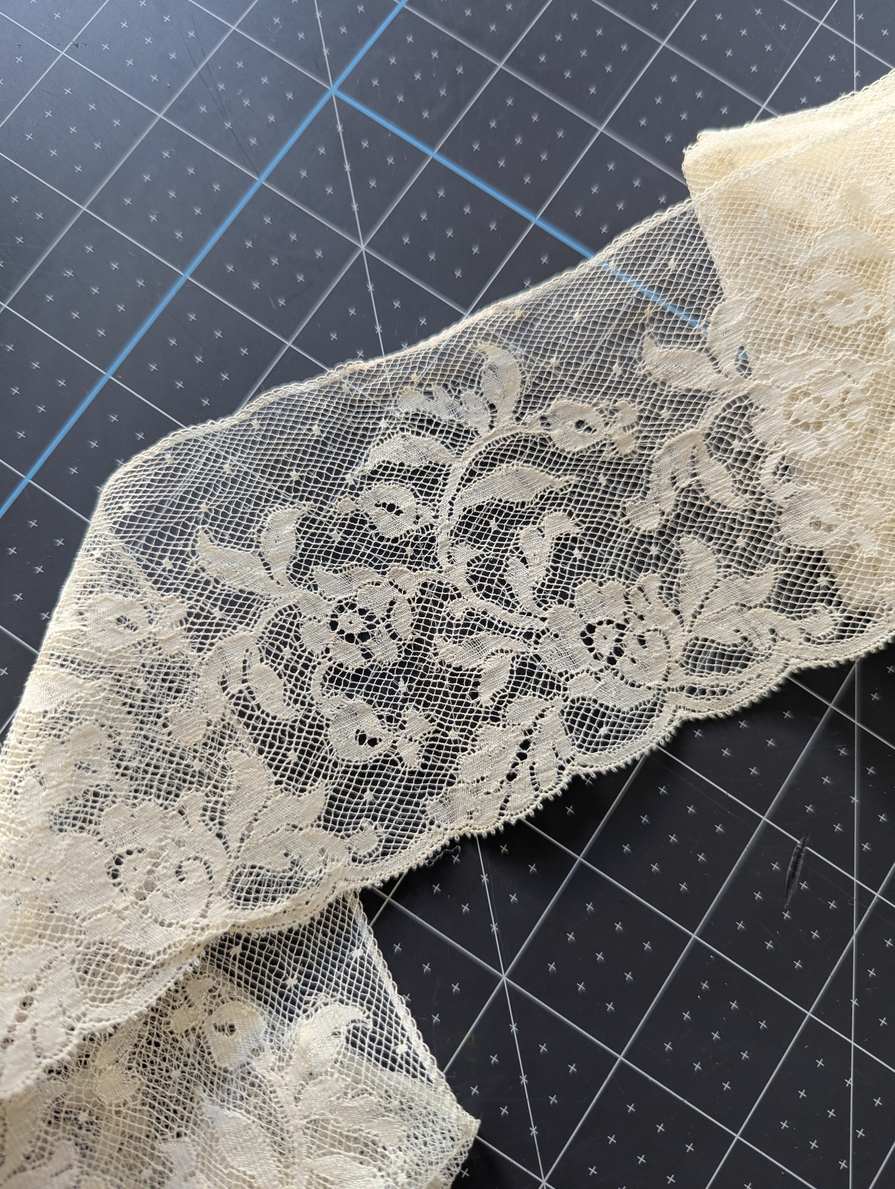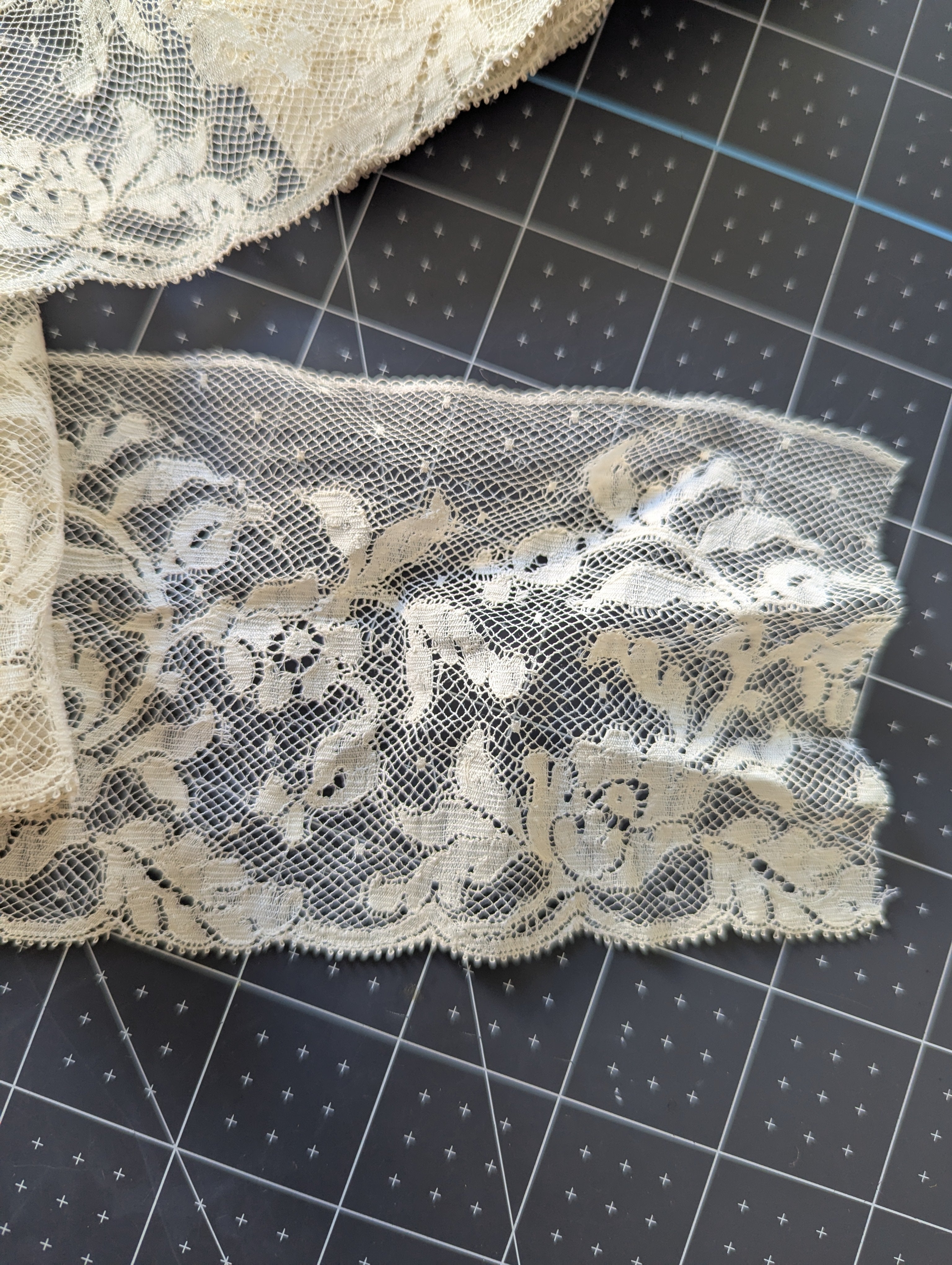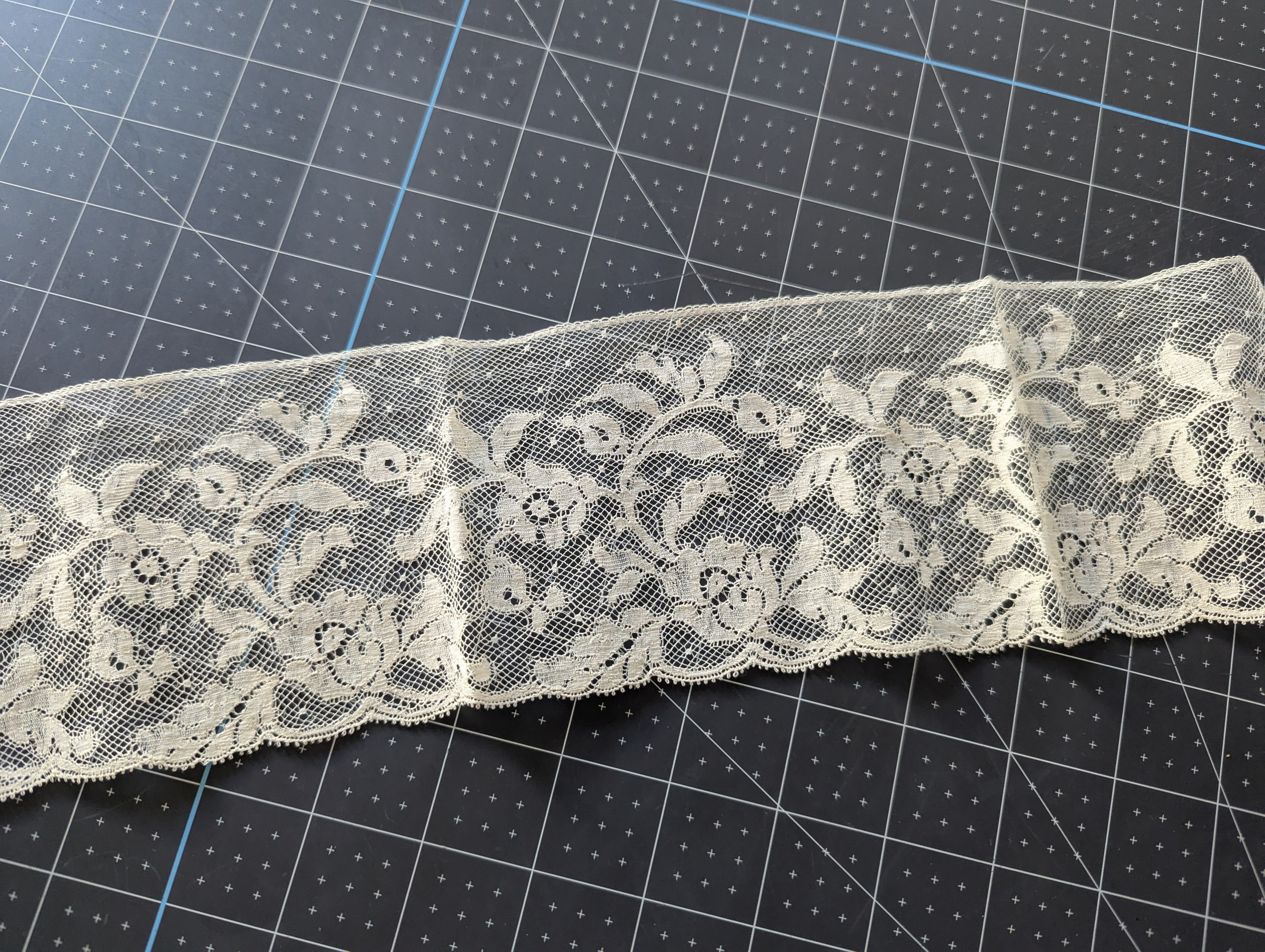 Lace is in great condition, measures 3.75-inches wide. Mat board is in inches for size reference. We suggest combining with other listings from our collection to get the best shipping rates.
