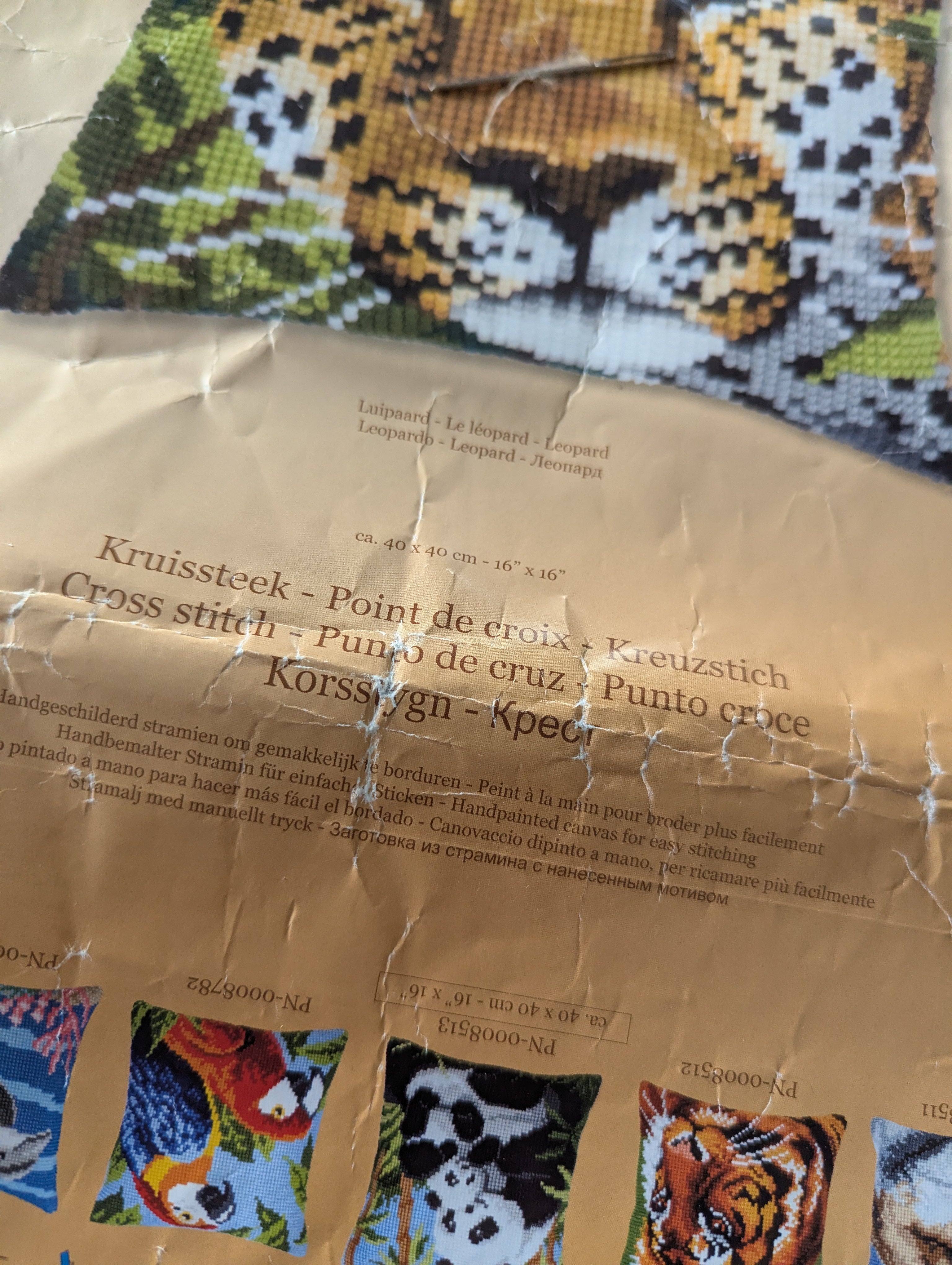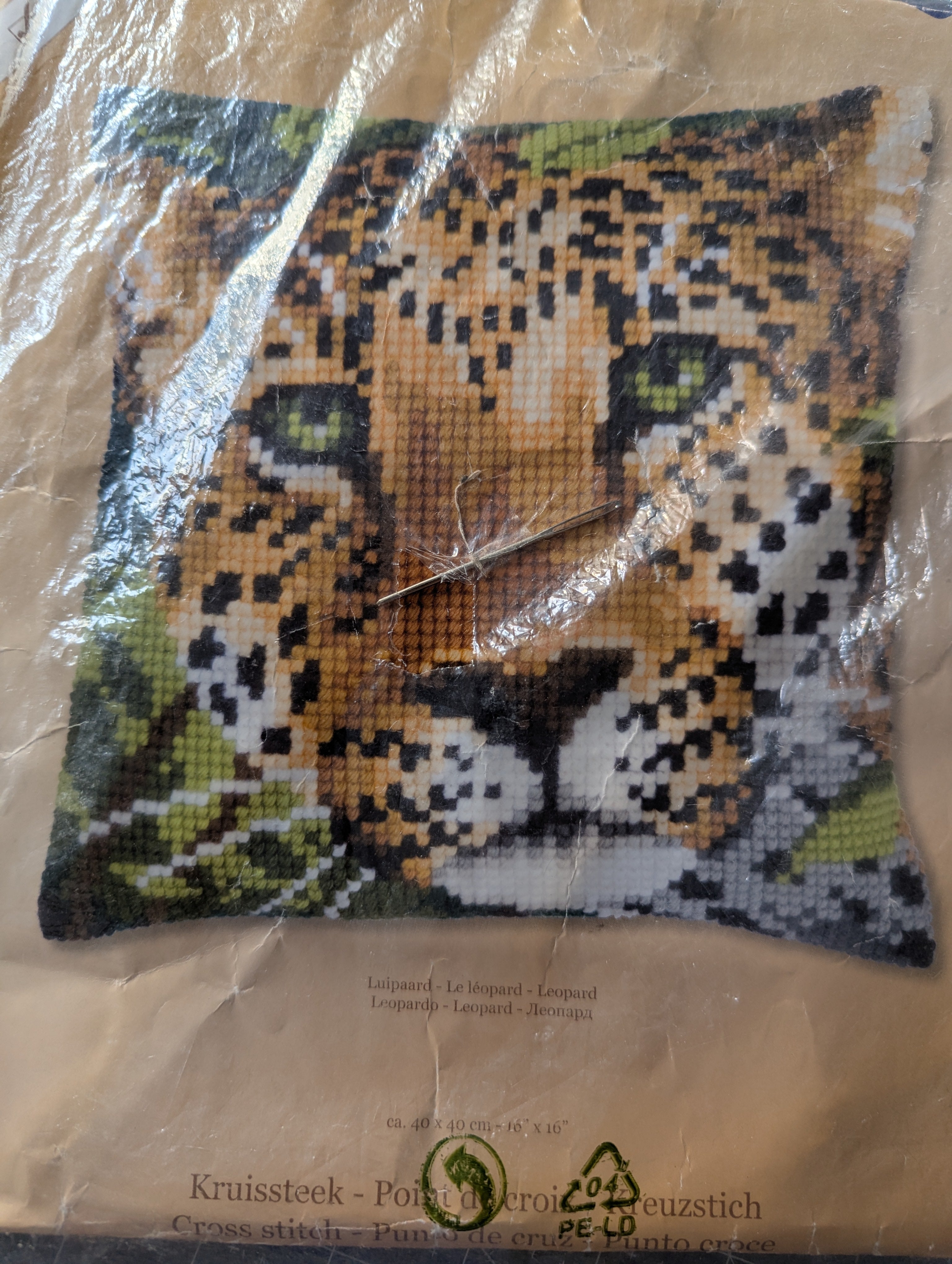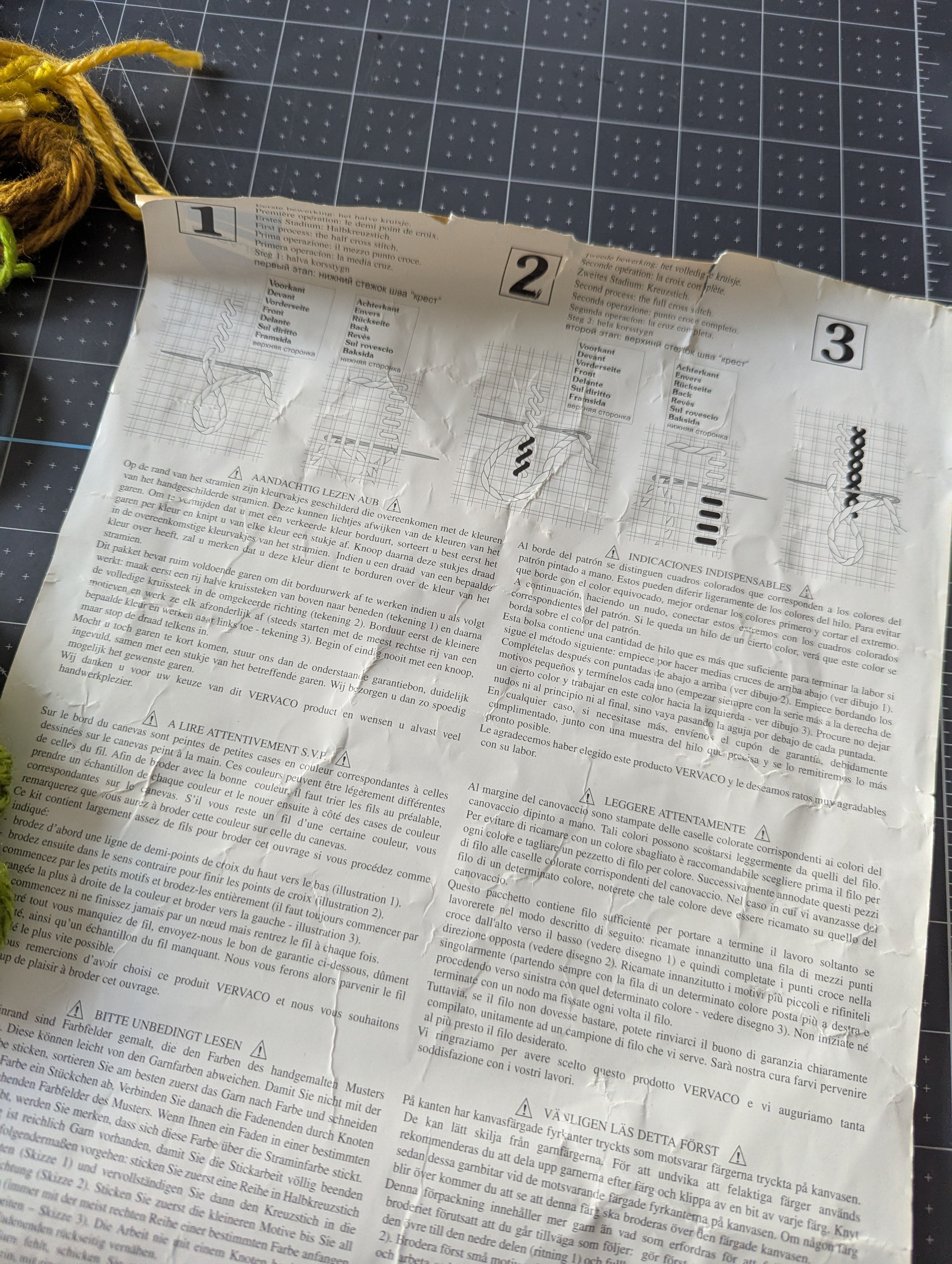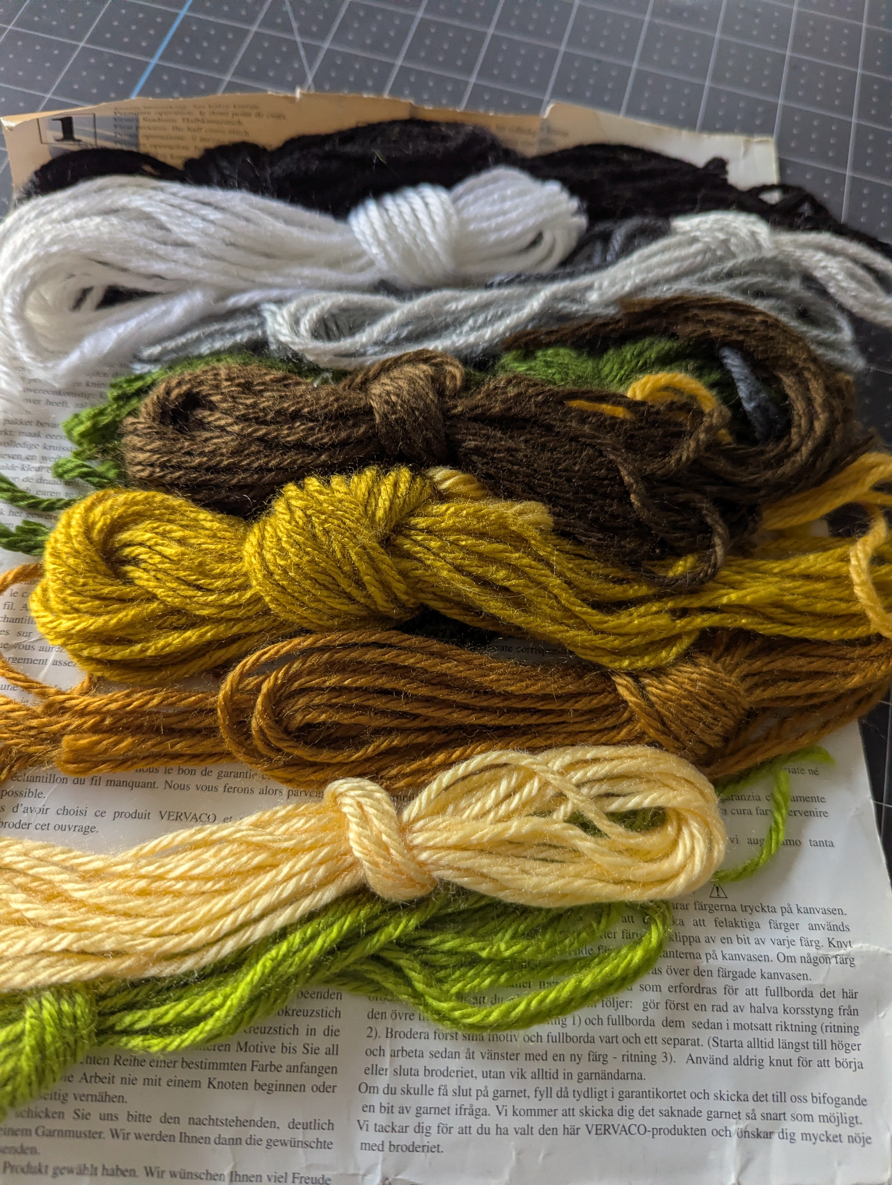 Note: This is NOT a complete kit. Includes some leftover yarn, and inspiration photo. Instructions on reverse are not in English. Unclear if all necessary yarn is present. The textile is not included. Additional supplies will be needed to complete the piece.
