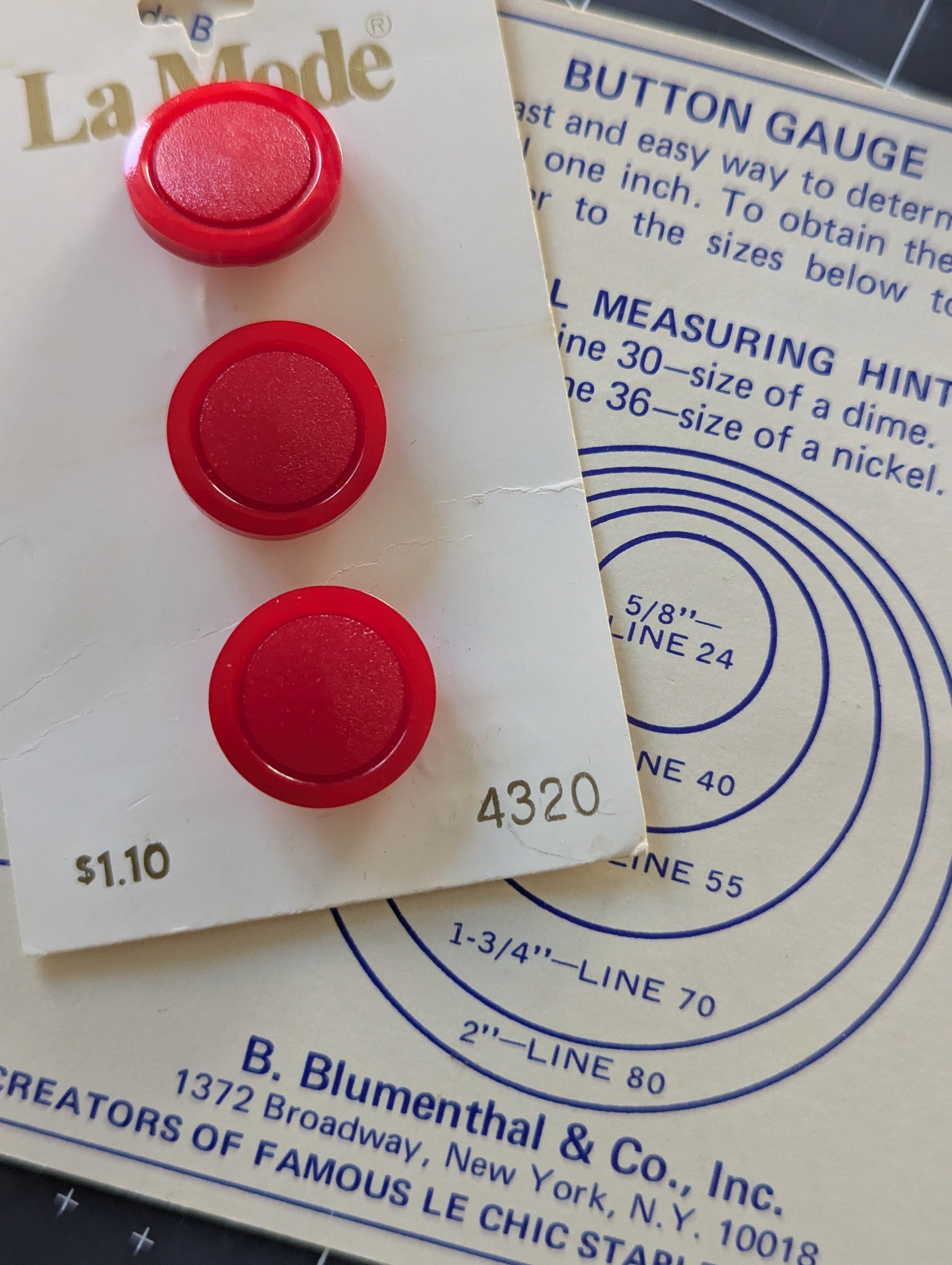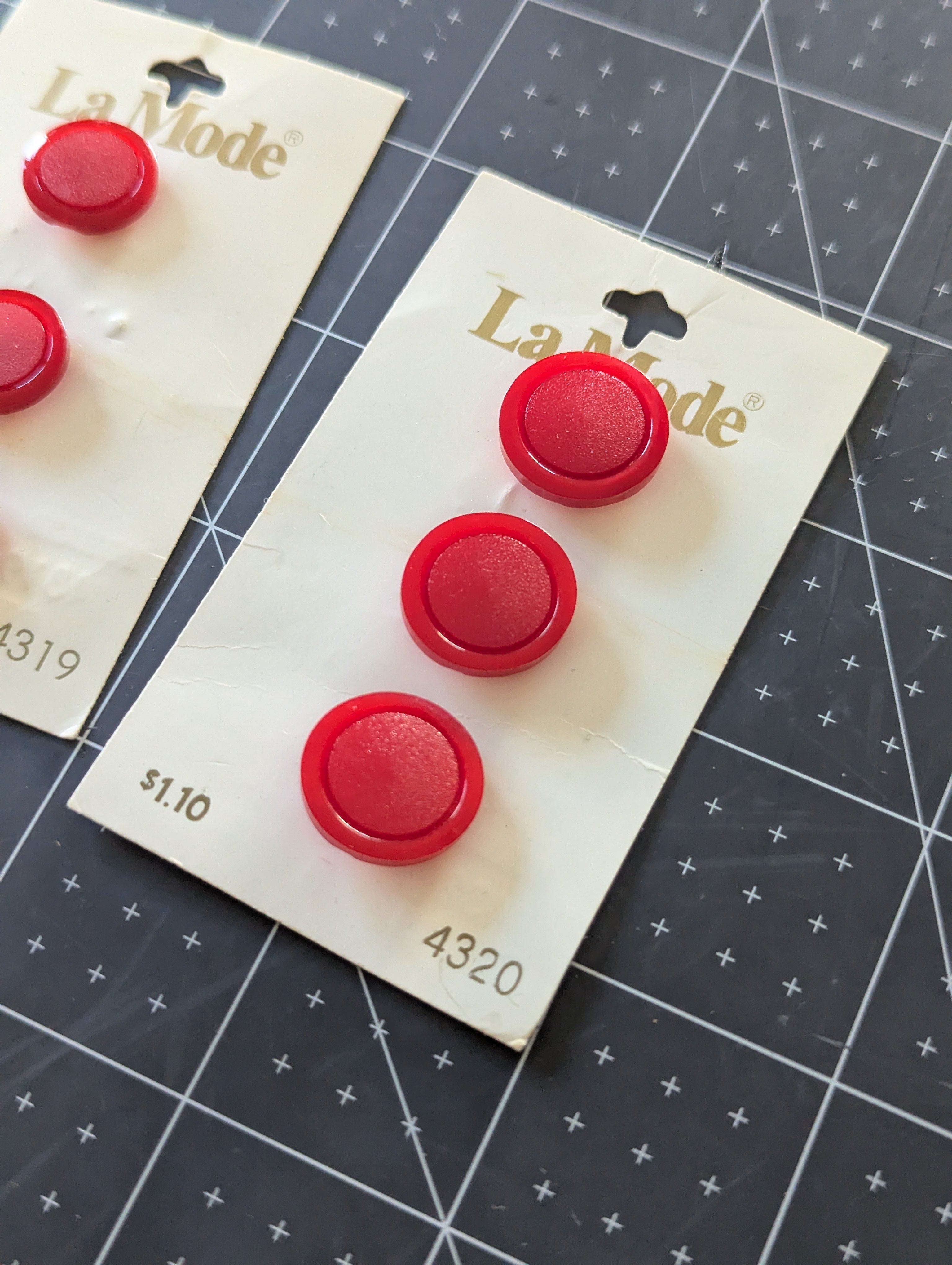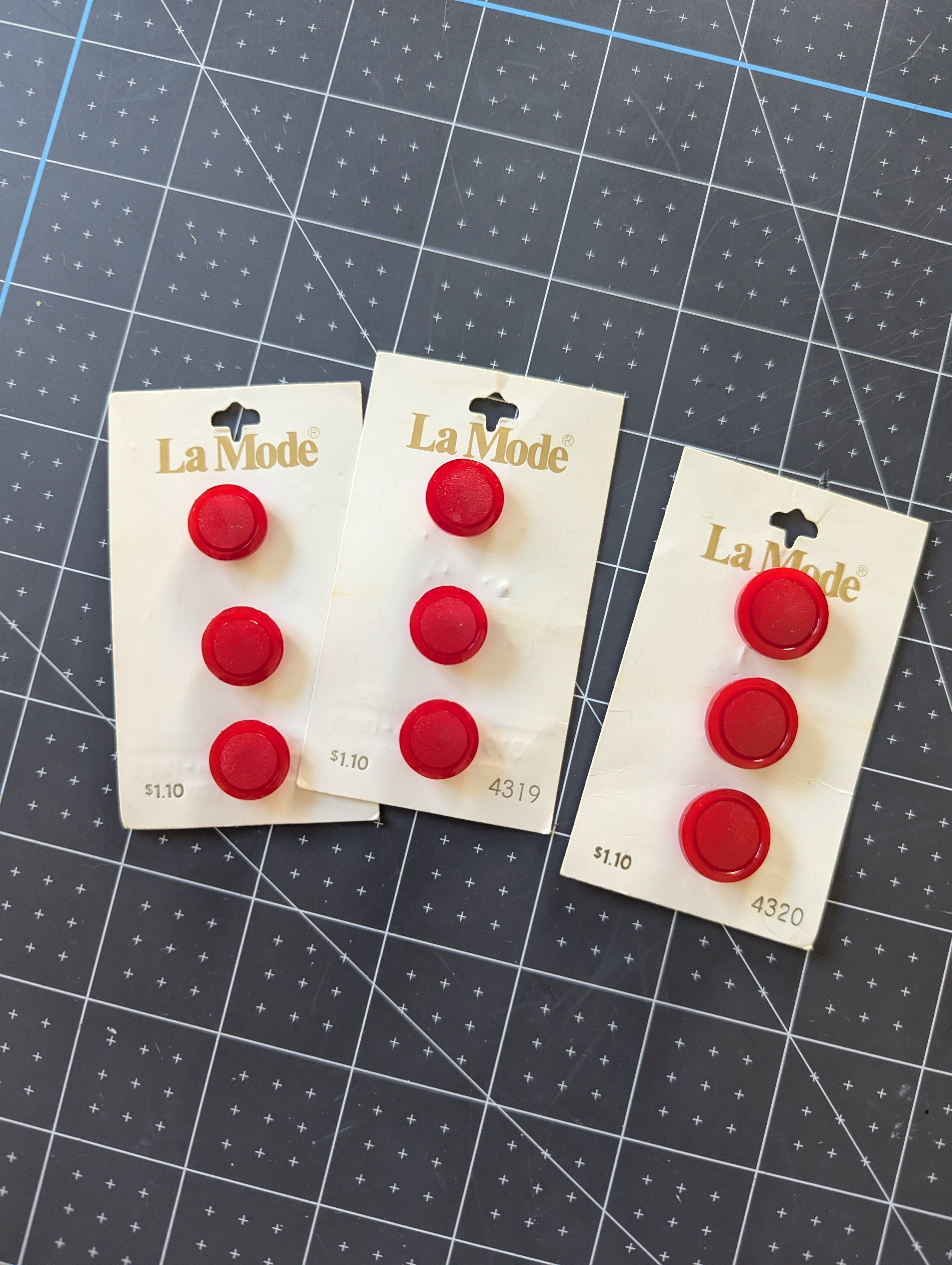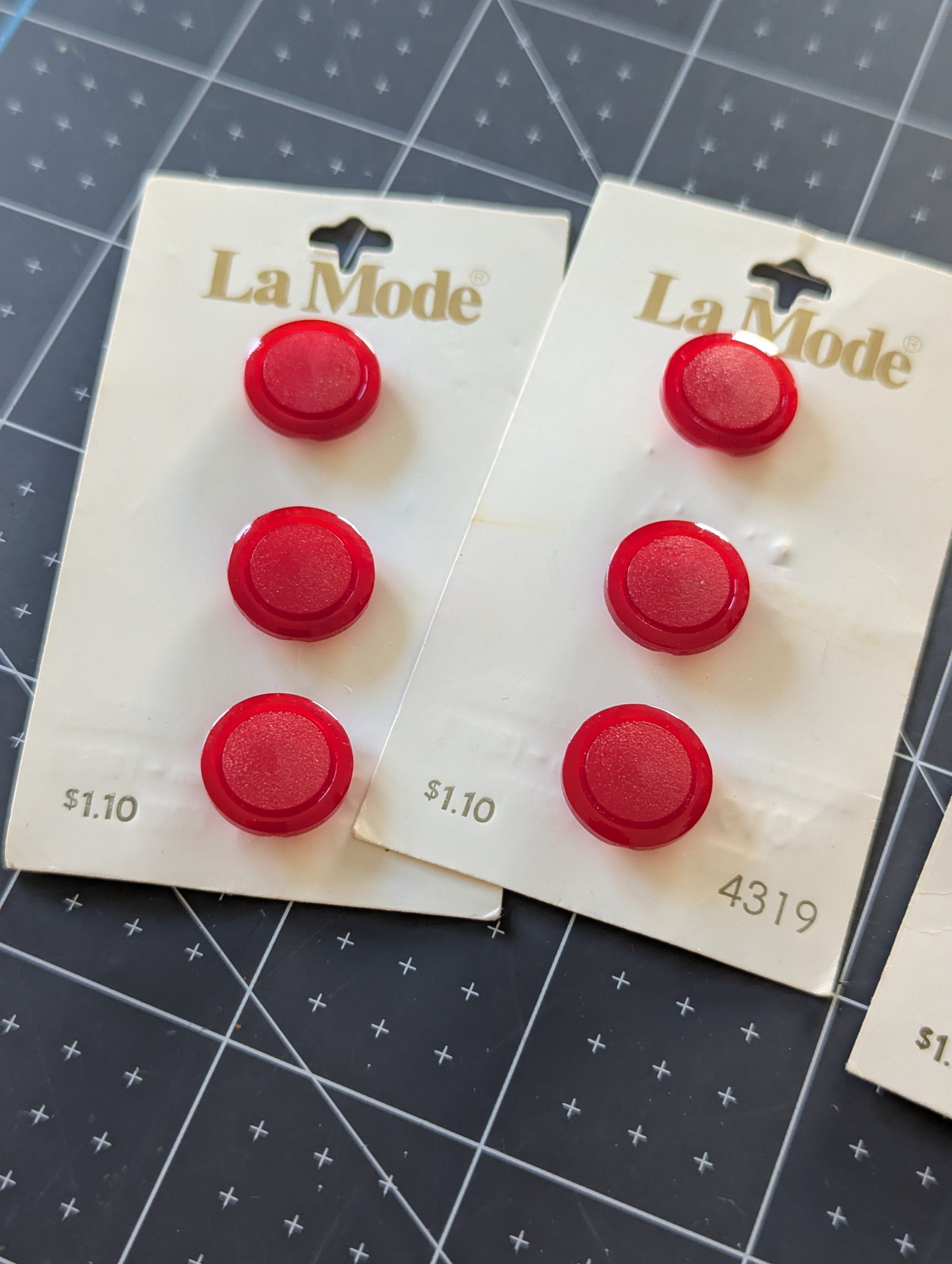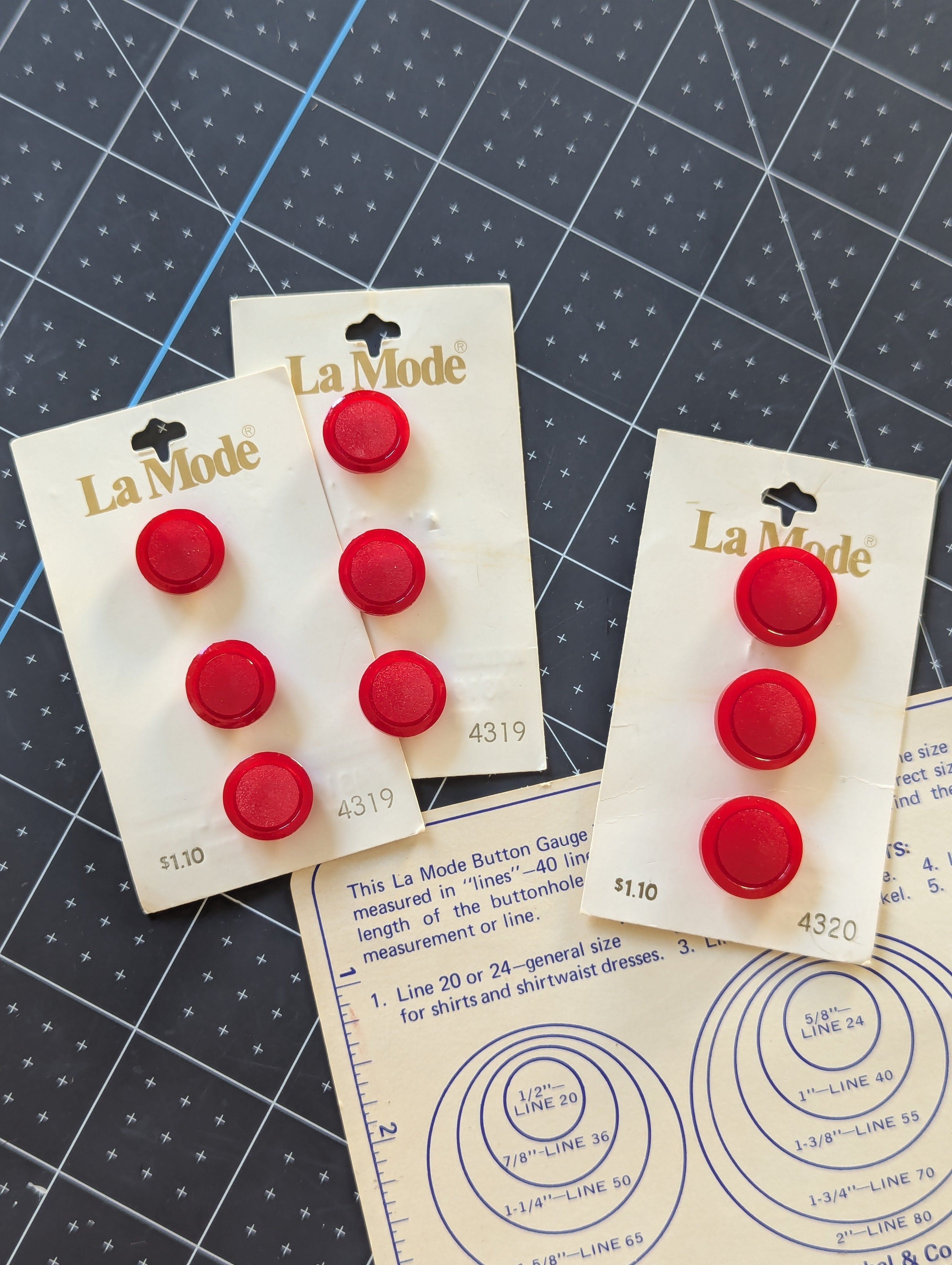 Vintage Red La Mode Shank Buttons - Two Sizes Available