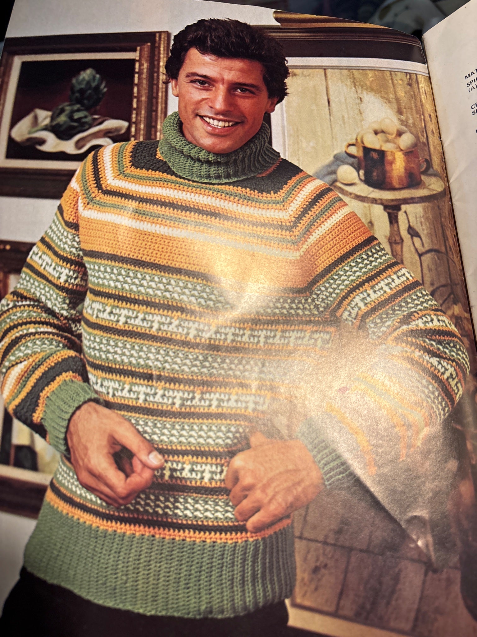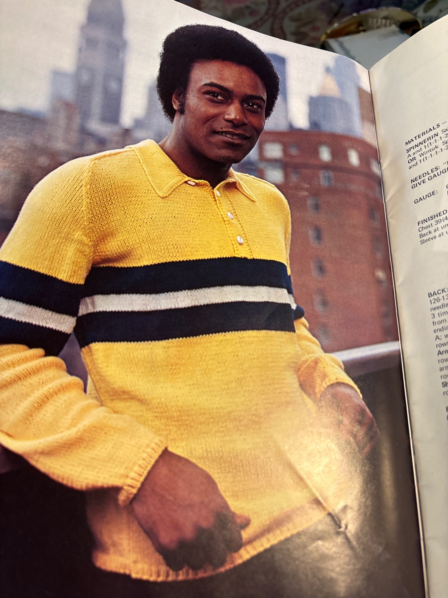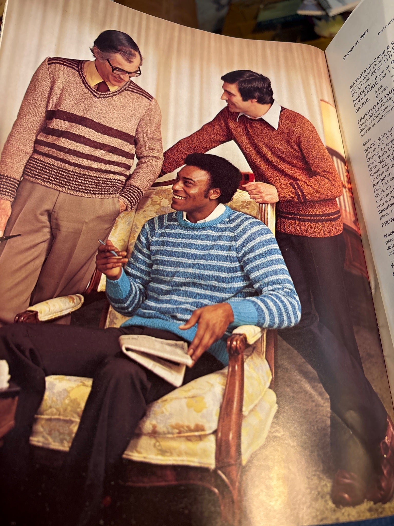 Incredible vintage knitting patterns for men. See pictures for great images of the projects. Groovy seventies designs.
