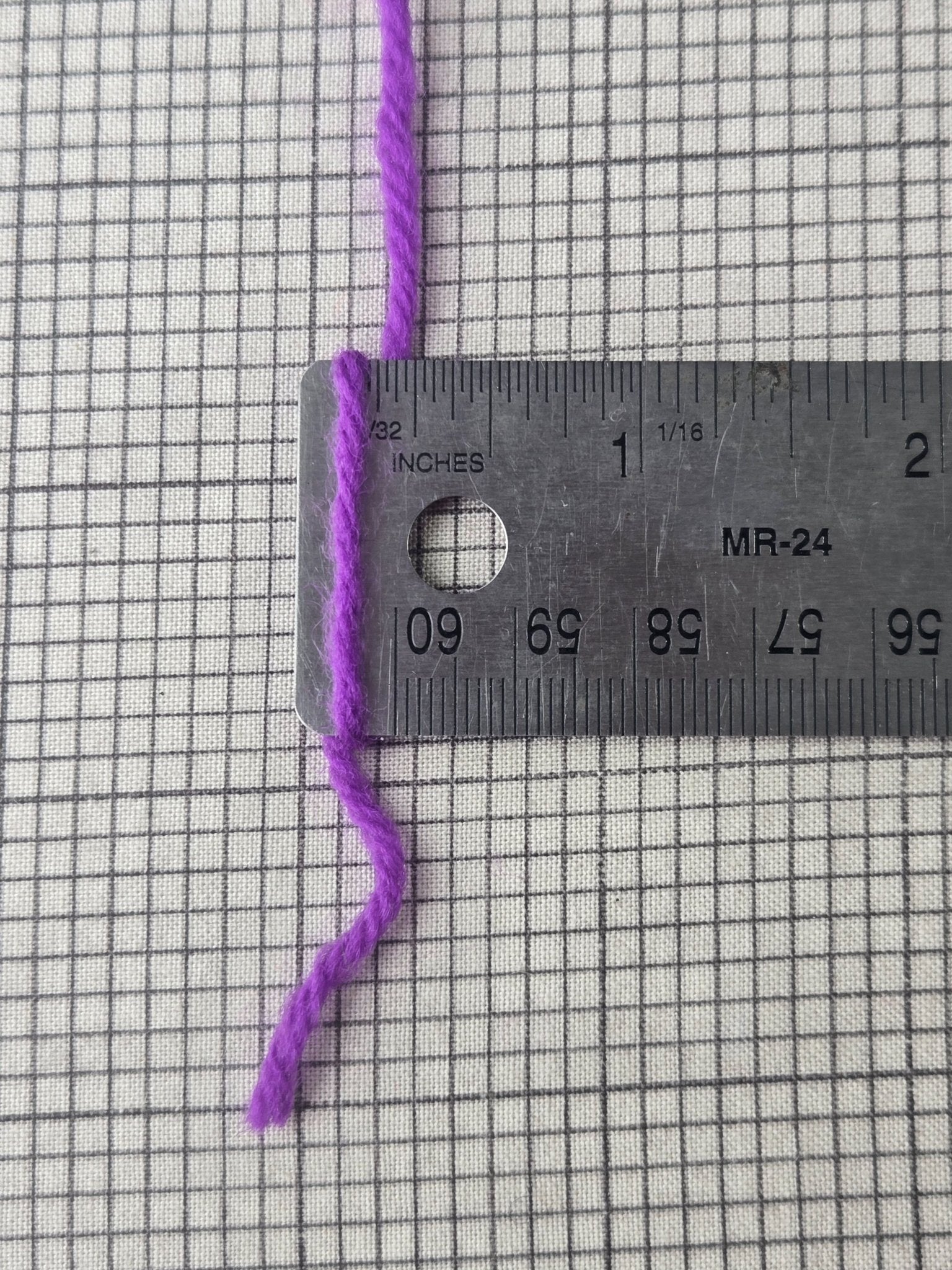 Violet yarn cone. Fiber contents not listed, but based on feel and burn test I believe this is a wool blend (maybe a small percentage synthetic). Amount/length unknown, but the cone weighs 1 lb 3.2 oz.