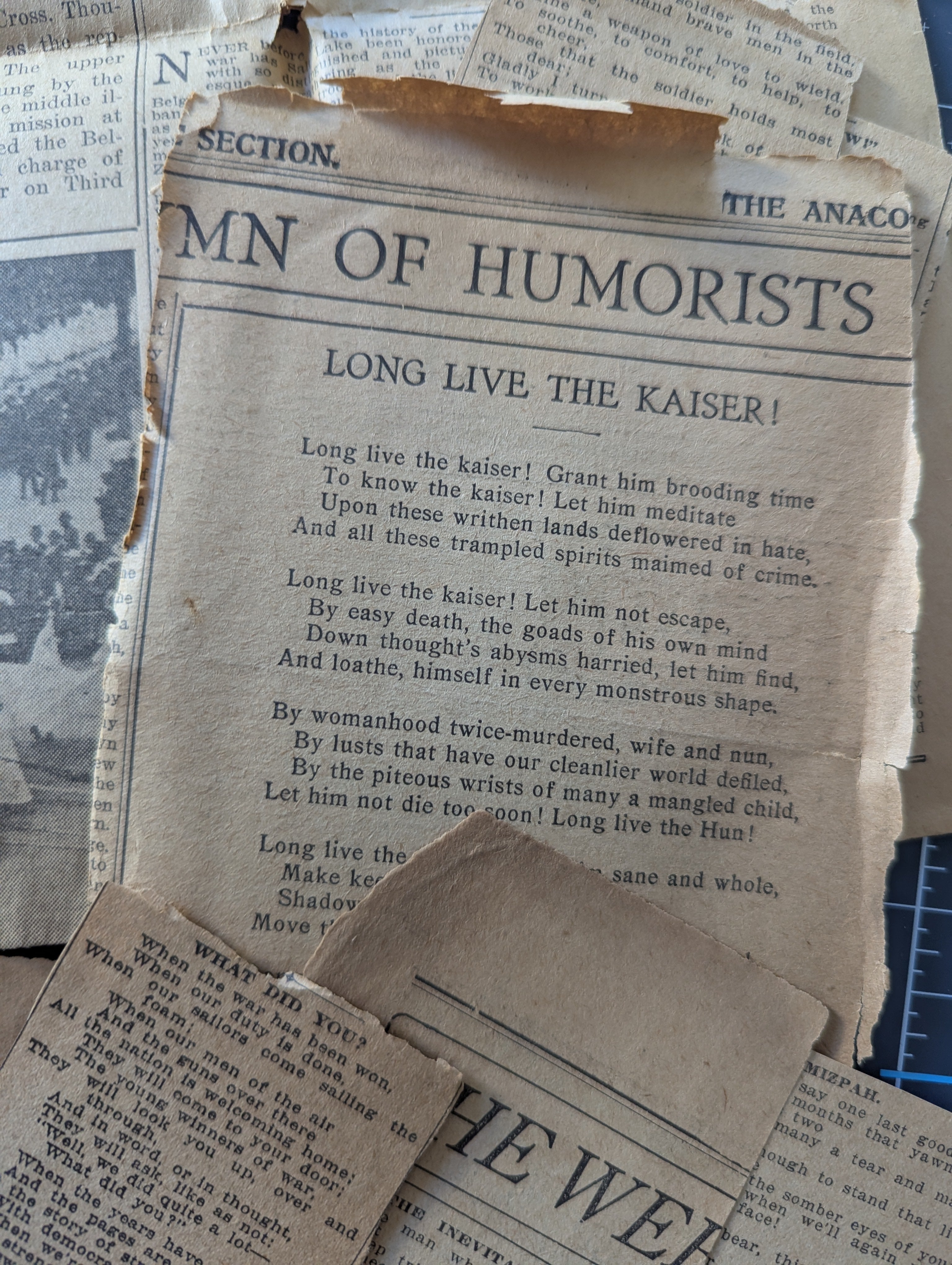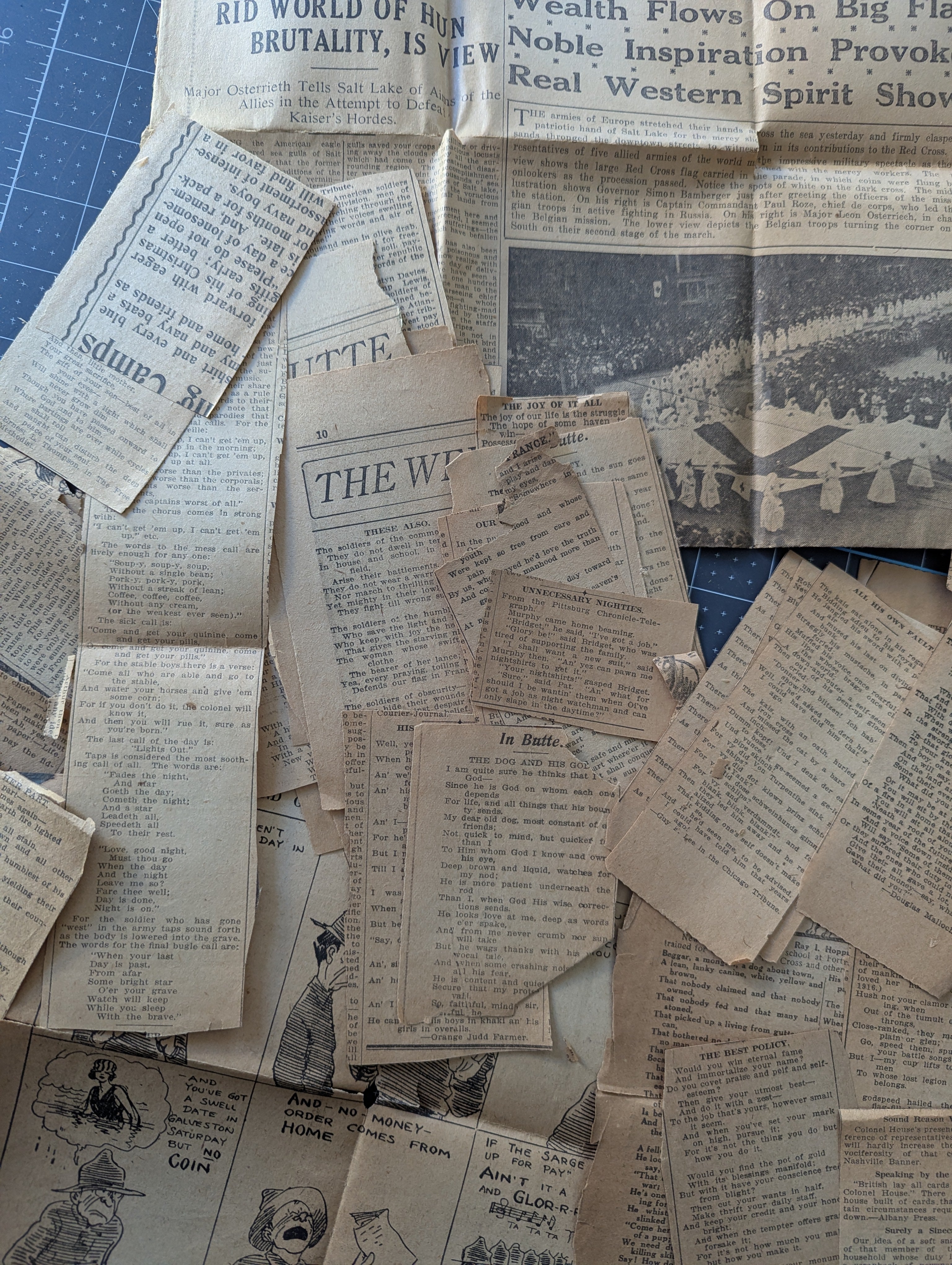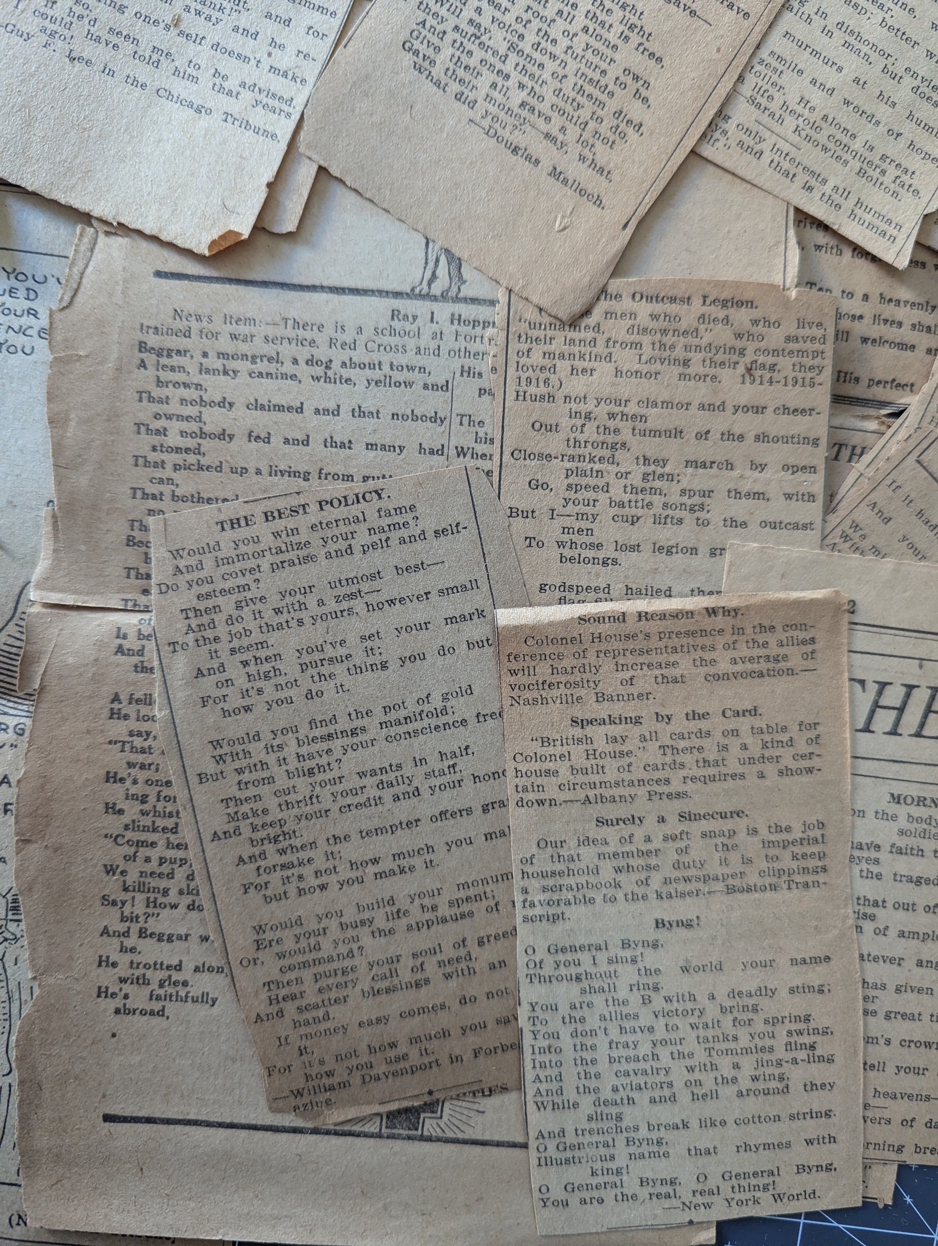 War Poem Newspaper Clippings c. 1918 - Lot A - for Paper Craft / Journaling Projects